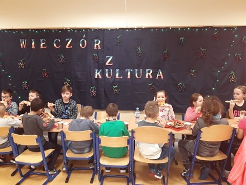 W piątek 6 marca 2020 roku odbyło się spotkanie pod hasłem „Wieczór z kulturą”. Impreza rozpoczęła się o godzinie 17.30 powitaniem i przedstawieniem programu przygotowanego przez opiekunów. Zaproszeni na spotkanie byli uczniowie klasy I, którzy nie zawiedli i przybyli w liczbie 24 osób.