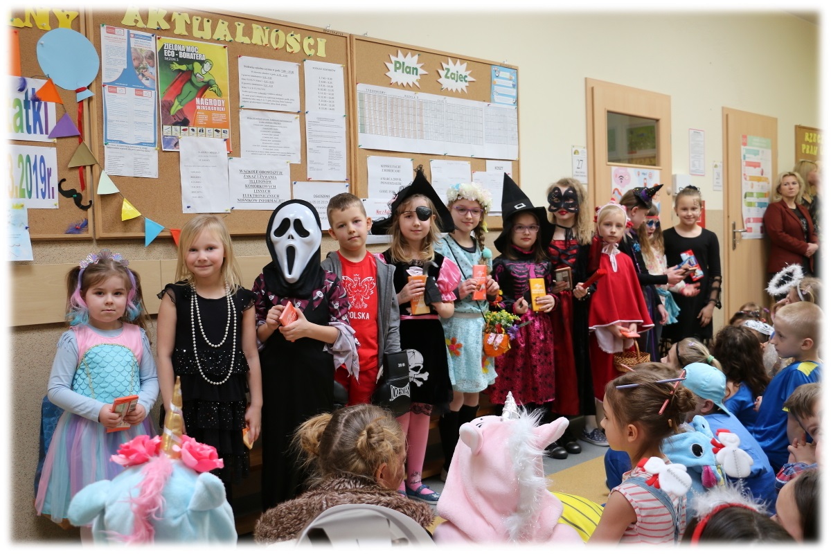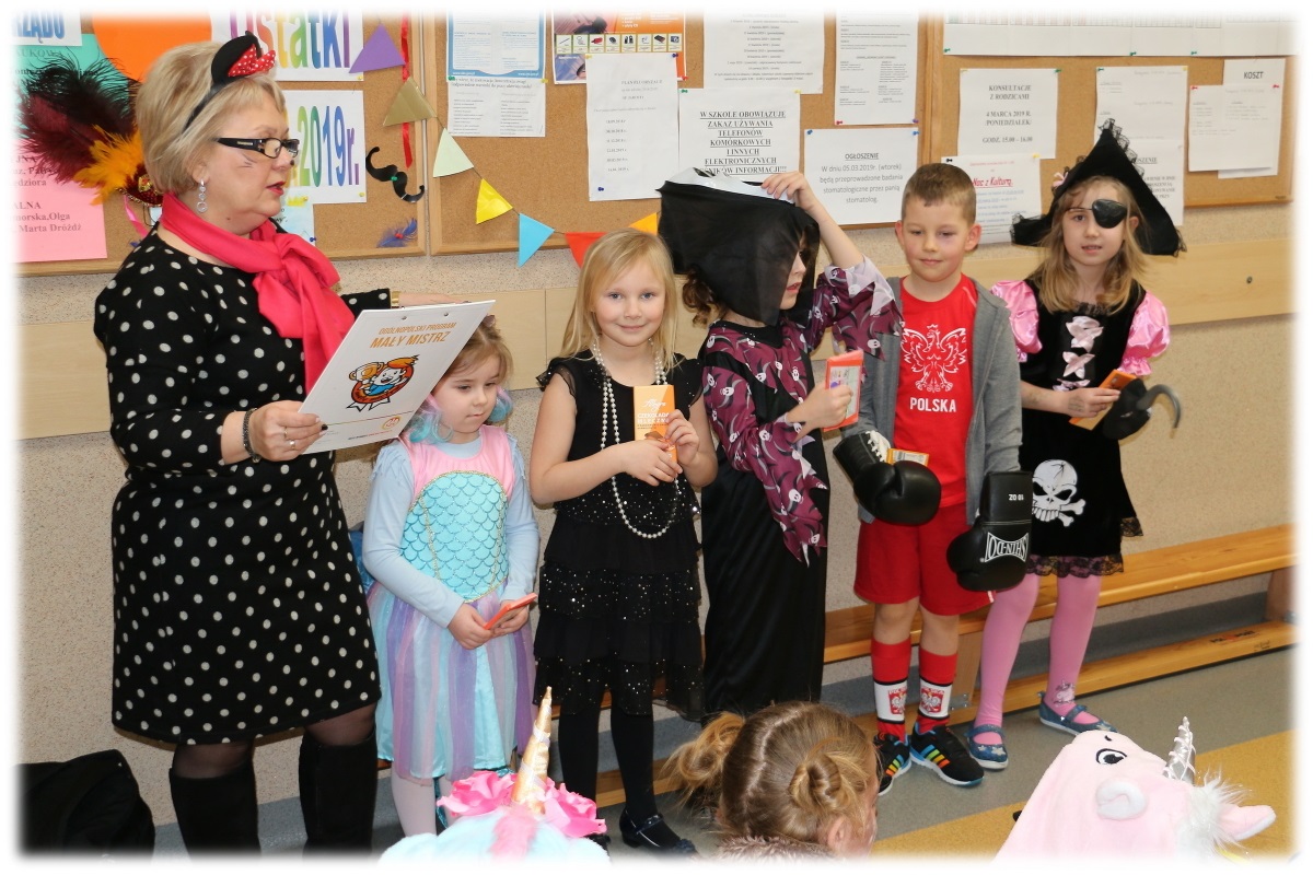 W dniu  05.03.2019 r. w naszej szkole zostały zorganizowane Ostatki 2019 r. przez SU oraz konkurs na "Najładniejszy strój ostatkowy". Od godz.8.30 pani Anna Strzopa-Machulska wraz z uczniami - przedstawicielami SU ustawiła sprzęt muzyczny na dolnym korytarzu, z którego na każdej przerwie puszczana była muzyka. Uczniowie oraz pracownicy naszej szkoły przebrani w pomysłowe stroje, tańczyli przy muzyce dyskotekowej. Nauczyciele bacznie obserwowali przebranych uczniów i wyłonili wśród nich zwycięzców. Na apelu o godz.11.15 za najładniejsze stroje uczniowie, pracownicy szkoły otrzymali nagrody - czekolady, zaś wszystkim przebranym uczniom i nauczycielom wręczono po cukierku. Dzień ten dla wszystkich był wesoły i pełen wrażeń.