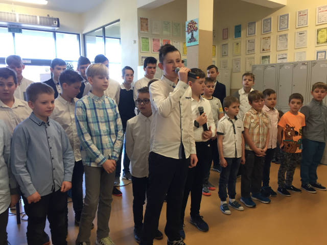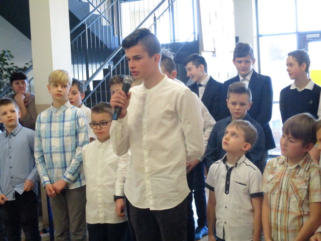 Samorząd Uczniowski, a przede wszystkim chłopcy z oddziałów: II, VA, VB, VII, VIII zaznaczyli w naszej szkole ważność Dnia Kobiet- 8 marca. W tym dniu odbył się uroczysty apel, podczas którego uczniowi: Stanisław Masiarek i Mateusz Wężyk zaśpiewali dla wszystkich pań piosenkę Marka Grechuty pt."Będziesz moją panią" oraz pozostali chłopcy recytowali piękne wiersze dla kobiet, podkreślając ich ważną rolę w życiu mężczyzn. Małe i duże kobiety w naszej szkole wesoło świętowały ten dzień, otrzymując drobne upominki. Organizator-Elżbieta Ogrodniczak-Kozłowska.