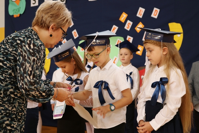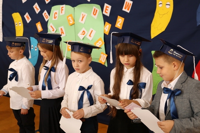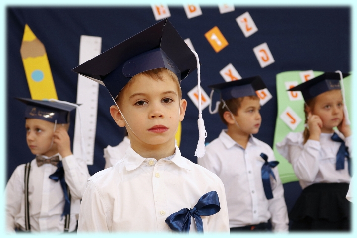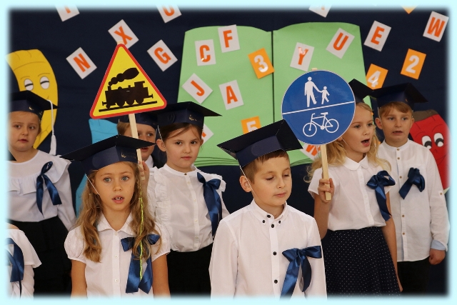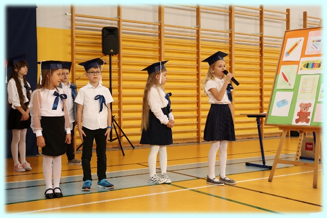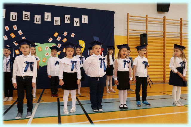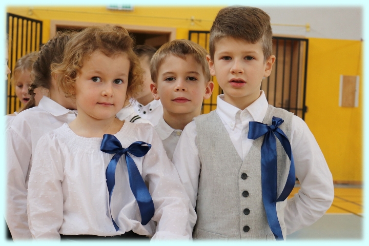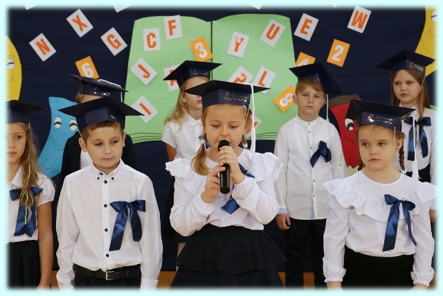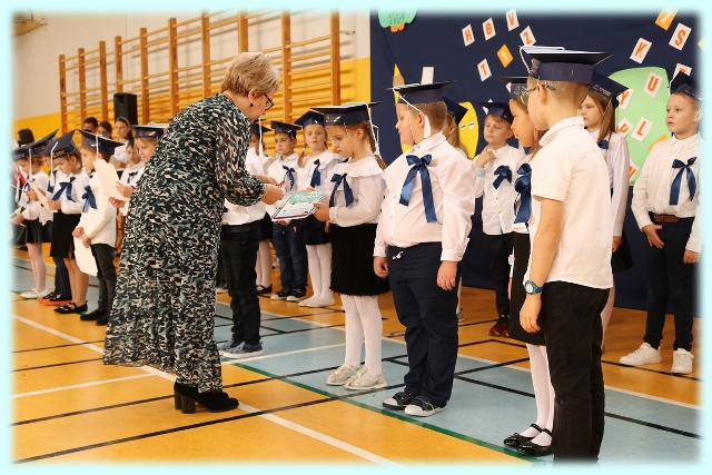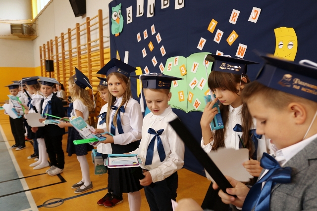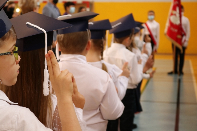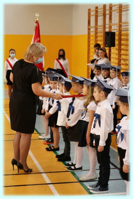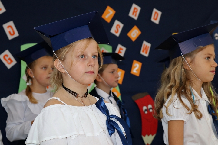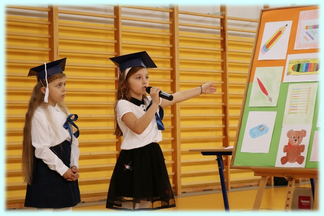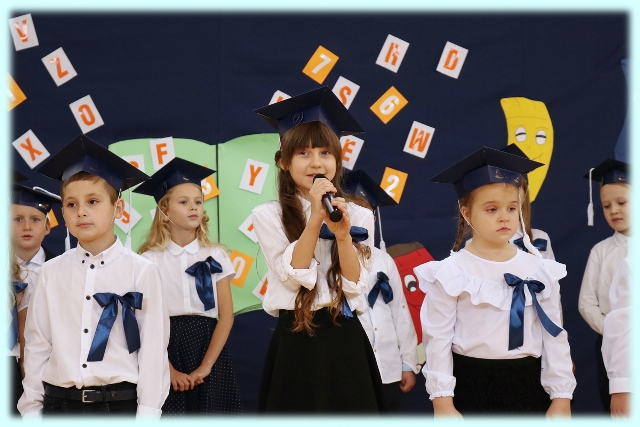Dnia 23.10.2020 r. uczniowie klasy pierwszej zostali przyjęci w poczet społeczności szkolnej. Uroczystość rozpoczęła się pięknie zatańczonym przez uczniów polonezem, a następnie pierwszaki prezentowały wszystkim zebranym to, czego nauczyły się w pierwszych miesiącach pobytu w szkole. Dzieci złożyły uroczyste ślubowanie, a następnie zostały pasowane na uczniów przez panią dyrektor. Otrzymały mnóstwo życzeń, gratulacji, a także upominków od Rady Rodziców, którą reprezentował pan przewodniczący – Marcin Adamczyk, od obecnych na uroczystości rodziców (słodka niespodzianka), od wychowawczyni – pani Elzbiety Ogrodniczak- Kozłowskiej (dyplomy i legitymacje szkolne) oraz od starszych kolegów  i koleżanek z oddziału drugiego (własnoręcznie wykonane zakładki do książek i odblaski). Przedstawiciele Samorządu Uczniowskiego, prezes Fundacji Oświatowej „Jarosty” pani Beata Dziadczyk oraz rodzice życzyli wszystkim pierwszoklasistom samych sukcesów, poznawania tajników wiedzy oraz tego, aby każdy dzień pobytu w szkole był dla nich niezapomnianą przygodą. Na koniec pan fotograf zrobił dzieciom pamiątkowe zdjęcia.