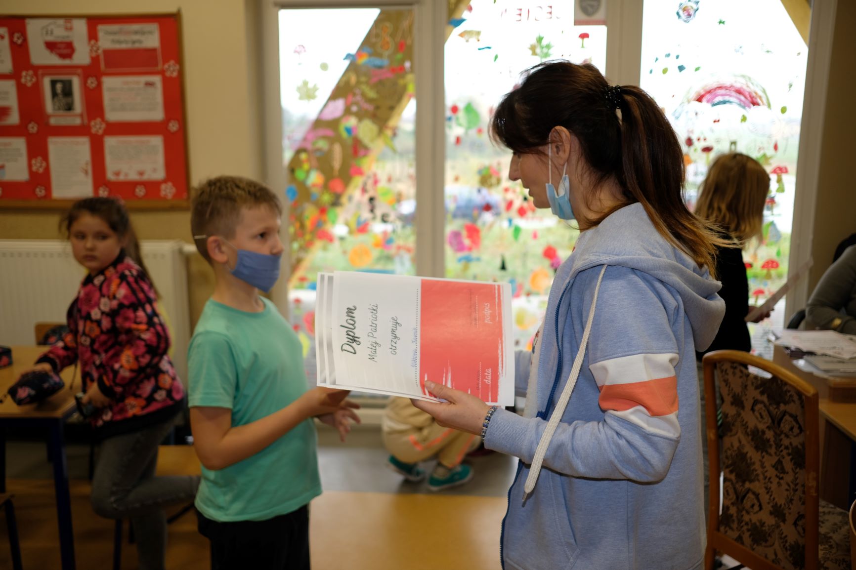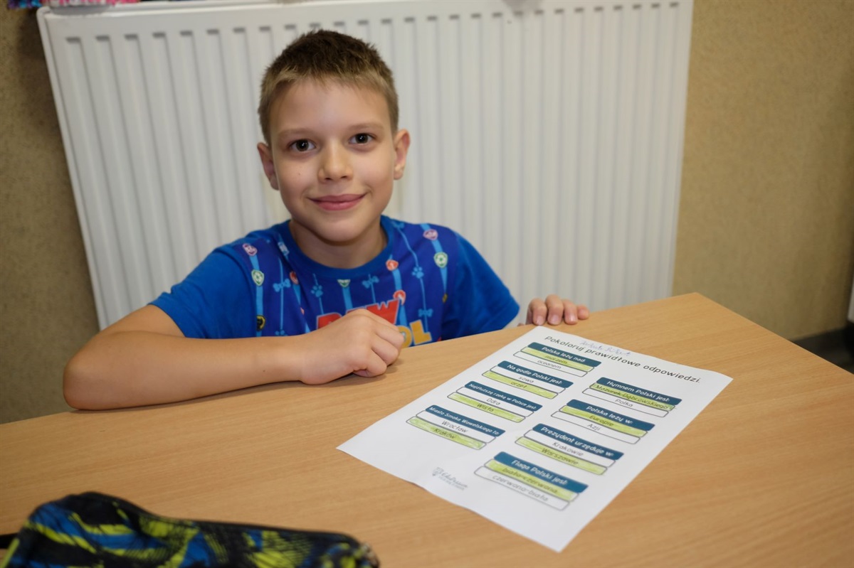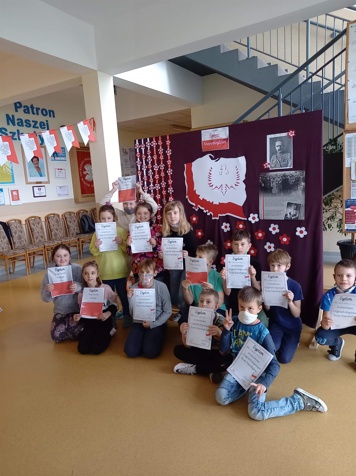Święto Niepodległości miało w naszej szkole kilka odsłon. Dzień 6 listopada w naszej szkole miał niecodzienny charakter. O samego rana odczuwać można było odświętną, patriotyczną  atmosferę. Na korytarzu szkolnym, prezentowano fotografie i informacje historyczne, związane z obchodzonym 11 listopada świętem. Oprócz wspominanych, we wcześniejszym poście, form upamiętnienia tego dnia dużym zainteresowaniem cieszył się quiz wiedzy o Polsce. Quiz był podsumowaniem zajęć świetlicowych, a  udział w nim wzięli uczniowie klasy 3. Uczestnicy mieli za zadanie m.in. opisać symbole narodowe, odgadnąć tytuły polskich piosenek patriotycznych, dopasować zdjęcia zabytków do miast Polski, przeliterować wyrazy z trudnością ortograficzną a także rozwiązać rebusy i krzyżówki z hasłami, które związane były Narodowym Świętem Odzyskania Niepodległości. Po zakończonych zajęciach, wszyscy uczniowie otrzymali pamiątkowe dyplomy. 6 listopada w naszej szkole był wyjątkowo udany. Połączył wszystkich, którzy wspólnie starali się pokazać, że są Polakami – patriotami. Miejmy nadzieję, że taki dni jak ten, przyczynią się do tego, by podtrzymywać w młodych ludziach więź z Ojczyzną, jej historią, kulturą i sztuką oraz tradycjami.