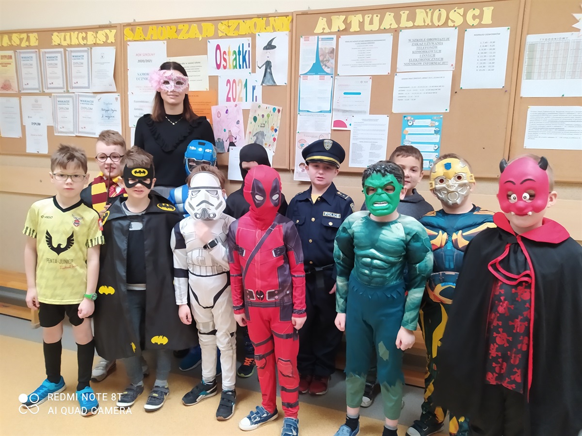 W dniu 16.02.2021 r. Samorząd Uczniowski zaprosił wszystkich uczniów naszej szkoły, głównie oddziały 0-III oraz wszystkich nauczycieli, pracowników szkoły do zabawy karnawałowej, przebierania się, ucztowania przy herbatce, ciasteczkach. A oto zdjęcia przedstawiające zabawę ostatkową w naszej szkole.