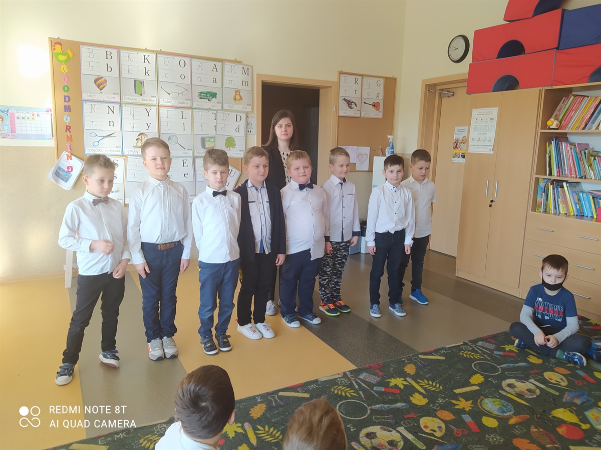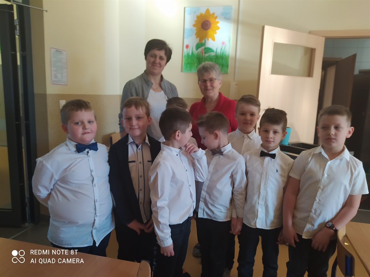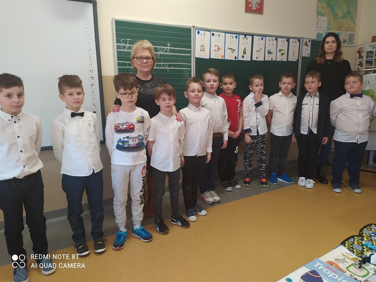 Samorząd Uczniowski, którego przedstawicielami byli chłopcy z klasy I, w Dniu Kobiet - 8 marca złożyli życzenia wszystkim kobietom naszej szkoły(dużym i małym). Chłopcy przygotowali życzenia  recytując wiersze przed paniami naszej szkoły, odwiedzając gabinet pani dyrektor - Bożeny Nowak-Justyny, stołówkę z paniami woźnymi, oddział przedszkolny, oddział III, II i I oraz pokój nauczycielski. Za piękne recytacje chłopcy otrzymali podziękowania. W ten sposób integrowali się ze społecznością szkolną, przedstawili swoje umiejętności recytatorskie. Na osłodę  tego dnia wszystkim paniom Samorząd Uczniowski przygotował słodki poczęstunek.