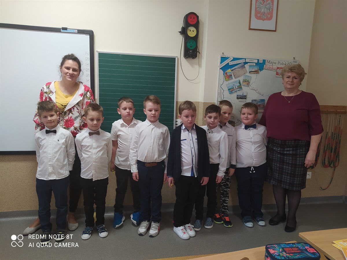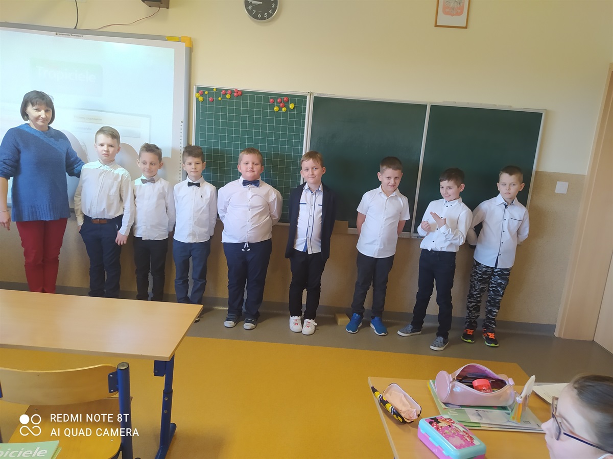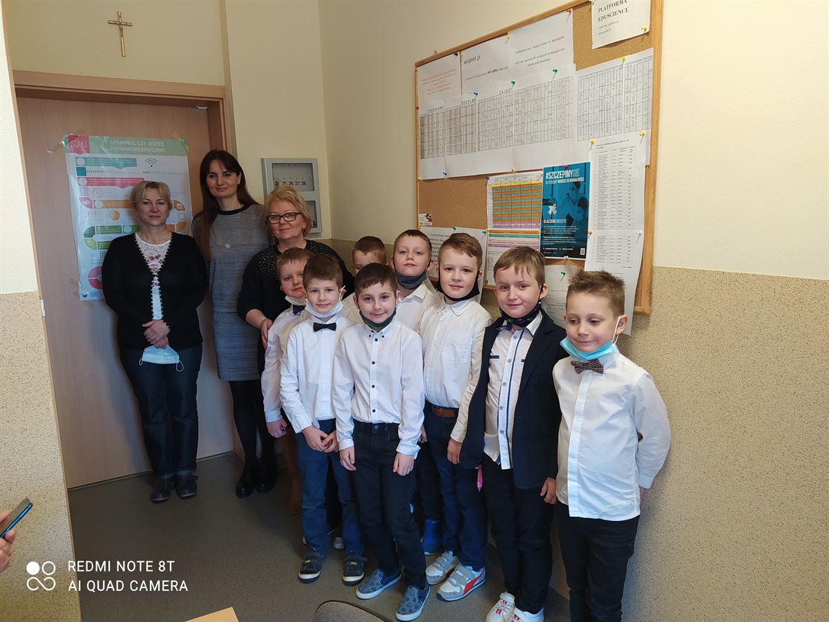 Samorząd Uczniowski, którego przedstawicielami byli chłopcy z klasy I, w Dniu Kobiet - 8 marca złożyli życzenia wszystkim kobietom naszej szkoły(dużym i małym). Chłopcy przygotowali życzenia  recytując wiersze przed paniami naszej szkoły, odwiedzając gabinet pani dyrektor - Bożeny Nowak-Justyny, stołówkę z paniami woźnymi, oddział przedszkolny, oddział III, II i I oraz pokój nauczycielski. Za piękne recytacje chłopcy otrzymali podziękowania. W ten sposób integrowali się ze społecznością szkolną, przedstawili swoje umiejętności recytatorskie. Na osłodę  tego dnia wszystkim paniom Samorząd Uczniowski przygotował słodki poczęstunek.