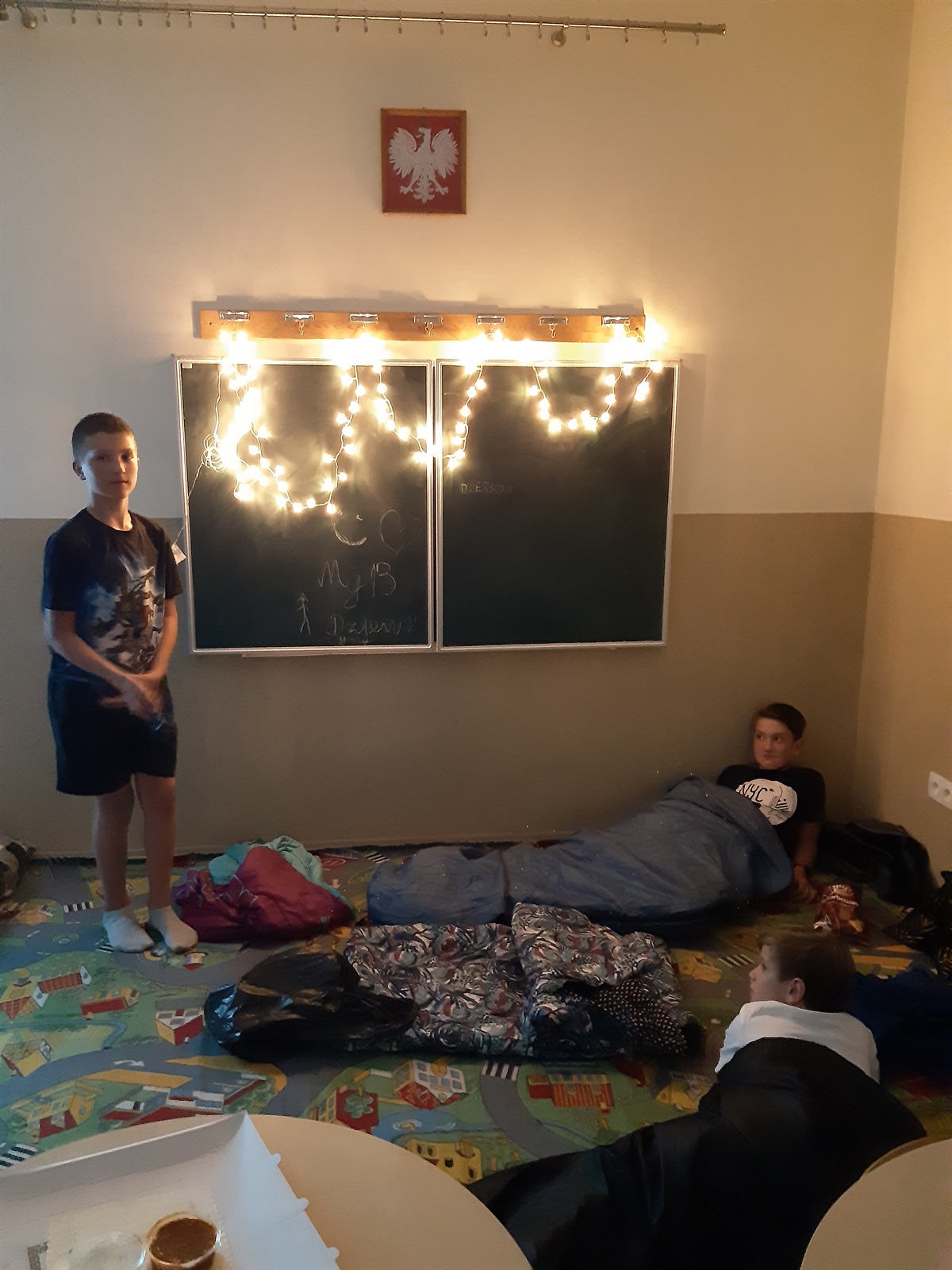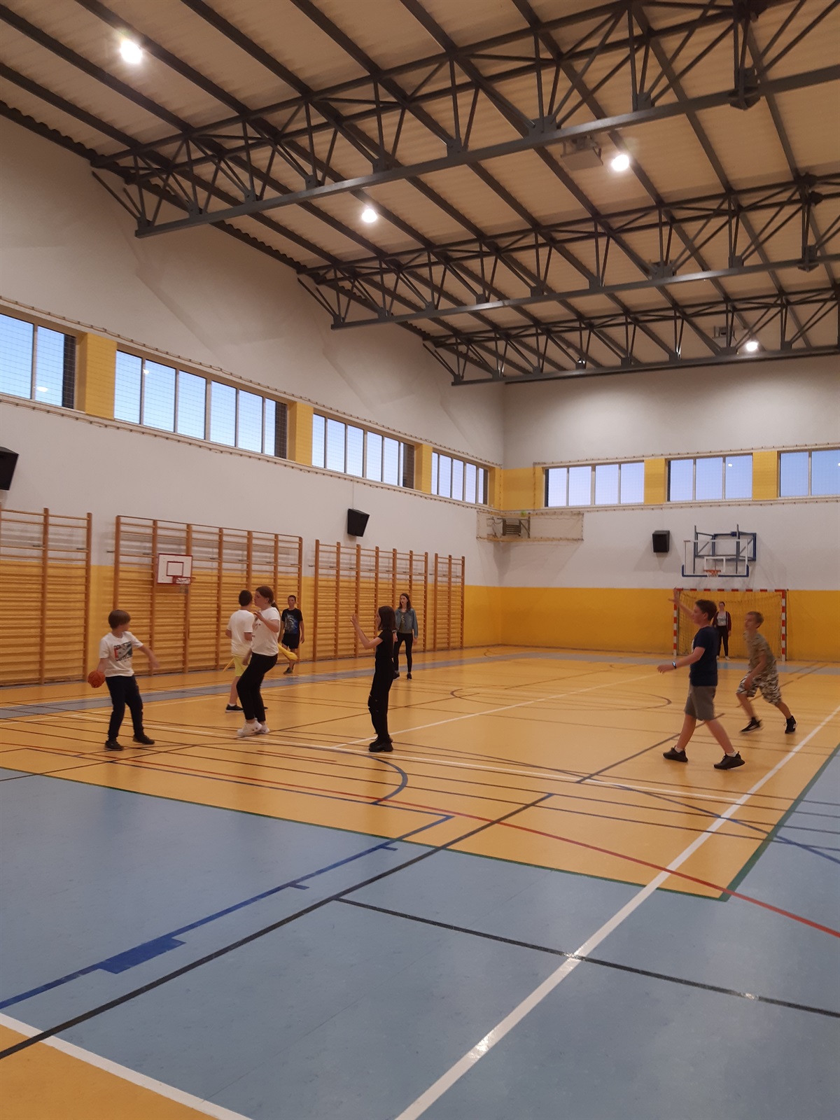 Ogromna potrzeba rozładowania energii i chęć do wspólnej gry sprawiły, że rozgrywki w piłkę ręczną przeniosły się na salę gimnastyczną i trwały do przyjazdu zamówionego posiłku.