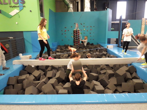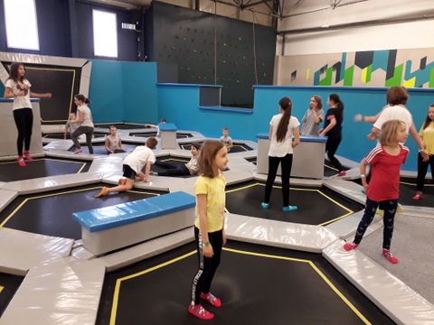Ta coraz bardziej popularna forma aktywności fizycznej dostarczyła uczestnikom wycieczki wielu niezapomnianych wrażeń. Po profesjonalnej rozgrzewce pod okiem instruktora, zapoznaniu z zasadami BHP oraz przedstawieniu walorów rekreacyjnych trampolin, uczestnicy wycieczki korzystali z szeregu atrakcji, m.in. ścieżek akrobatycznych, koszy do wsadów, trampolin sportowych oraz basenów wypełnionych gąbkami. Mogli z różną intensywnością bawić się oraz rywalizować między sobą.