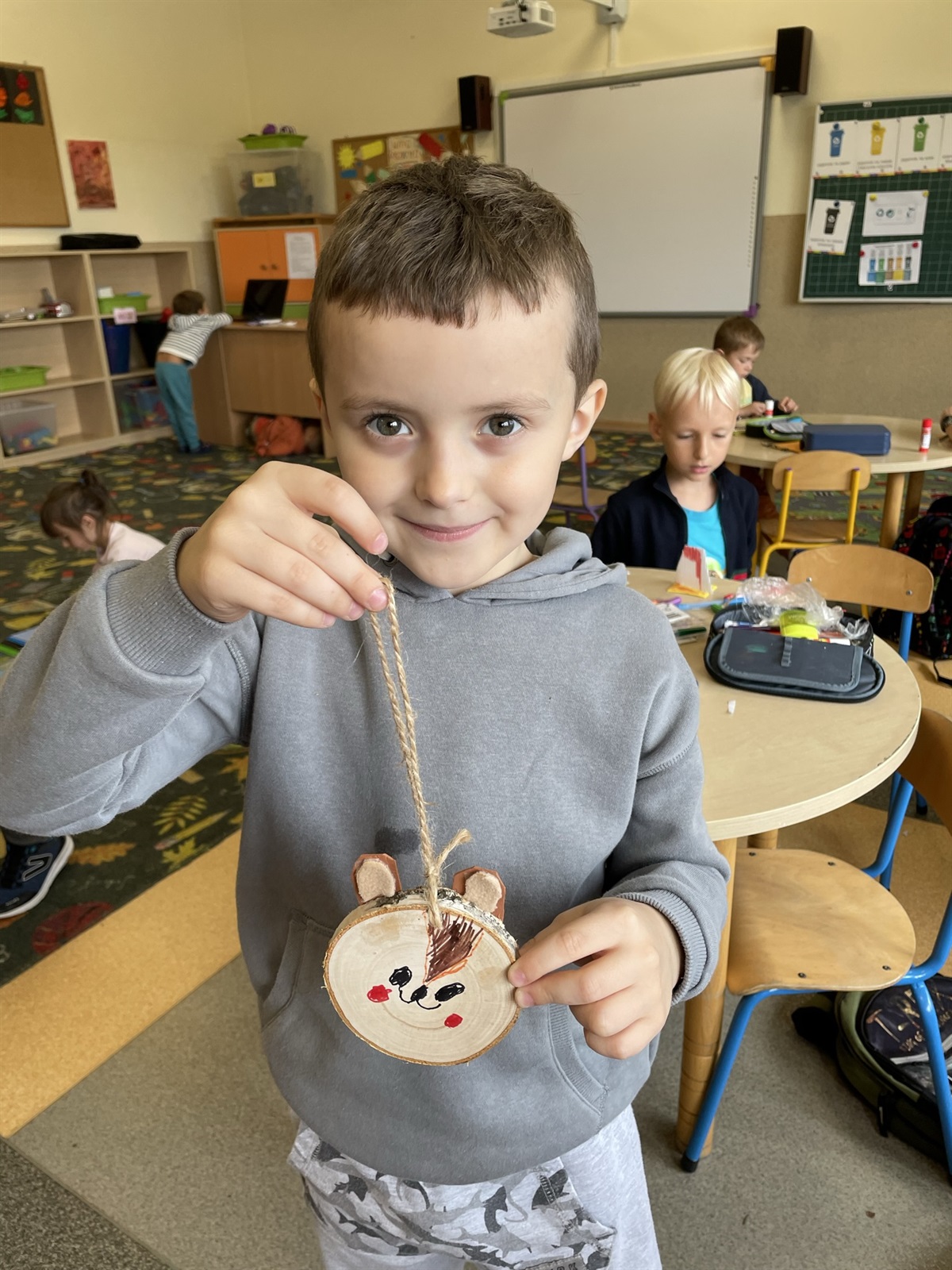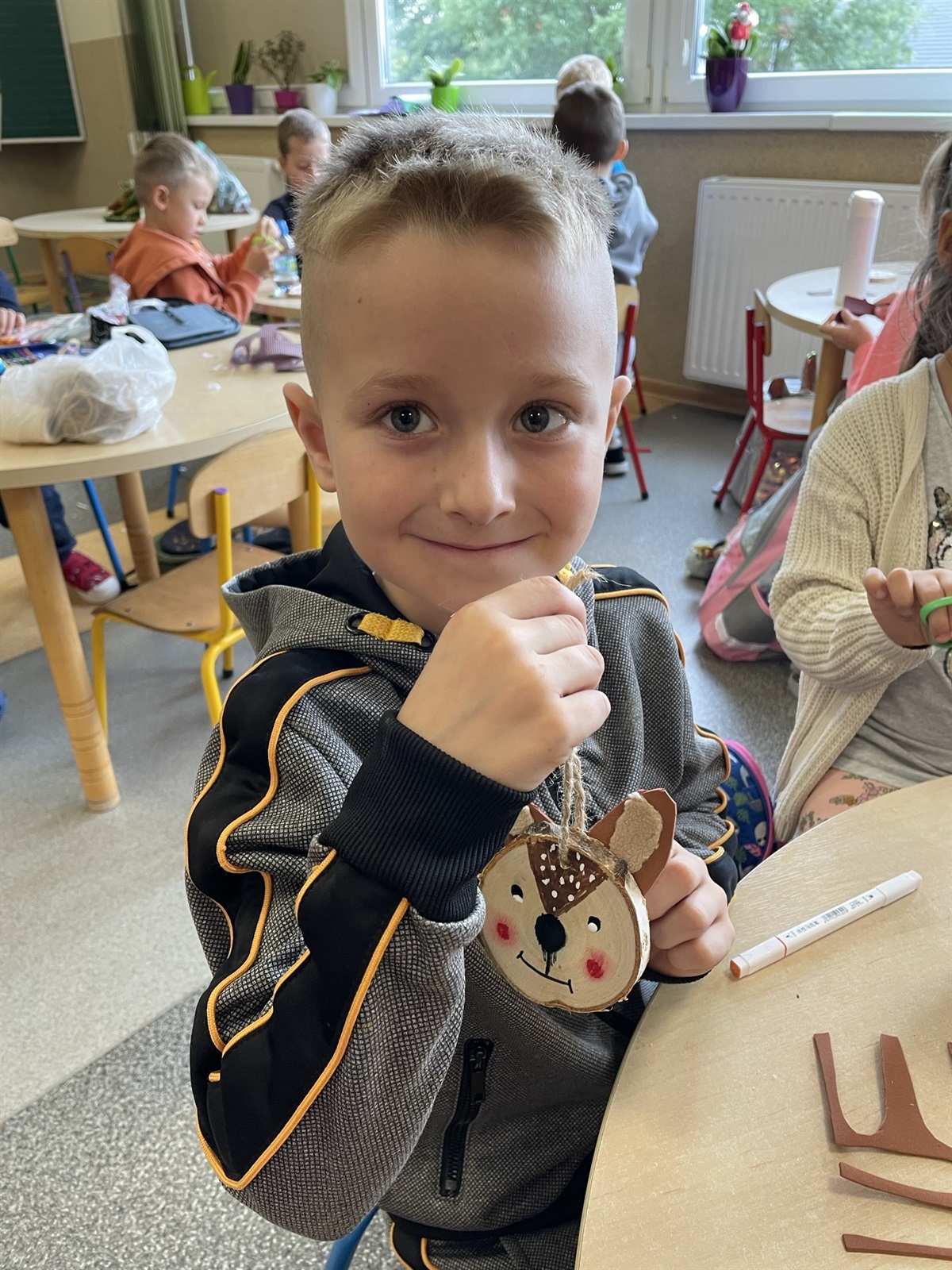 Plaster brzozowego drewna, flamastry artystyczne, filc oraz sznurek jutowy to co prawda nie przepis kulinarny, ale opis produktów niezbędnych do stworzenia leśnej, jesiennej sarenki. Pracy było co nie miara. Wszystko się jednak udało. Nasze sprawne rączki pod opieką wychowawczyni p. Ewy Wiśniewskiej stworzyły małe dzieła sztuki, wyjątkowe i jedyne w swoim rodzaju ozdoby z drewna. Stworzone dekoracje mogą spokojnie zawisnąć na naszej świątecznej choince lub stać się ozdobą domu. Jesień jest pełna uroku, wyrafinowania i wielobarwna w swej urodzie, napawajmy się nią póki nie odejdzie.