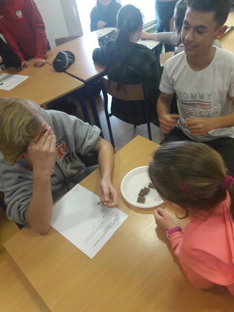W tym dniu podczas zajęć świetlicowych uczniowie poznali tajniki produkcji i pochodzenie tego słodkiego przysmaku. Dowiedzieli się, jak długą drogę muszą przebyć ziarna kakaowca, by w ostatecznej formie trafić do sklepów i stać się czekoladą - przysmakiem całego świata. Uczniowie poznali także wartości odżywcze czekolady, degustowali różne rodzaje czekolady. Odbyły się czekoladowe quizy. Zajęcia przygotowała pani Anetta Banaszczyk. To był naprawdę słodki, czekoladowy dzień!