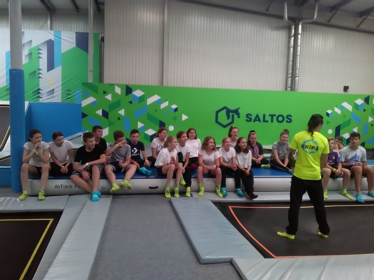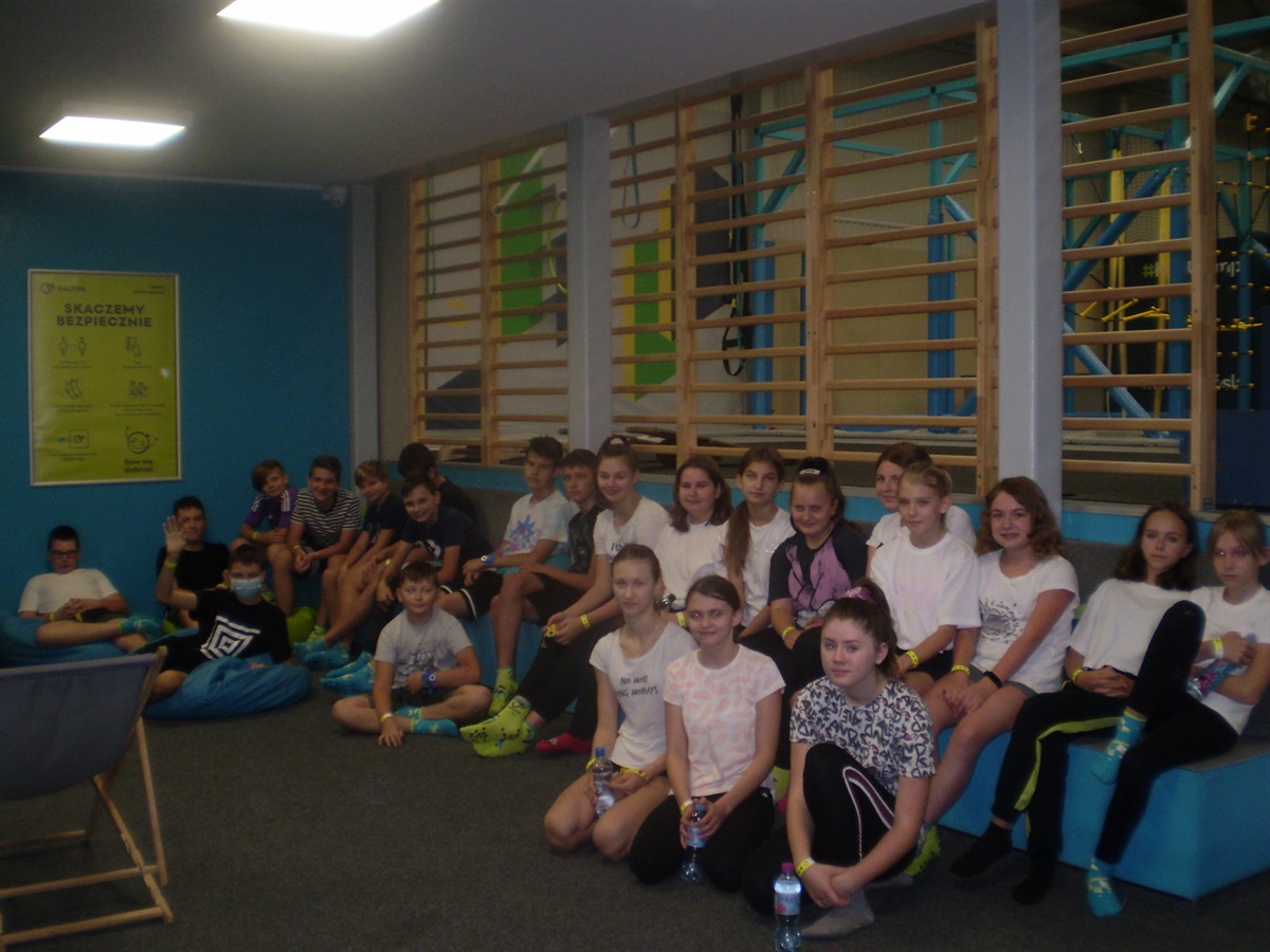 W dniu 27.09.2021r. uczniowie klasy VII uczestniczyli w zajęciach sportowych w łódzkim parku trampolin „Saltos”. Był to prezent na Dzień Chłopaka zorganizowany przez samorząd klasowy. Pod okiem instruktora młodzież obejrzała krótki film o zachowaniu zasad bezpieczeństwa, a następnie grupa przystąpiła do rozgrzewki. Był też czas wolny, także uczniowie mogli cieszyć się zabawą na wybranych przez siebie trampolinach. Po powrocie do szkoły na wszystkich czekała pizza. Dziękujemy rodzicom uczniów klasy VII, którzy zadbali o poczęstunek. Opiekunami grupy podczas wycieczki były: Magdalena Sigorska i Ewa Kroczyńska.