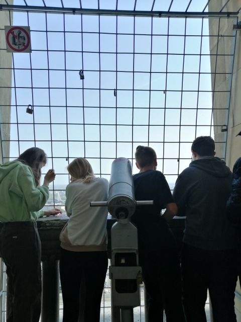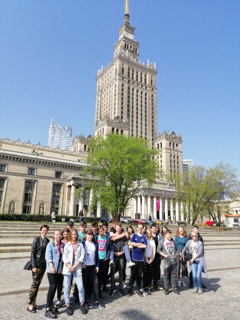 Drugiego dnia po śniadaniu wyruszyliśmy do centrum Warszawy. Z tarasu widokowego w Pałacu Kultury mogliśmy podziwiać naszą piękną stolicę. Korzystna pogoda pozwoliła nam dostrzec najważniejsze miejsca.