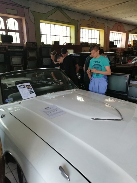 W drodze powrotnej zajrzeliśmy do Muzeum Motoryzacji i Techniki w Otrębusach. Wraz z przewodnikiem zobaczyliśmy przeróżne eksponaty starych samochodów, motorów, rowerów, wózków, a także stare telewizory, radia i inne cuda techniki z przeszłości. O większości dowiedzieliśmy się czegoś z ich życiorysu.