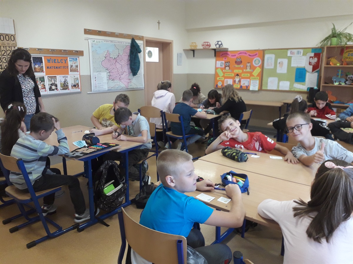 -   krótkich egzaminów odbywających się w czasie przerw śródlekcyjnych. Egzaminatorami byli uczniowie klasy V. Tworzyli oni specjalne komisje. Zaopatrzeni w losy, przepytywali starszych i młodszych kolegów oraz koleżanki. Każda osoba, która odpowiedziała na wszystkie pytania poprawnie, otrzymała tytuł Eksperta Tabliczki Mnożenia oraz imienną legitymację                                                                                                                                                  -    gier zespołowych na lekcjach matematyki. Zespół, który zwyciężył otrzymał Certyfikat pomyślnie zdanego egzaminu z tabliczki mnożenia, a jego członkowie - tytuł Eksperta Tabliczki Mnożenia
