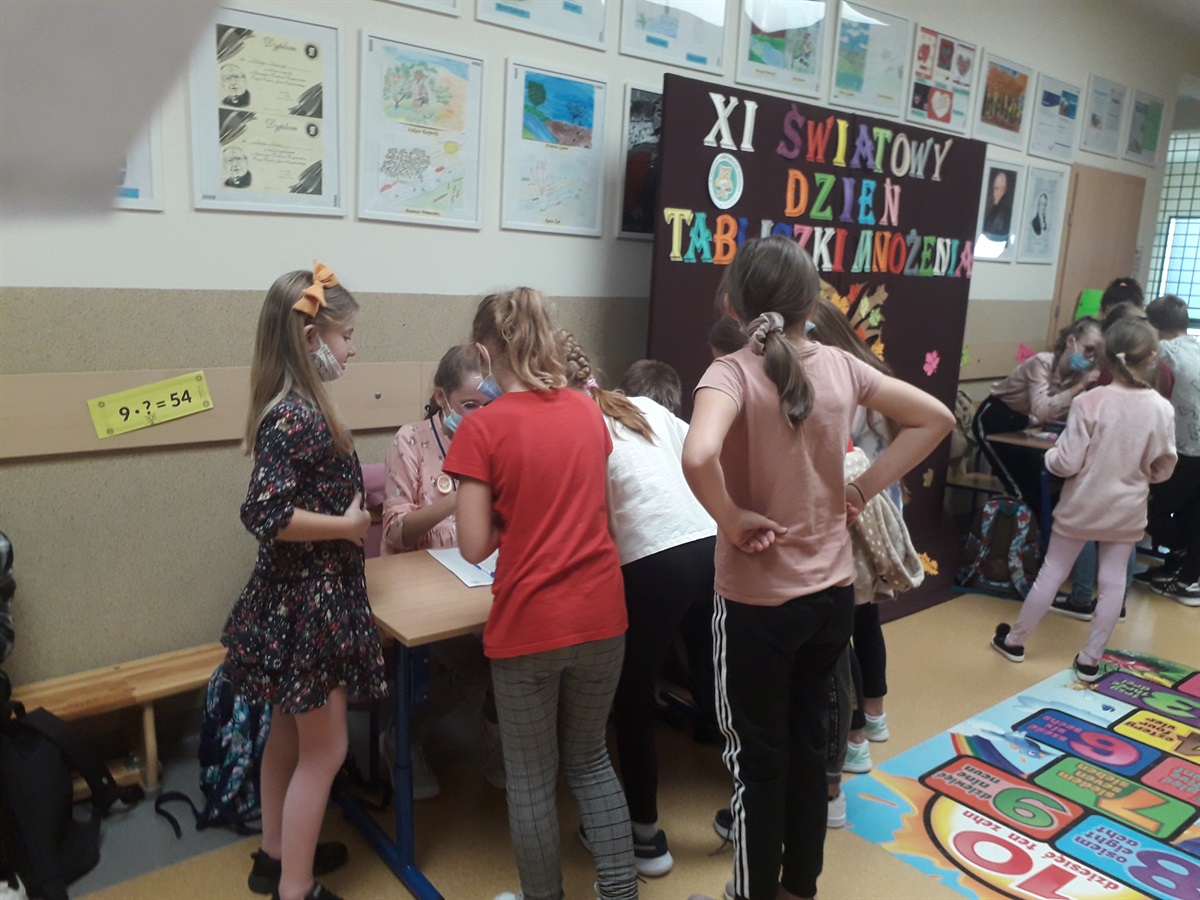 8 października 2021r. nasza szkoła uczestniczyła w akcji XI Światowy Dzień Tabliczki Mnożenia  organizowanej pod hasłem:  „Młodsi sprawdzają, czy starsi tabliczkę mnożenia znają!”. Celem akcji było propagowanie zabawowej formy nauczania-uczenia się matematyki.