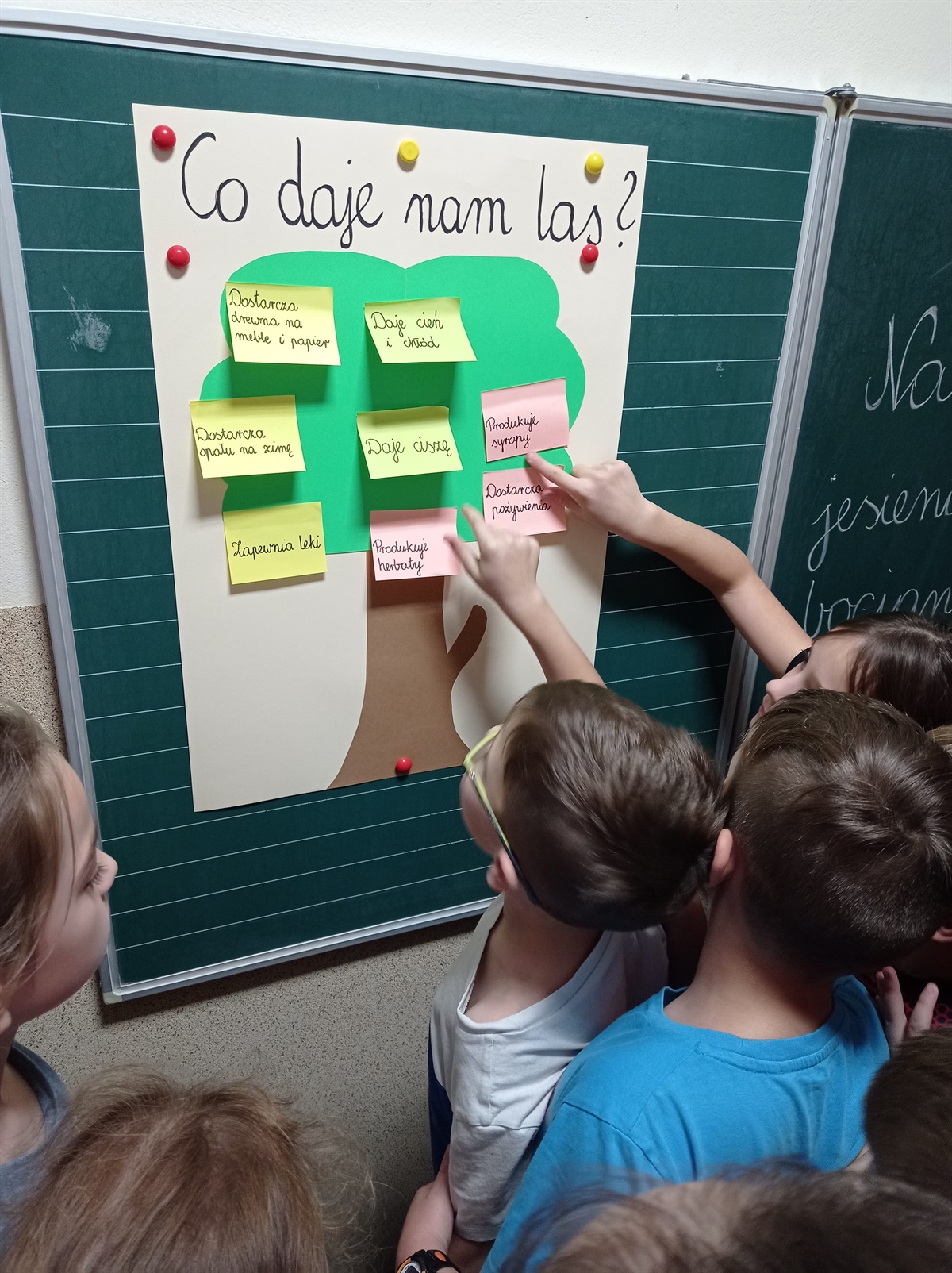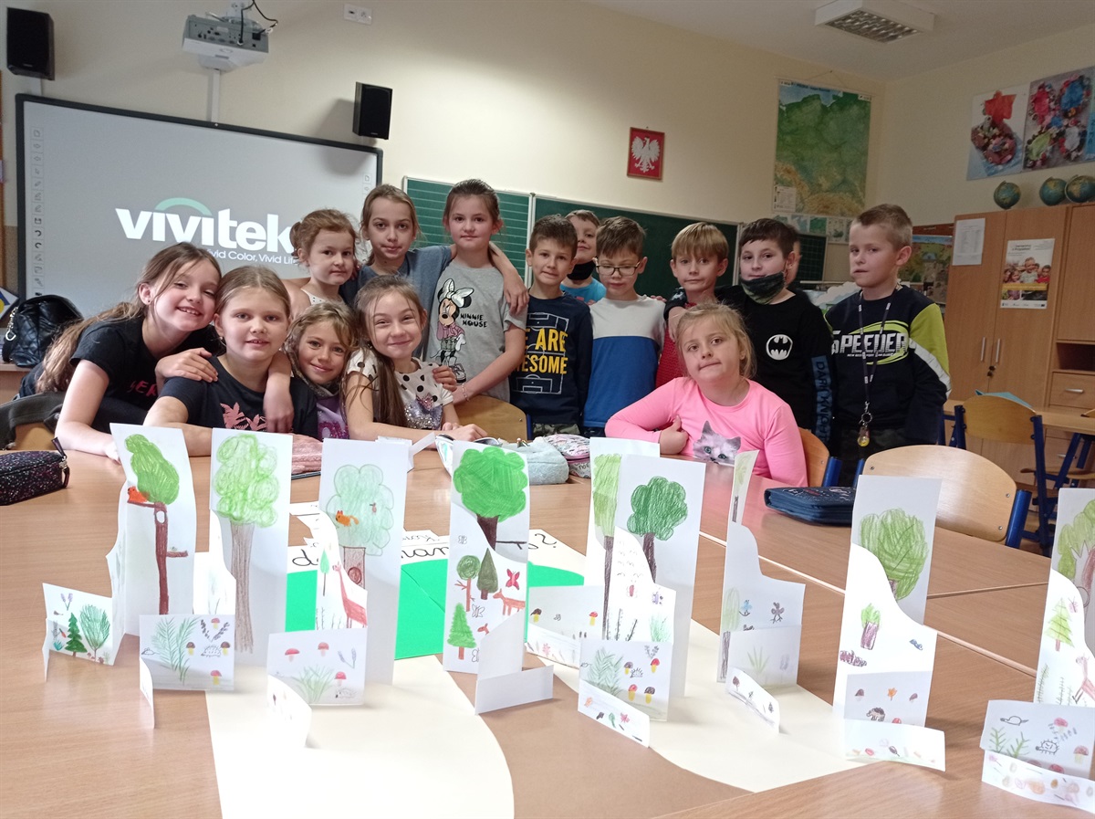 21 października 2021 r. uczniowie z oddziału drugiego wzięli udział w programie edukacyjnym „Velvet. Piątka dla natury”. Celem programu jest wspieranie edukacji ekologicznej w szkołach, aktywizowanie uczniów do zmieniania na lepsze ich najbliższego otoczenia i zaszczepienie w dzieciach wiary, że każde, nawet najdrobniejsze działanie na rzecz natury, powtarzane odpowiednio często może prowadzić do realnej zmiany na większą skalę. Na zajęciach uczniowie dowiedzieli się jak cenny jest las w życiu człowieka, co zagraża drzewom oraz jakie czynności mogą podejmować dzieci, by dbać o drzewa w najbliższym otoczeniu. Dzieci wzięły także udział w ekowyzwaniu, które polegało na wykonaniu plakatu „Co dają nam drzewa?”.