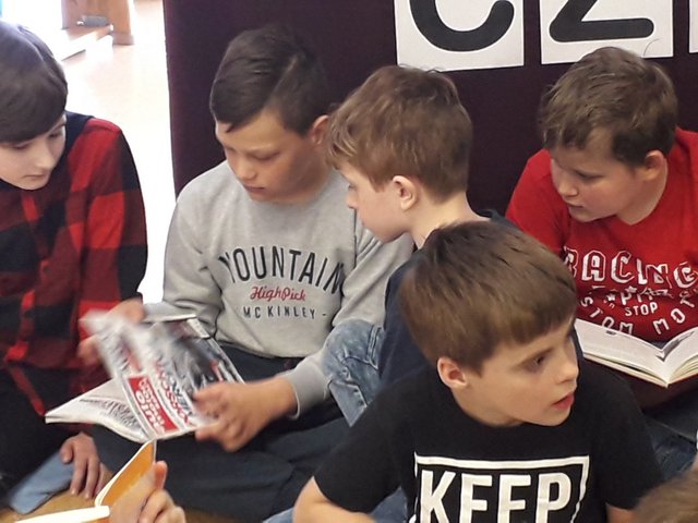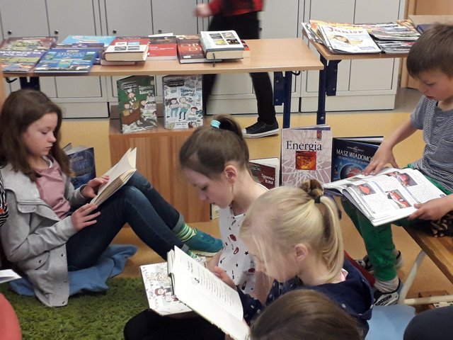 Do dyspozycji uczniów były zasoby naszej szkolnej biblioteki. Mnóstwo ciekawych i nowych pozycji książkowych i prasowych. Każdy mógł znaleźć dla siebie interesującą go lekturę.