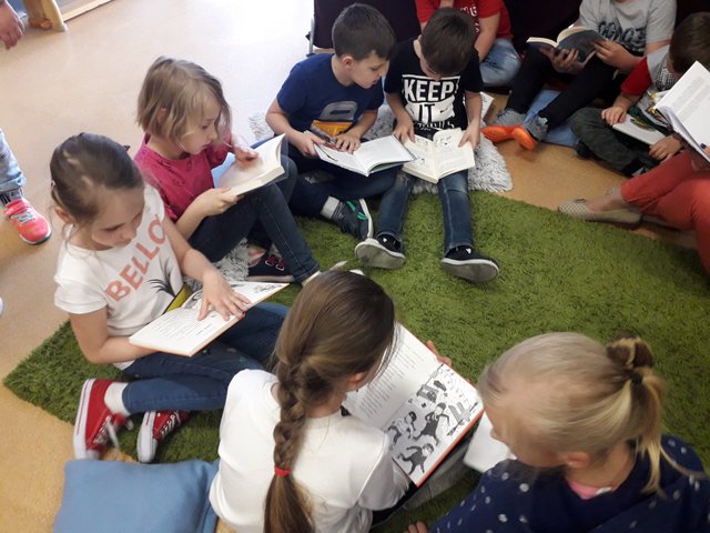 W sumie odbyły się cztery spotkania, na których wspólnie czytaliśmy. Była to inicjatywa samych dzieci i to zasługuje na pochwałę!!!