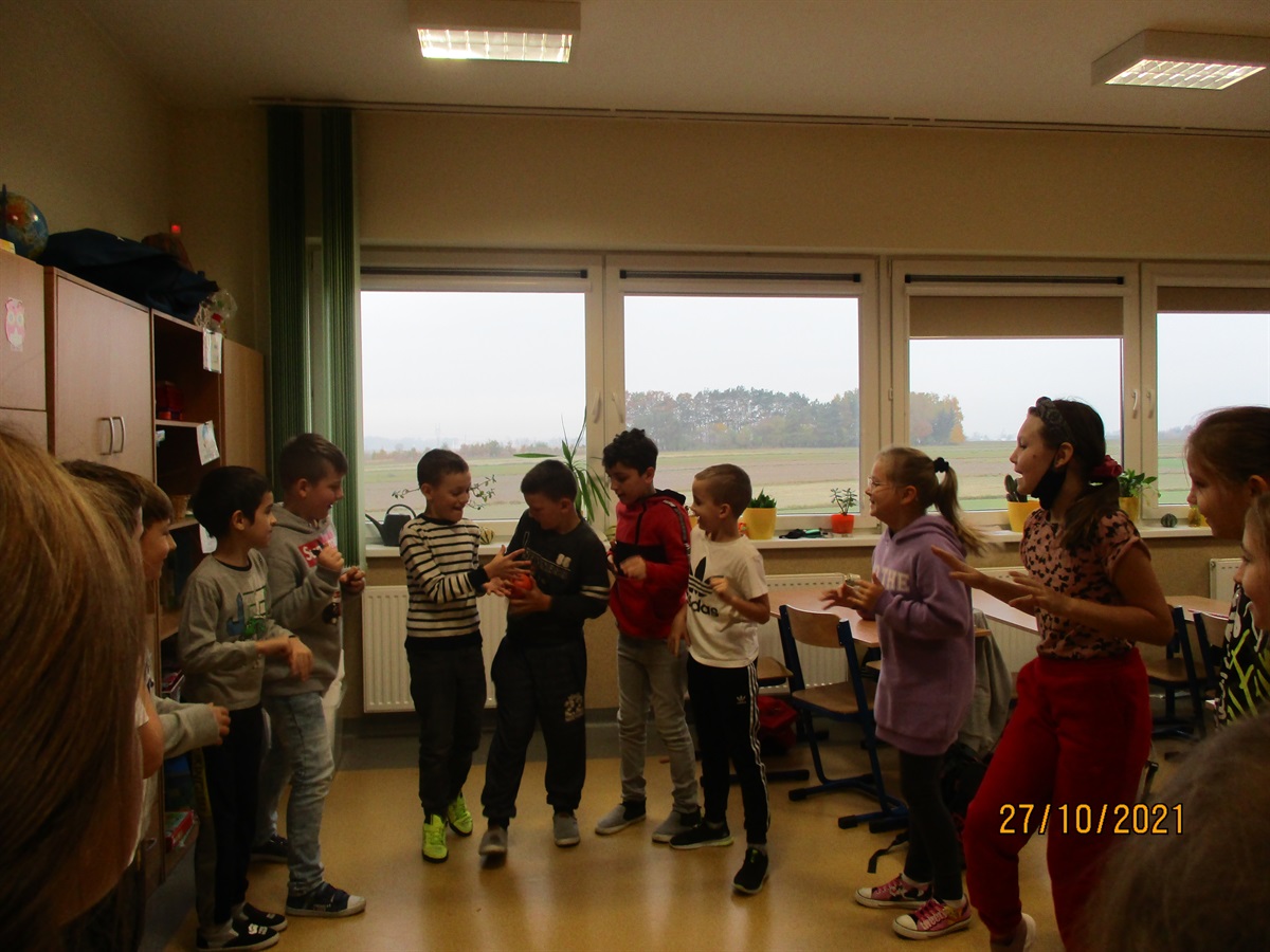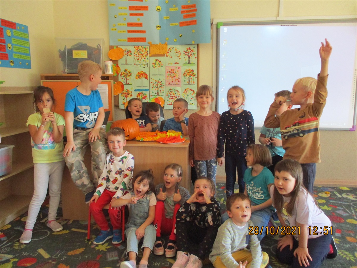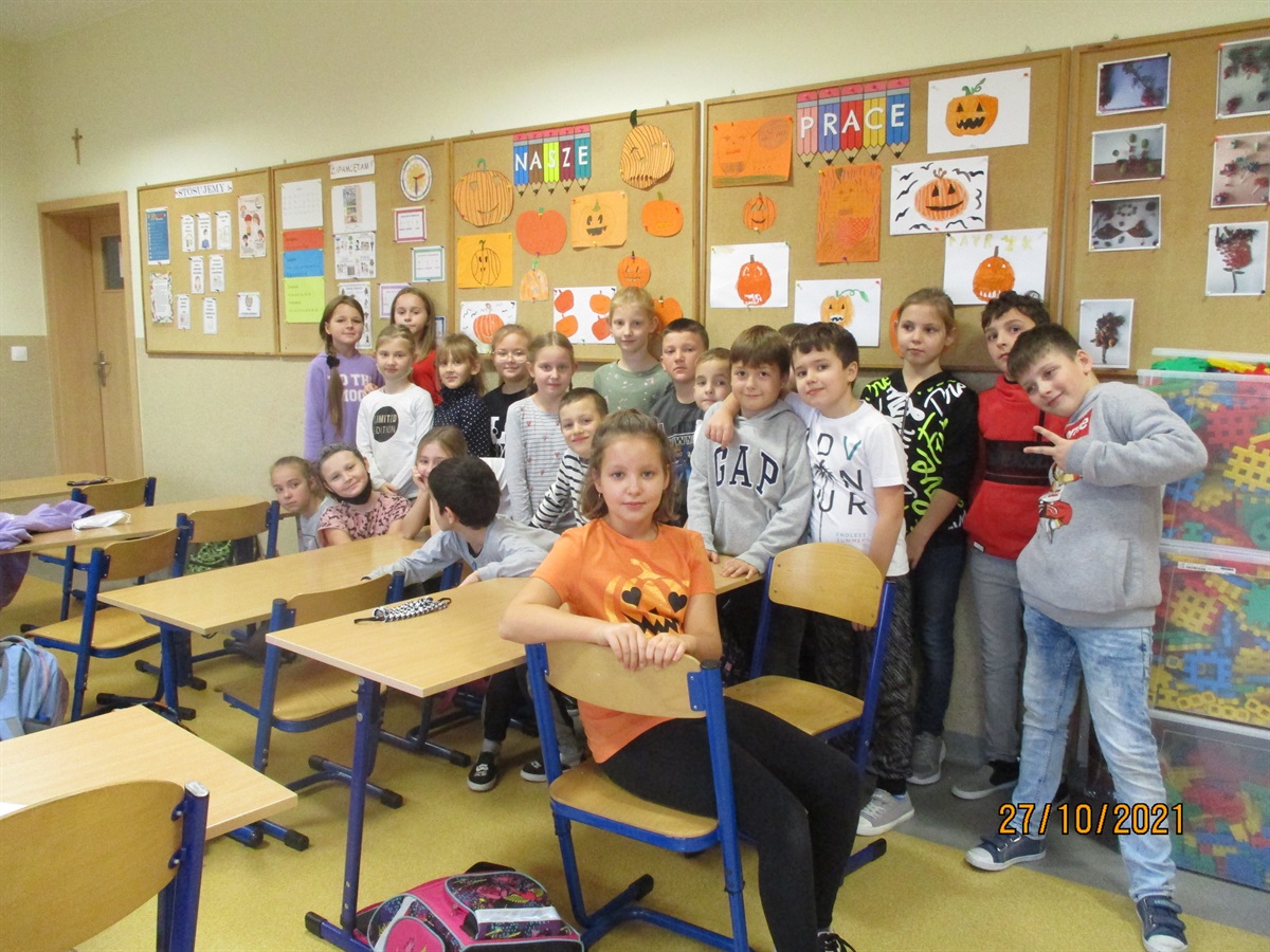 W dniach 28 i 29 października 2021r. w naszej szkole odbyło się „Święto Dyni”. W obchodach uczestniczyli uczniowie oddziałów I-III i o.p. Dla dzieci przygotowano liczne zabawy, a wśród nich: zbijanie kręgli przy pomocy dyni, „gorąca dynia” oraz zabawa sprawnościowa „jumping pumpkin”. W konkursie na najładniej przystrojoną salę pierwsze miejsce zdobył oddział I, natomiast wyróżnienie przyznano oddziałowi II. Wszystkie dzieci otrzymały słodki upominek. Organizatorkami imprezy były: Magdalena Sigorska i Agnieszka Latocha.