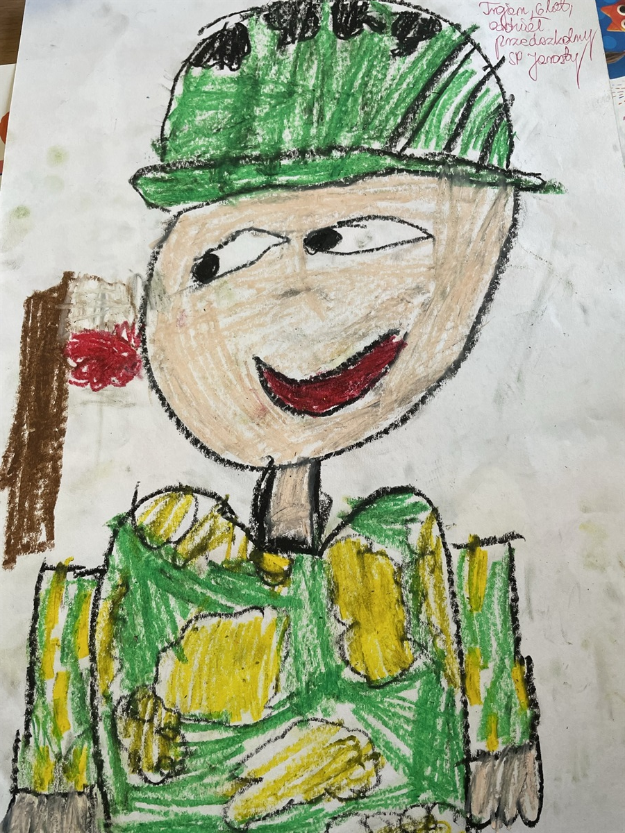 Mądrzy, waleczni, honorowi, pełni miłości do własnej ojczyzny - tacy są właśnie polscy żołnierze. Solidaryzując się z żołnierzami, policjantami i innymi służbami broniącymi naszych granic przedszkolaki podczas zajęć rysowały ich waleczne portrety. Tym samym włączyliśmy się do ogólnopolskiej akcji #dumaiszacunek - „Duma i szacunek więc narysuję rysunek” oraz inicjatywy zapoczątkowanej przez Siostry Dominikanki prowadzące Katolicką Szkołę i Przedszkole im. bł. s. Julii Rodzińskiej w Piotrkowie Trybunalskim. Dzieci z wielkim zapałem i poruszeniem opowiadały o wojsku, militariach oraz mężności, jaką codziennie wykazują się polscy żołnierze broniąc wschodniej granicy naszego kraju. Zwieńczeniem tej zaszczytnej akcji będzie spotkanie z prawdziwym żołnierzem, który opowie nam o swojej pracy oraz zaprezentuje ubranie wojskowe.