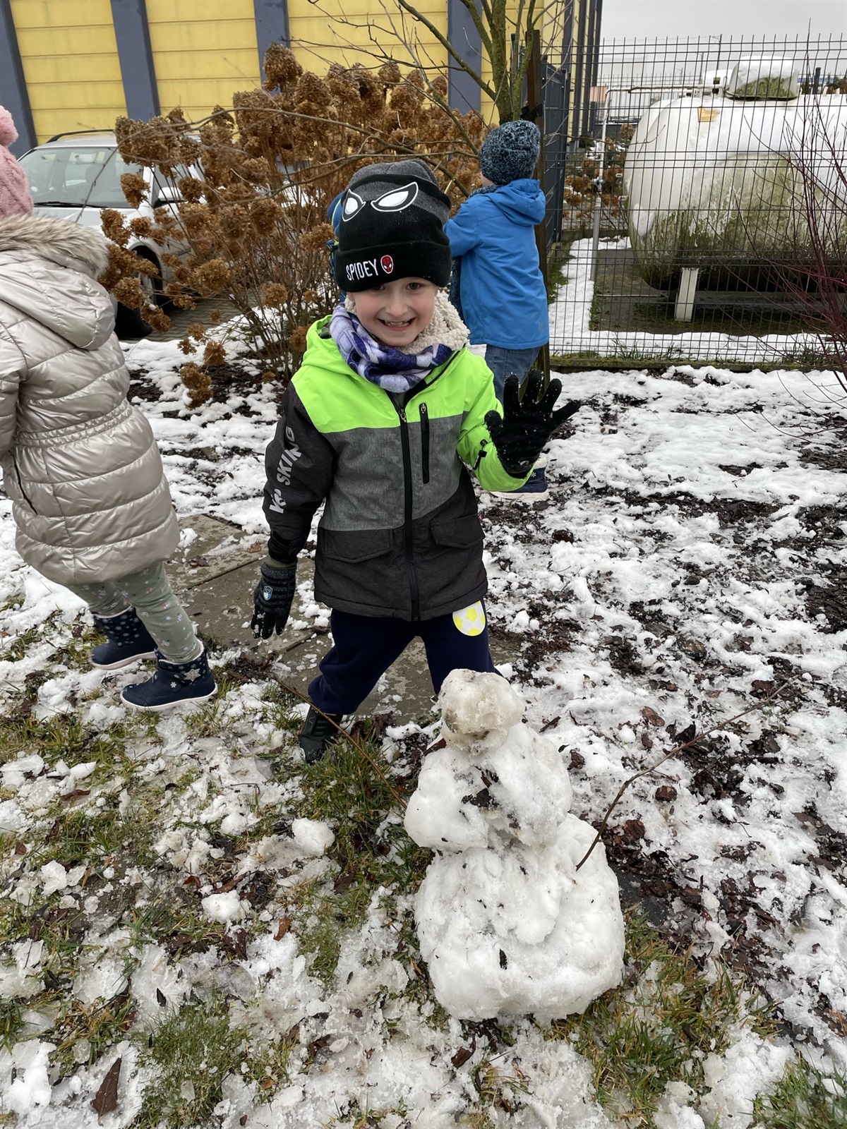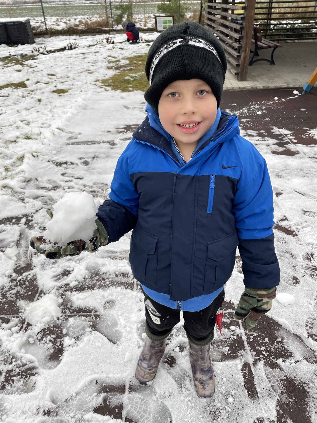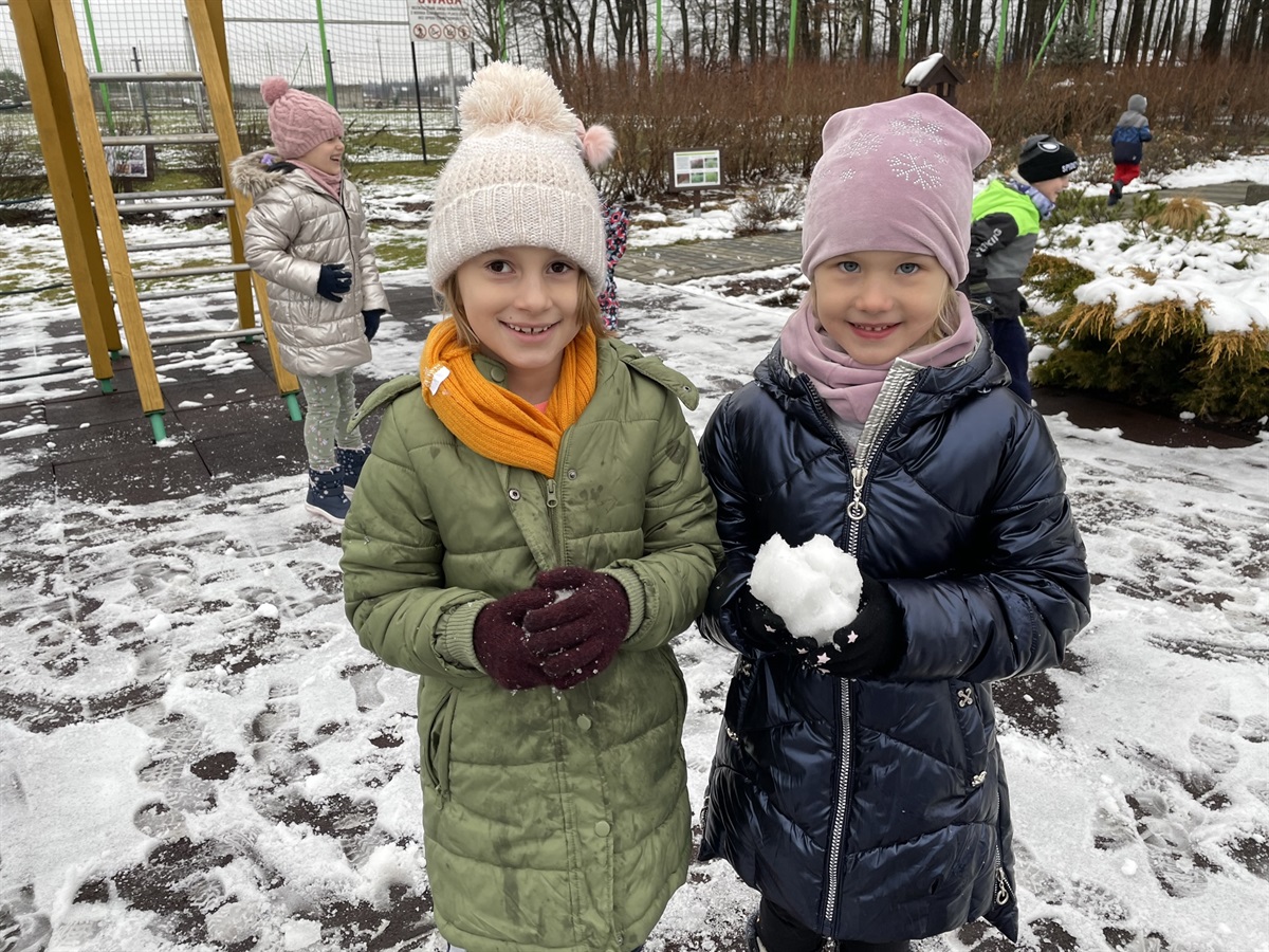 Biały, puszysty, mokry w dotyku, zimny, śliski i gładki - śnieg powitał przedszkolaków pewnego poniedziałkowego poranku. My zatem nie bojąc się tej zimowo-jesiennej aury wraz z naszą wychowawczynią wybraliśmy się na zimowe szaleństwo na terenie naszego ogródka dydaktycznego „Faliste Zakątki”.