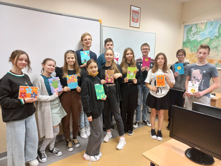 W tym roku świętowaliśmy ten dzień gronie starszych uczniów. Uczniowie klas V - VIII włączyli się w akcję "Życzliwa kartka z pozdrowieniami". Udało nam się nawiązać współpracę z Publiczną Szkołą Podstawową im. Marii Konopnickiej w Rząśniku Włościańskim oraz ze Szkołą Podstawową w Długołęce. W ramach tej współpracy uczniowie wymienili się życzliwymi kartkami, które wykonali własnoręcznie. Kartki, które dotarły do nas można zobaczyć na zdjęciach. W imieniu całej społeczności szkolnej dziękujemy naszym przyjaciołom z zaprzyjaźnionych szkół za piękne życzenia i równie piękne kartki. Cieszymy się, że udało się po raz kolejny wpisać obchody Światowego Dnia Życzliwości i Pozdrowień w kalendarz wydarzeń naszej szkoły.