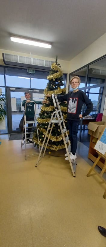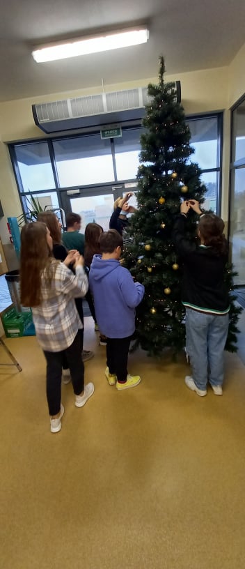 Zgodnie z tradycją w holu naszej szkoły pojawiła się ogromna choinka. To ona zwiastuje zbliżające się i wyczekiwane przez wszystkich cudowne Święta Bożego Narodzenia. Przed nami Adwent, a po nim wyjątkowy i rodzinny czas Świąt. Dekorowaniu szkoły towarzyszyła nostalgiczna atmosfera. Bowiem w strojenie choinki, korytarza i świetlicy mocno zaangażowani byli jak zawsze dziś już uczniowie klasy VIII A. Z łezką w oku tworzyli świąteczny klimat w szkole podkreślając, iż czynią to po raz ostatni w murach naszej szkoły. Teraz pozostaje nam tylko wyczekiwać i odliczać dni w kalendarzu na symboliczne Narodziny Malutkiego Jezusa. Oby narodził się na nowo w naszych sercach ...Oczekujmy ...