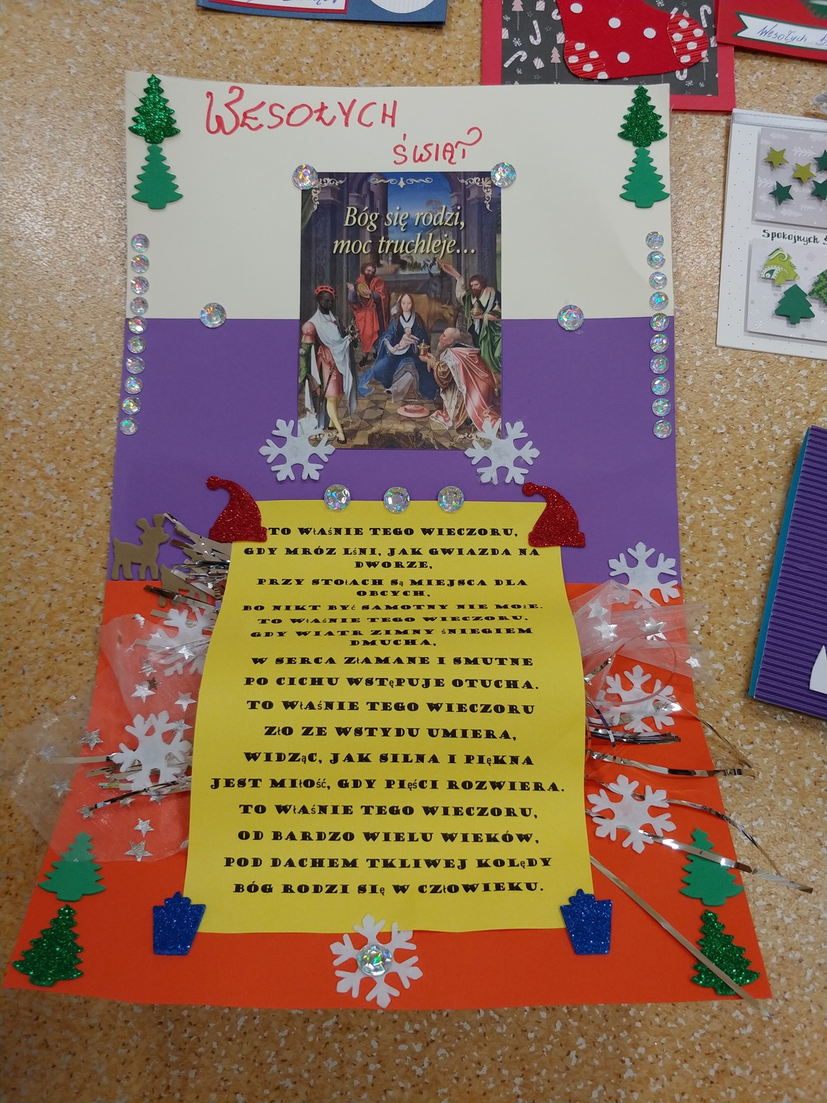 Rozstrzygnięto konkurs na ,,Magiczną kartkę świąteczną". Nagrody otrzymają: Zuzanna Mamełka, Lena Dajcz, Antoni Sobala, Paweł Cieślik, Bartosz Mamełka, Karol Midera, Monika Pęczak, Adrianna Barańska, Blanka Pęczak, Patryk Besztak, Aniela Płusa Weronika Mordaka, Jakub Andrychiewicz, Michał Dziubecki, Dariusz Makowski, Natalia Mordaka.