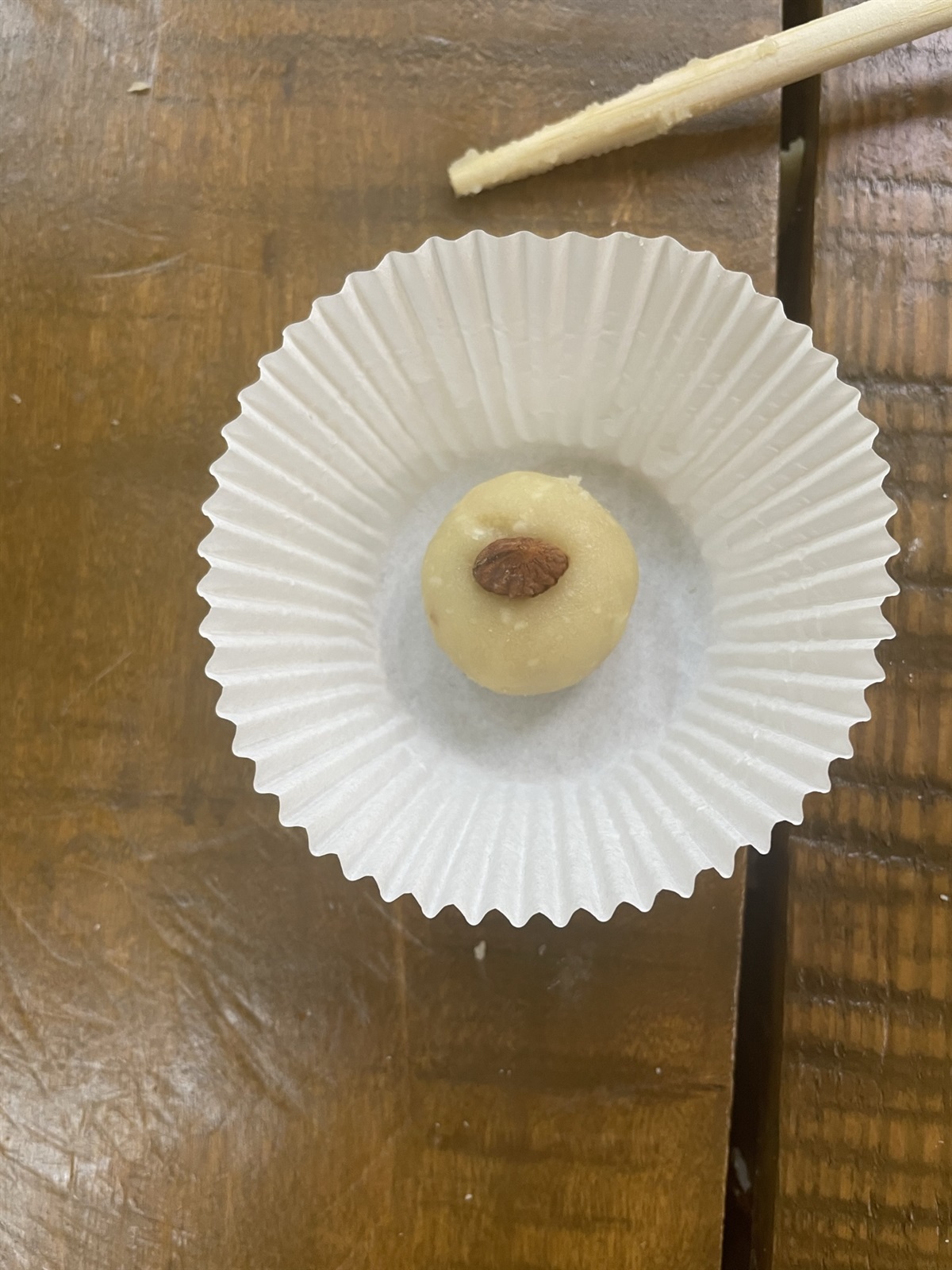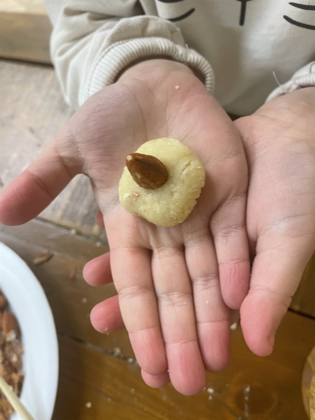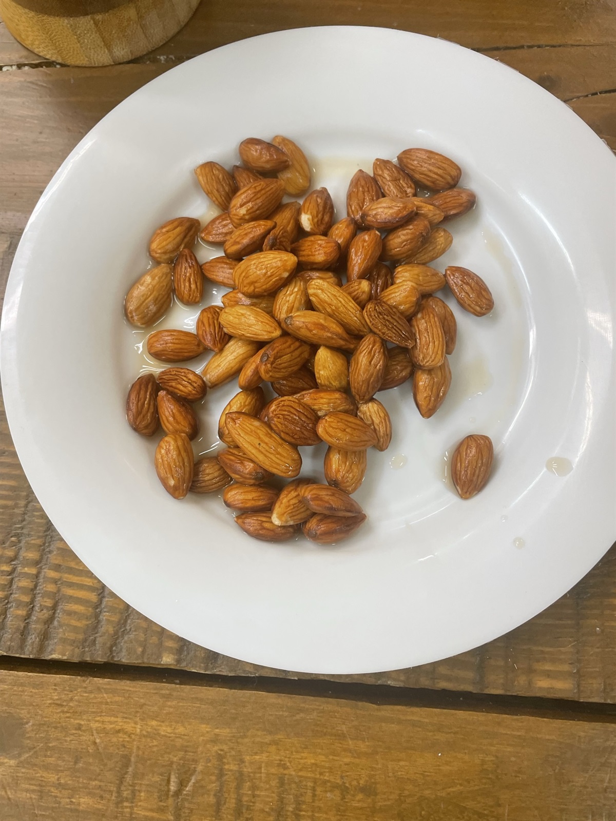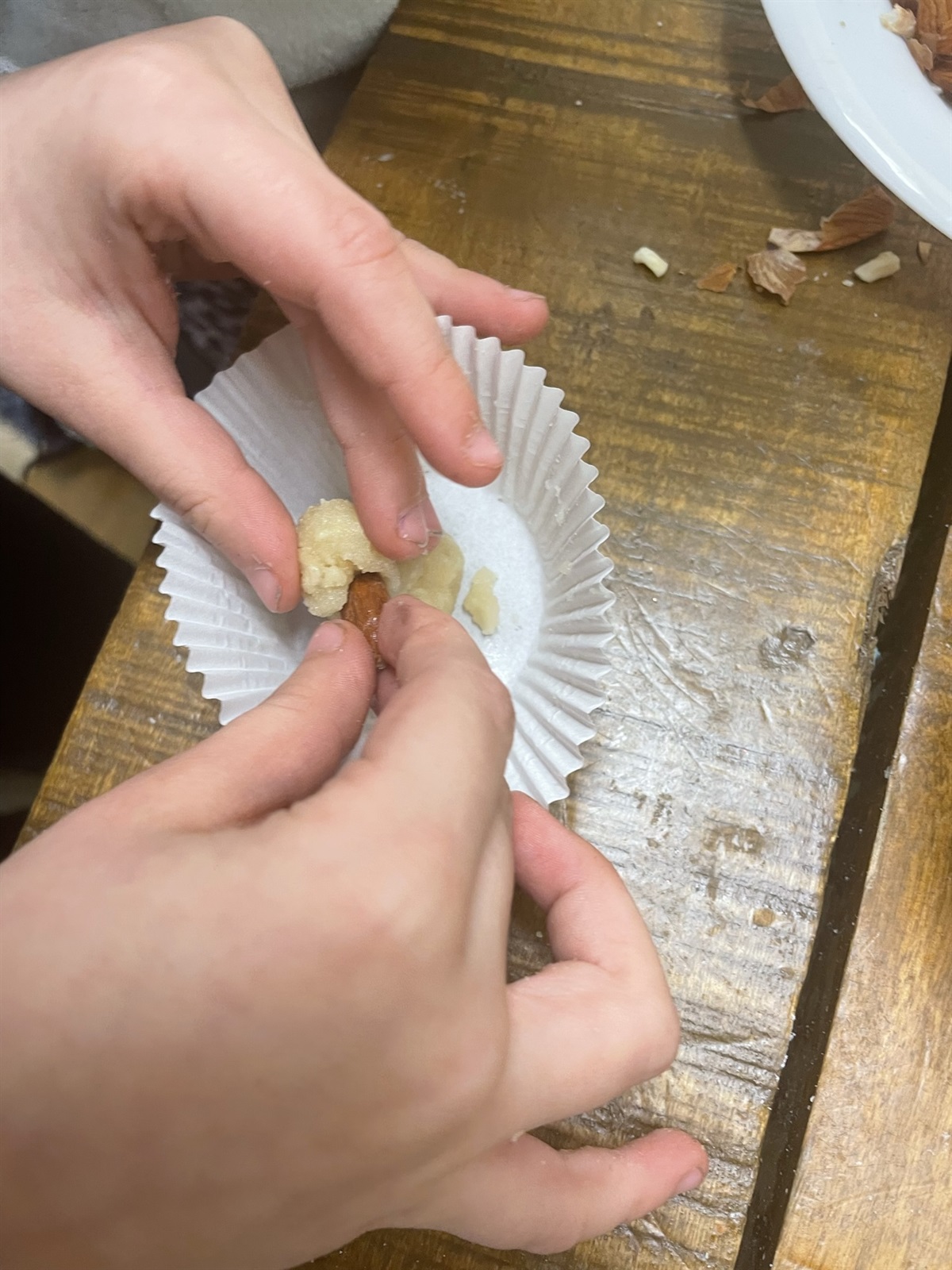miseczki, obierali sparzone we wrzącej wodzie migdały - główny składnik