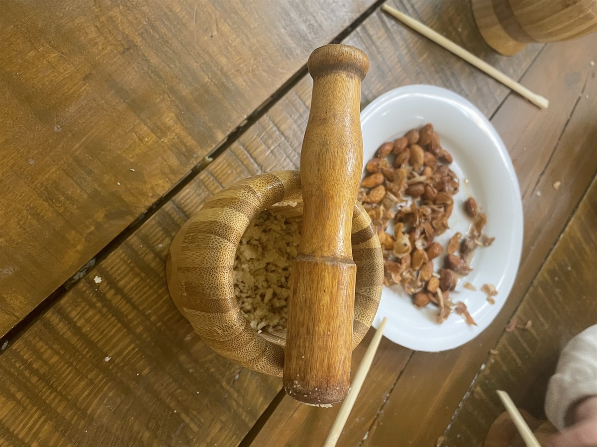 marcepana. Następnie moździerzem migdały ugniatali w miseczce, aż na gładką