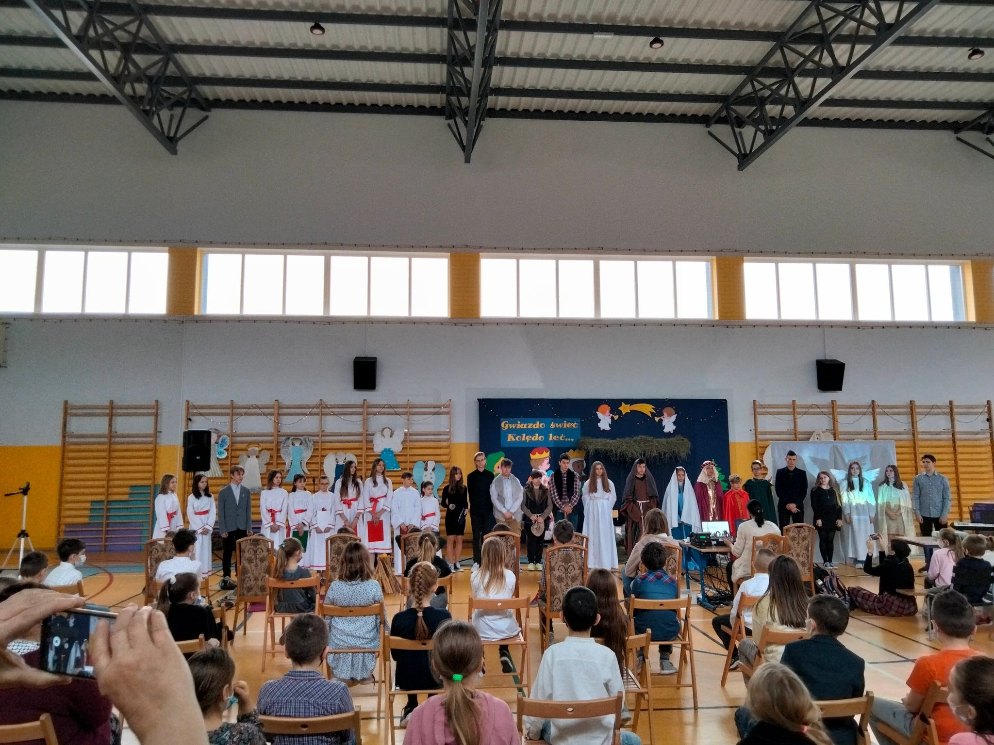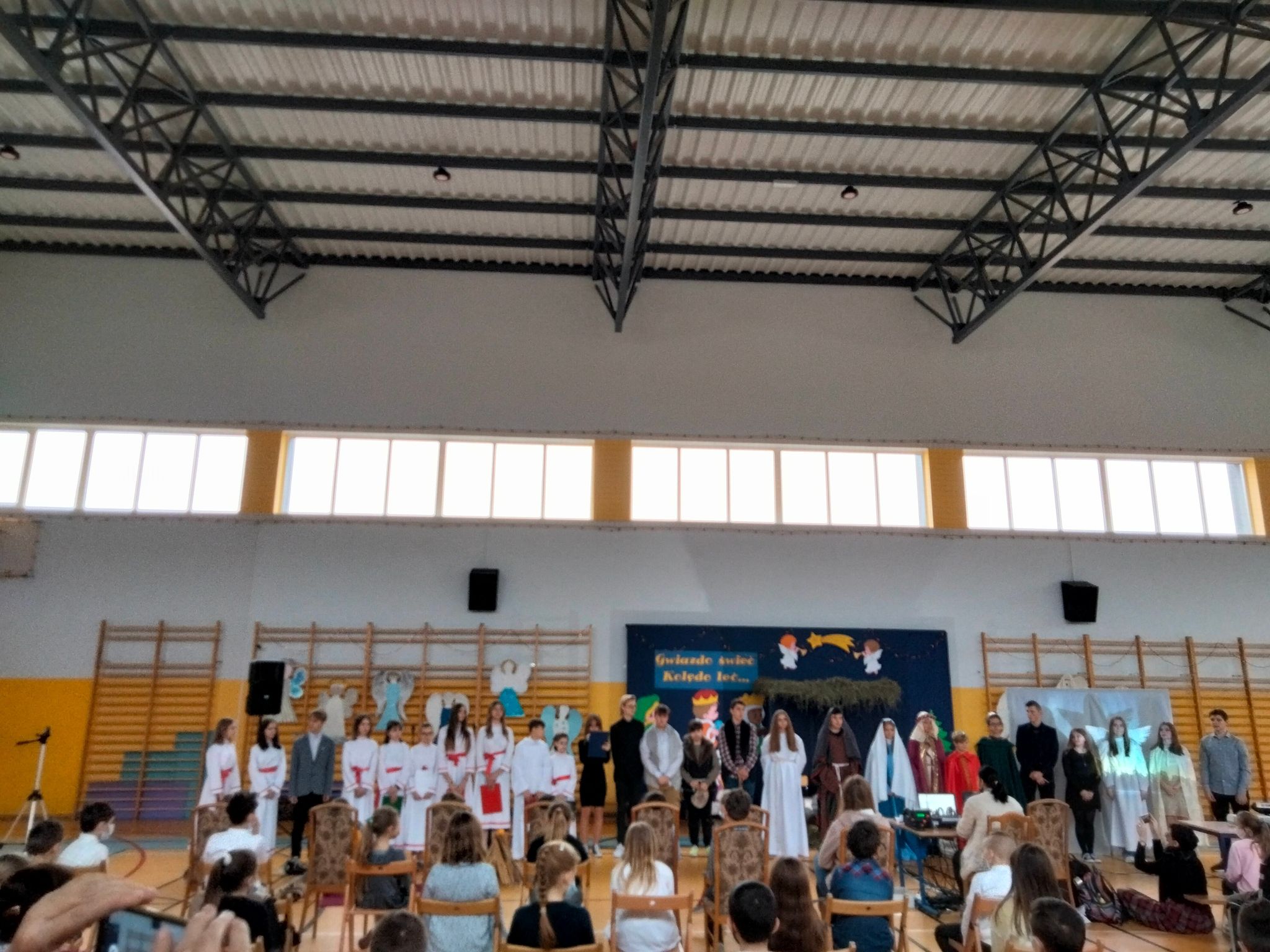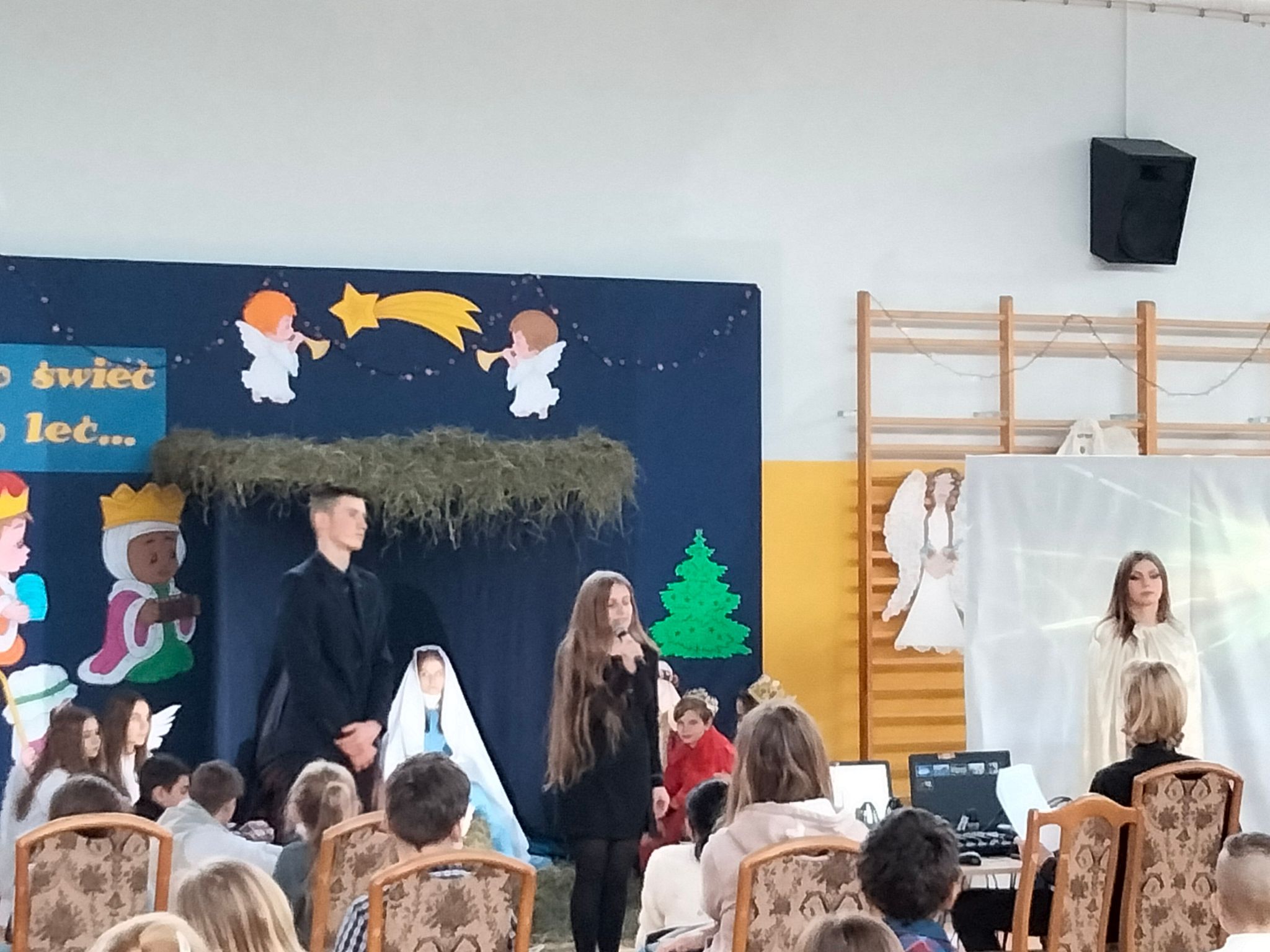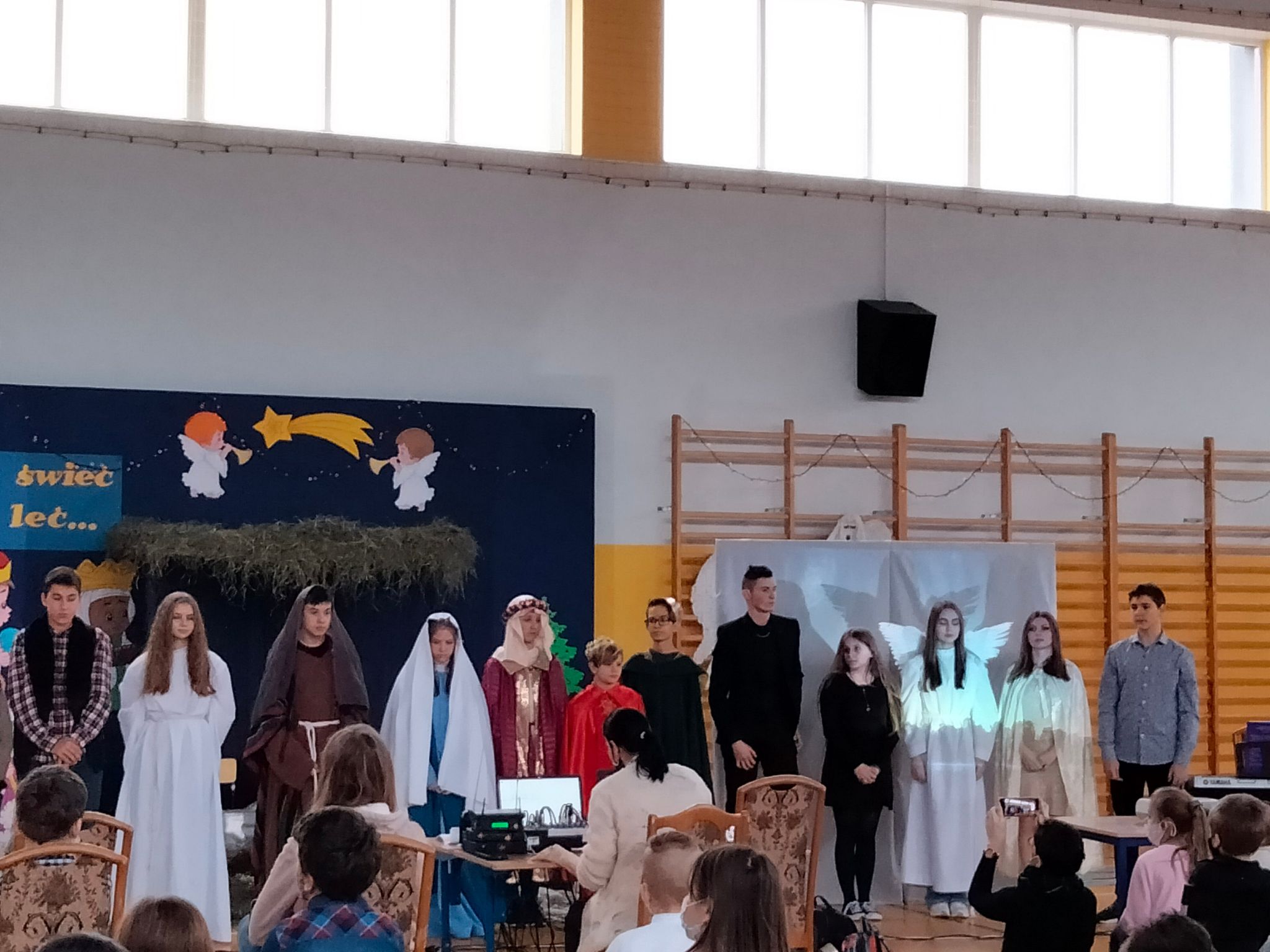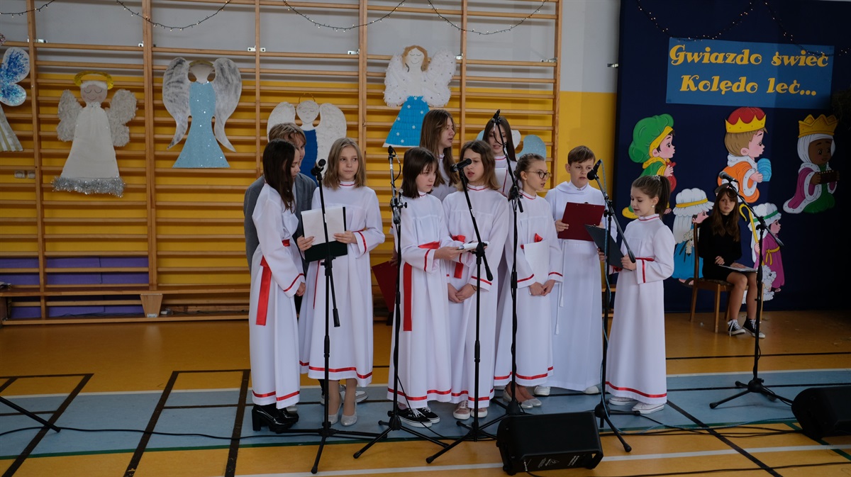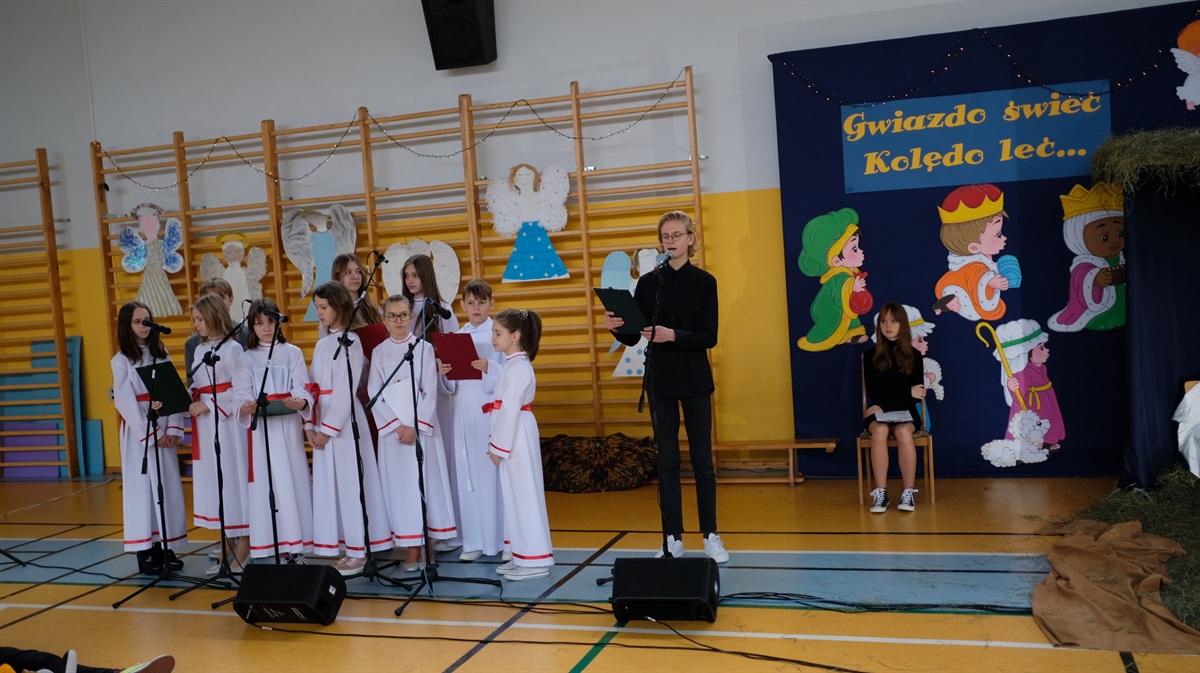 Okres Bożego Narodzenia już za nami. Mimo to chcielibyśmy podzielić się ze wszystkimi krótką relacją z naszego przedstawienia jasełkowego. Wydawało się, że nasze plany nie dojdą do skutku, niestety,  tuż przed świętami zostało wprowadzone zdalne nauczanie. Dzięki determinacji naszych aktorów występ doszedł do skutku. Jasełka odbyły się 26 stycznia. Wielką radością było to, że cała szkoła mogła obejrzeć przedstawienie. Warto zaznaczyć, że ta data okazała się starzałem w dziesiątkę, ponieważ już od 27 stycznia starsze klasy przechodziły ponownie na zdalne nauczanie.