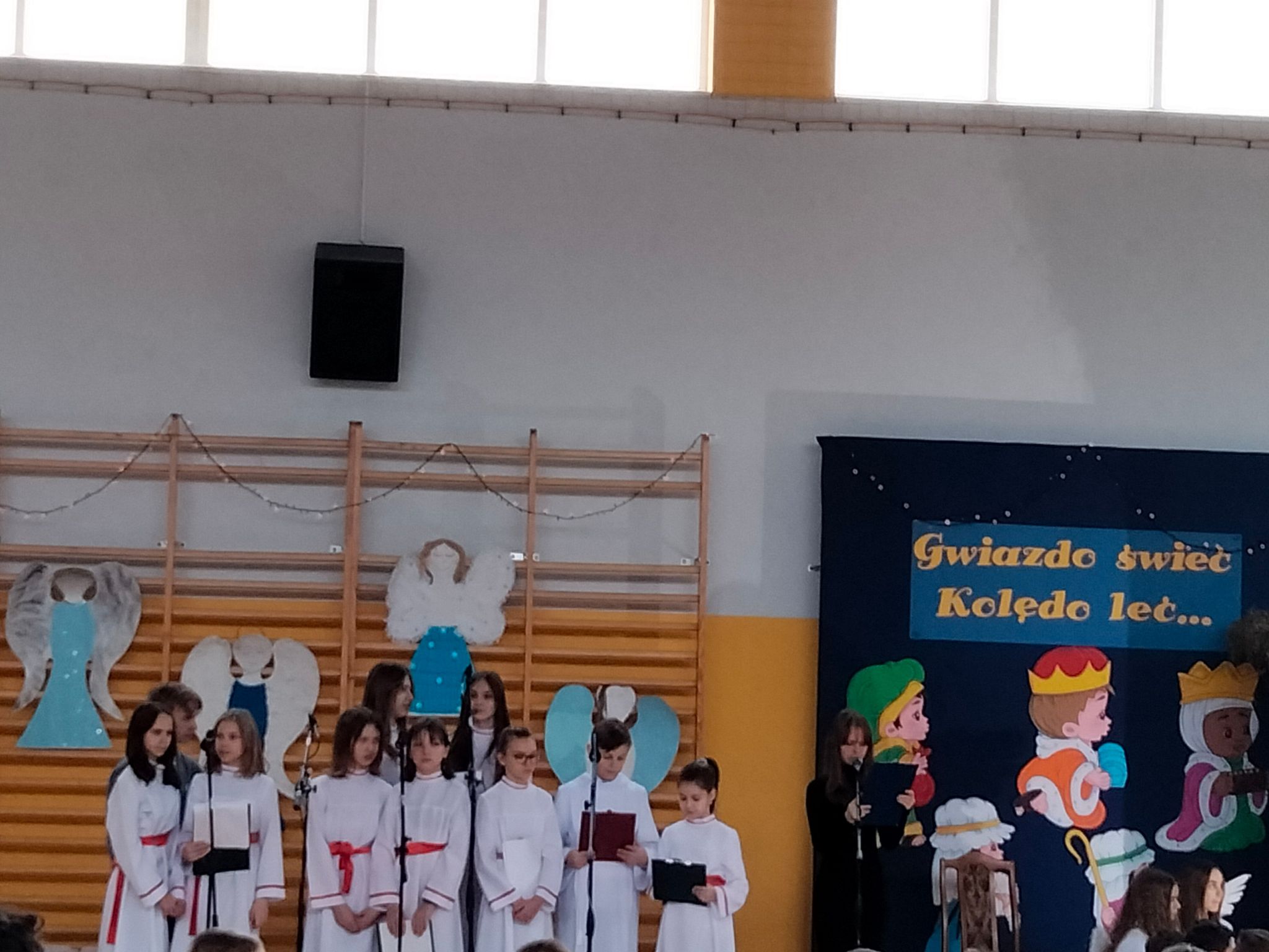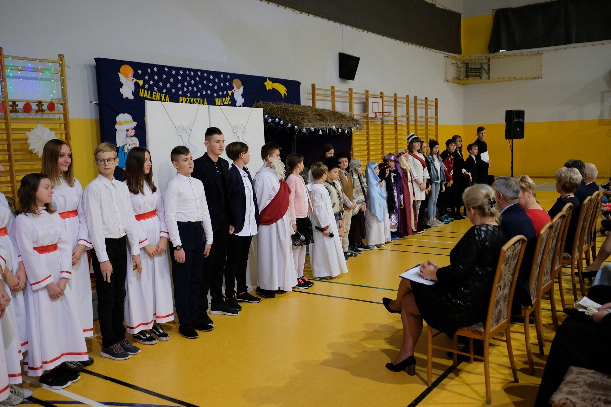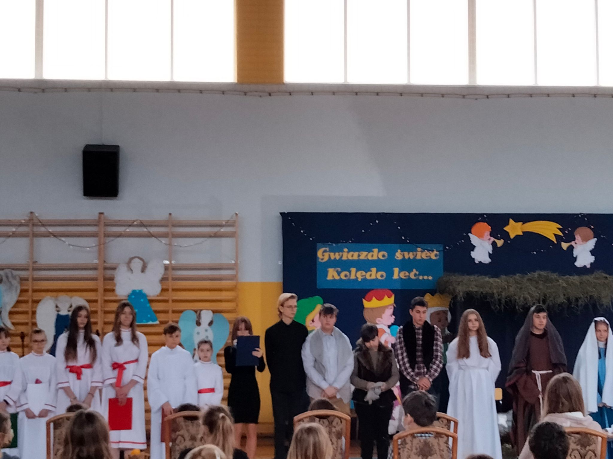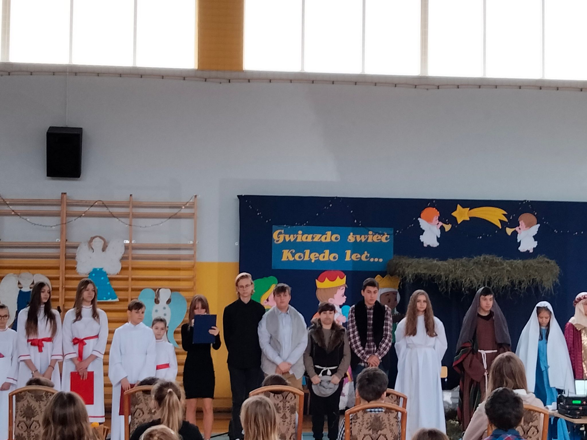 Dziękujemy nauczycielom, którzy wspomagali organizację przedstawienia swoją cierpliwością, dobrym słowem, wszelką pomocą. Dziękujemy Pani Dyrektor za zielone światło, kiedy przesuwaliśmy jasełka na styczeń i wszystko stało pod znakiem zapytania, a Paniom: Anetcie Banaszczyk i Annie Góreckiej za przepiękną klimatyczną dekorację.