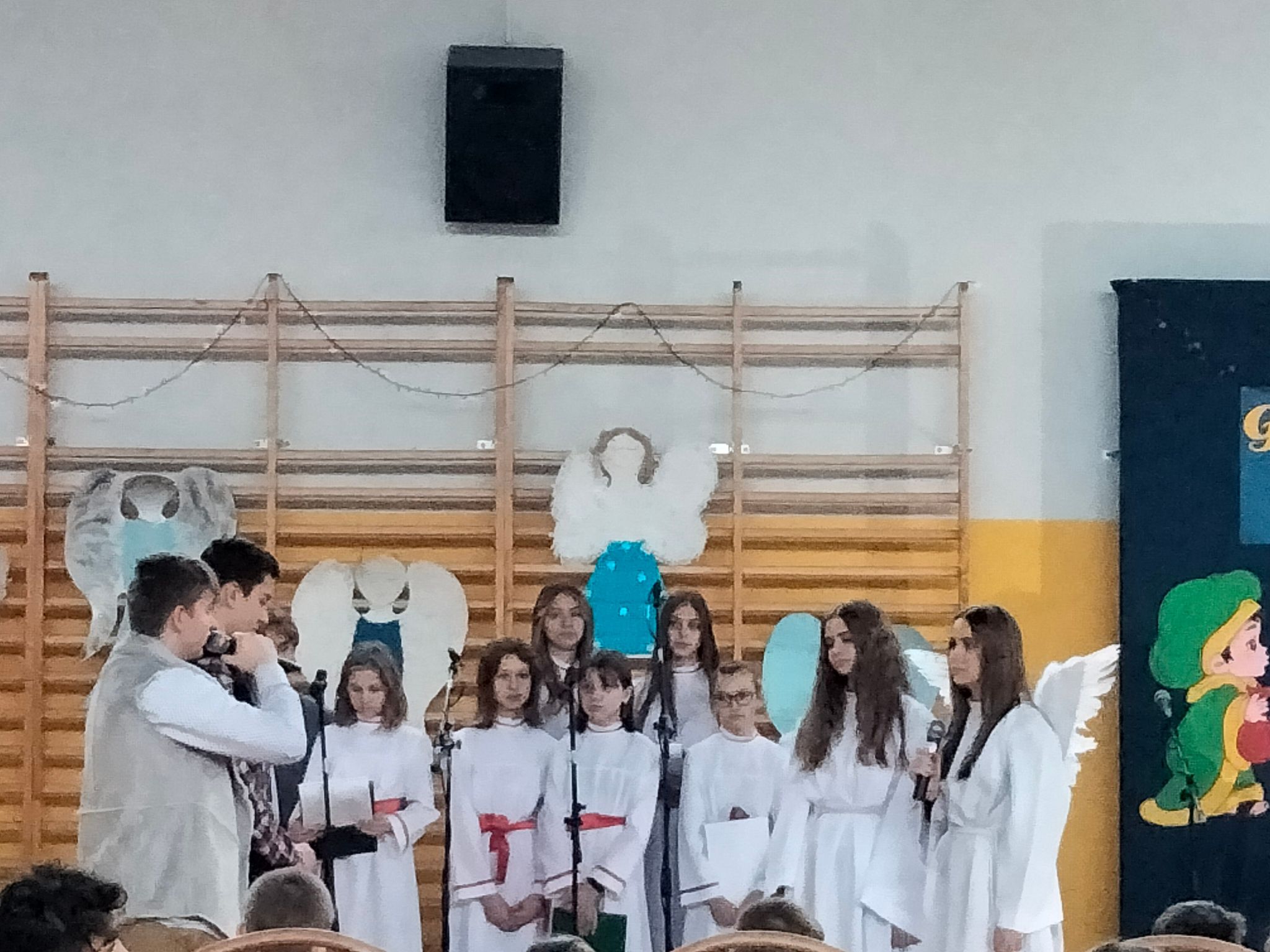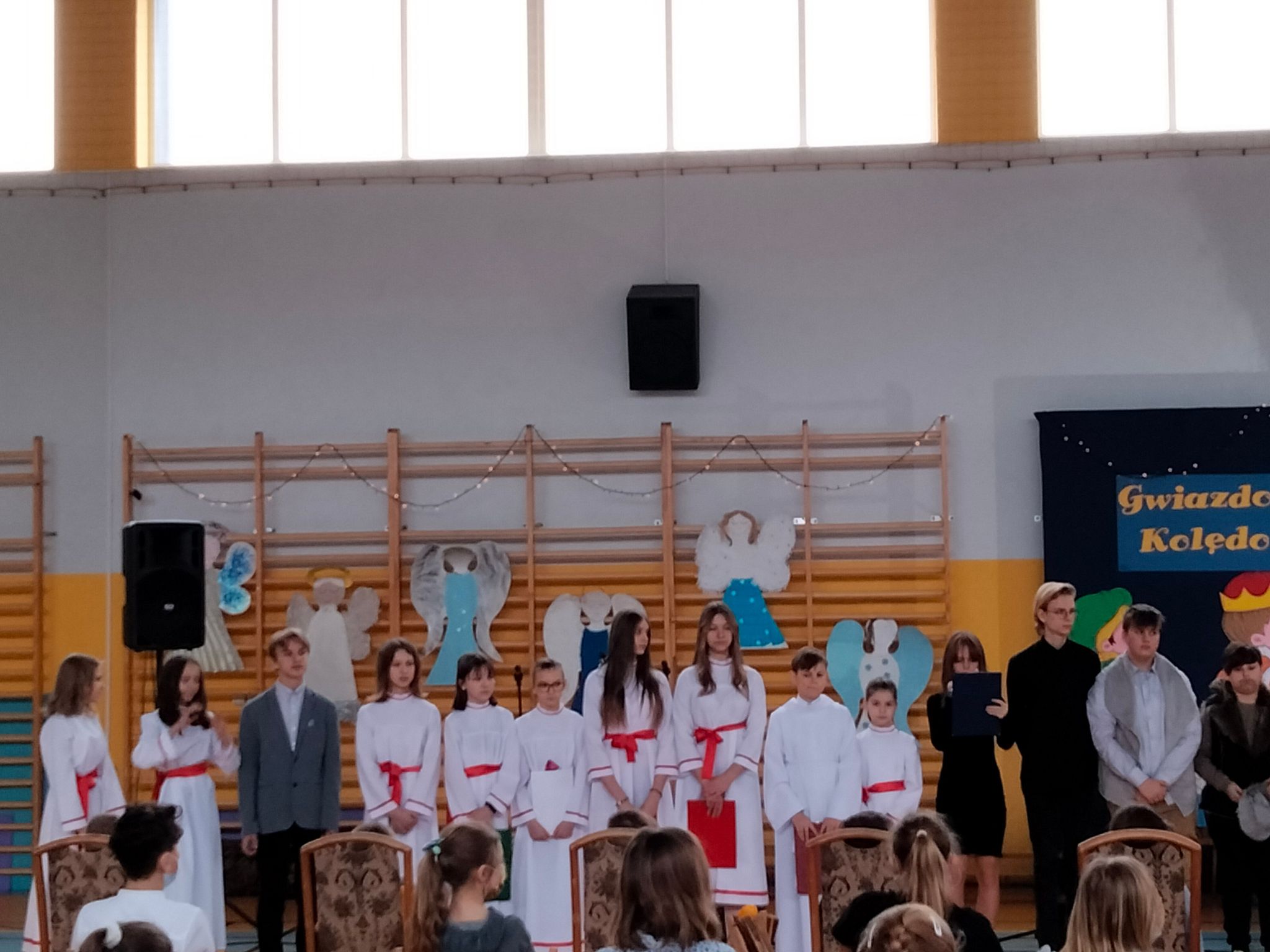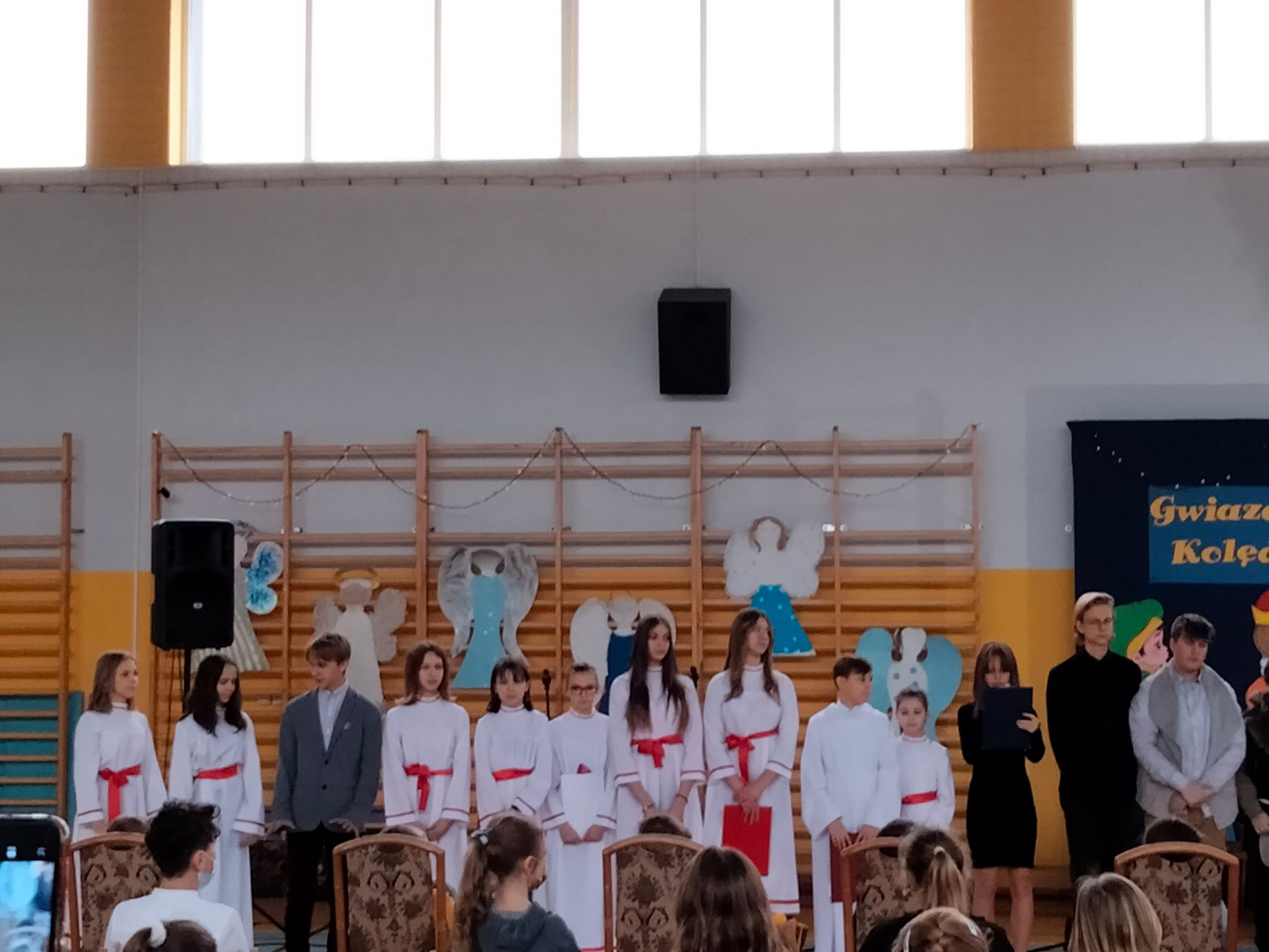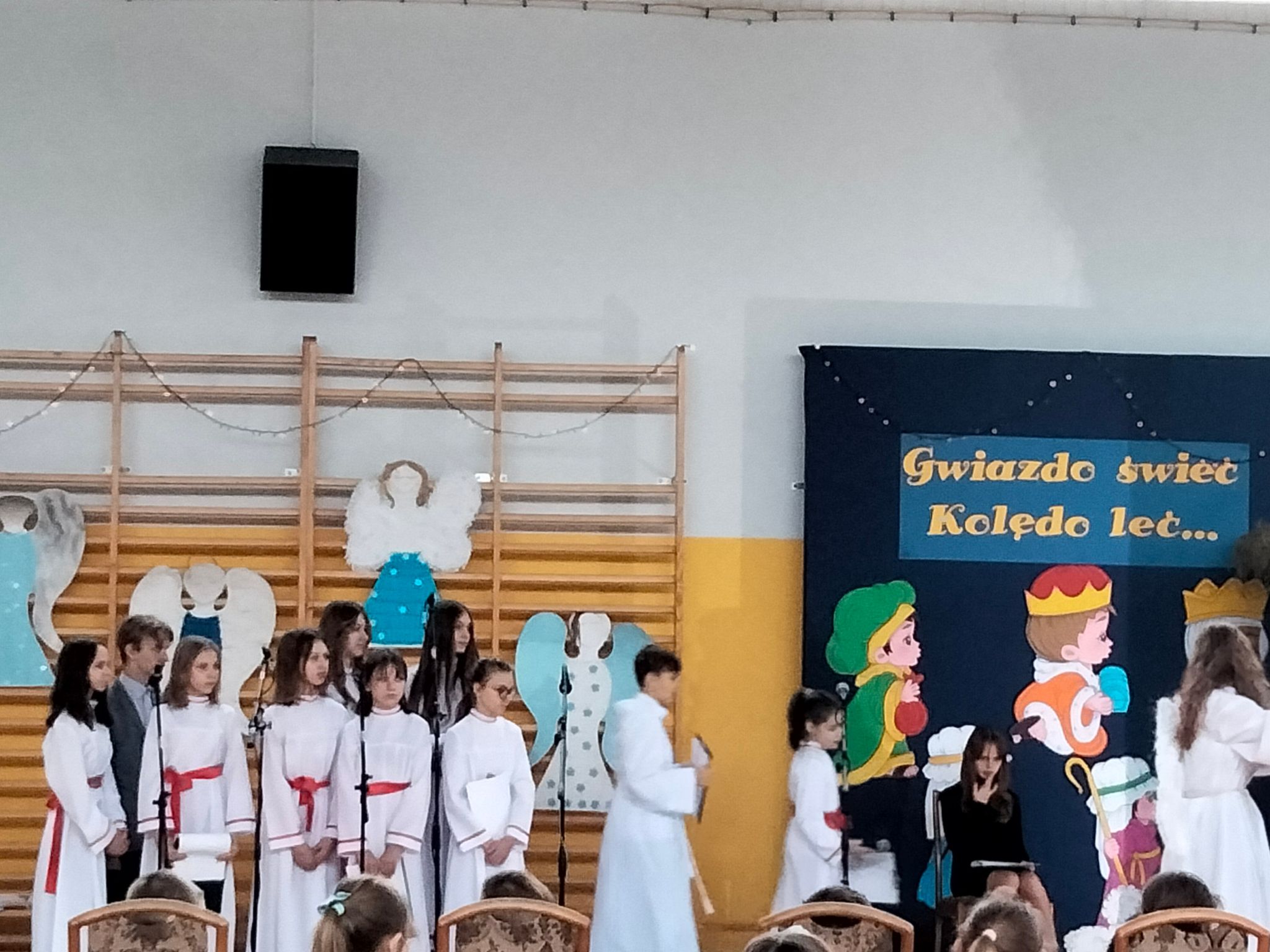Dziękujemy nauczycielom, którzy wspomagali organizację przedstawienia swoją cierpliwością, dobrym słowem, wszelką pomocą. Dziękujemy Pani Dyrektor za zielone światło, kiedy przesuwaliśmy jasełka na styczeń i wszystko stało pod znakiem zapytania, a Paniom: Anetcie Banaszczyk i Annie Góreckiej za przepiękną klimatyczną dekorację.