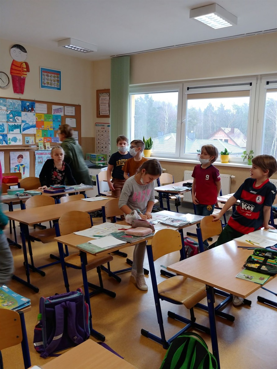 25 listopada w naszej szkole świętowaliśmy Dzień Pluszowego Misia – jedno z najbardziej lubianych wydarzeń wśród uczniów. Z tej okazji Samorząd Uczniowski przygotował dla dzieci wiele atrakcji, które wprowadziły wszystkich w radosny, misiowy nastrój.Uczniowie brali udział w kolorowaniu gigantycznego misia, który szybko zapełnił się barwnymi wzorami i stał się wspólnym dziełem całej społeczności szkolnej. Nie zabrakło również misiowych quizów i krzyżówek, dzięki którym dzieci mogły sprawdzić swoją wiedzę o słynnych bajkowych misiach i dobrze się przy tym bawić.Dużym zainteresowaniem cieszyła się również zabawa w poszukiwanie ukrytych w szkole misiów. Zadanie okazało się świetną okazją do współpracy, spostrzegawczości i dobrej zabawy.Na każdego uczestnika czekały słodkie upominki, które były miłym zwieńczeniem wspólnie spędzonego czasu.Samorząd Uczniowski serdecznie dziękuje wszystkim, którzy przyłączyli się do wspólnego świętowania Dnia Pluszowego Misia.