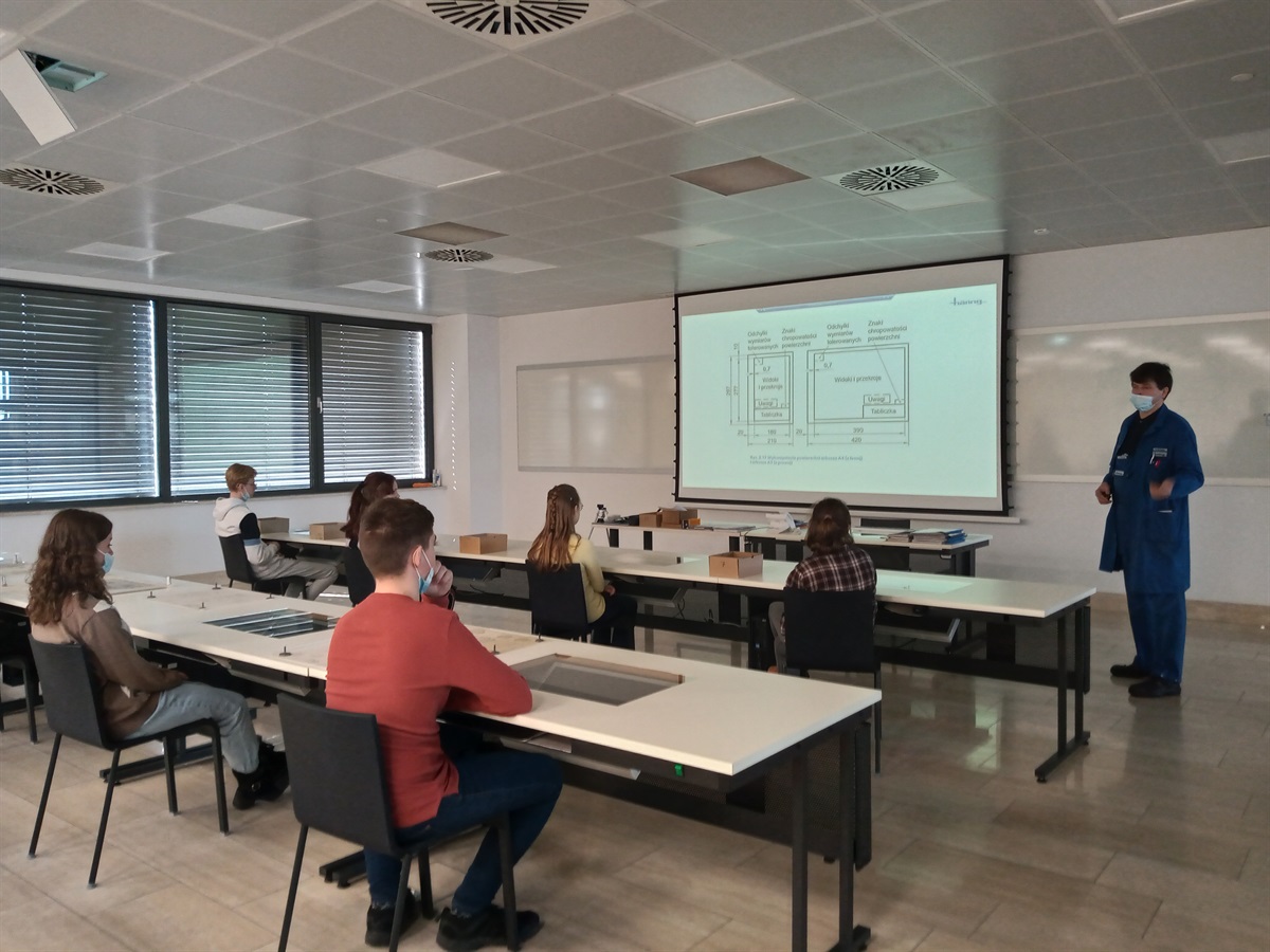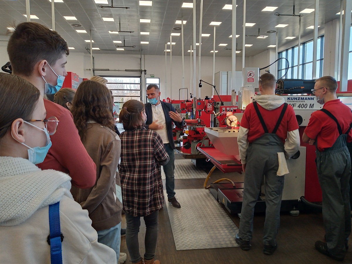 Pierwszą część wycieczki stanowił wykład połączony z prezentacją multimedialną  na temat kształcenia zawodowego w Szkole Branżowej I i II stopnia, specjalizującej się w kierunkach: technik handlowiec, operator obrabiarek skrawających, technik mechanik, technik mechatronik.