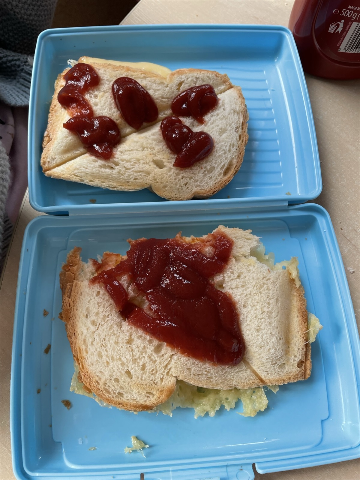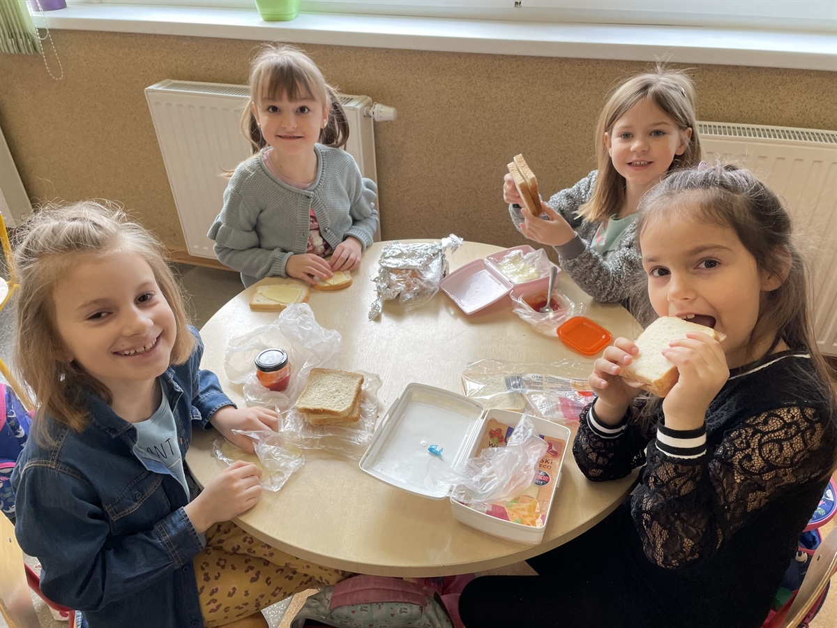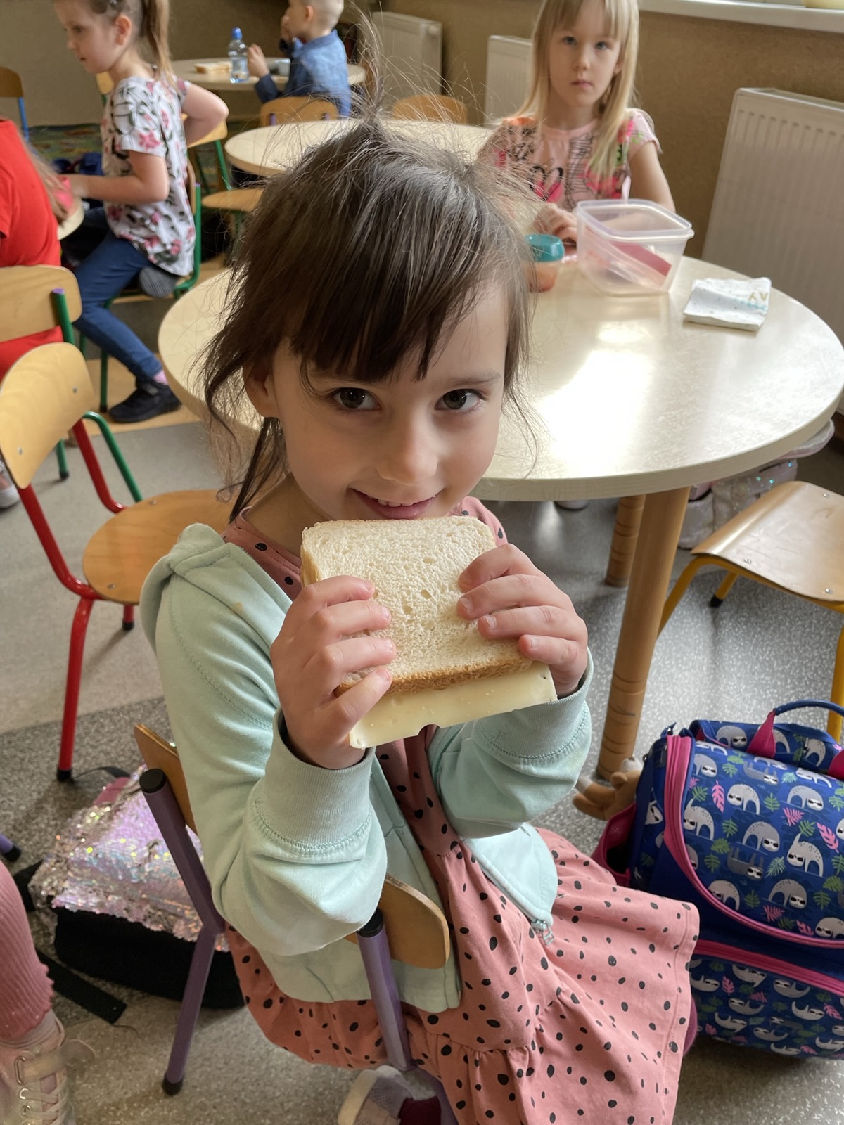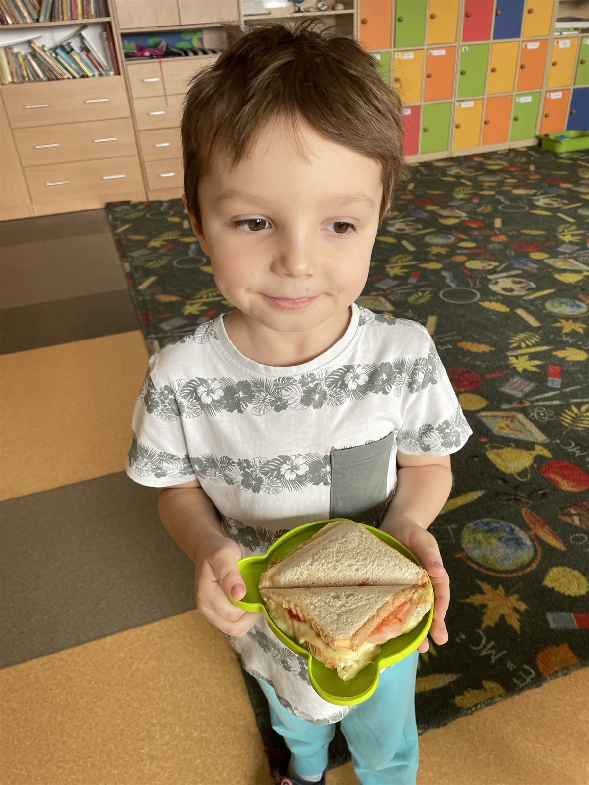 i sprawdzić swoją wiedzę na temat tostów. Na samym końcu pozostawiliśmy sobie najsmaczniejszą część, każdy przedszkolak stworzył swojego oryginalnego tosta, polanego przepysznym ketchupem. Palce lizać!
