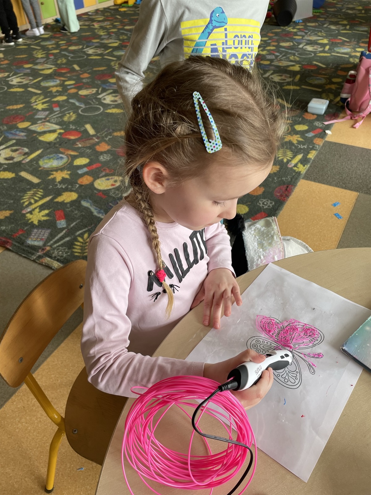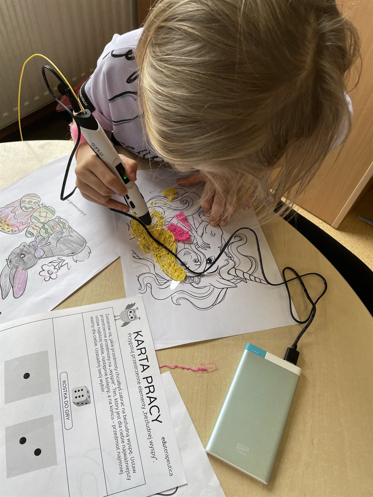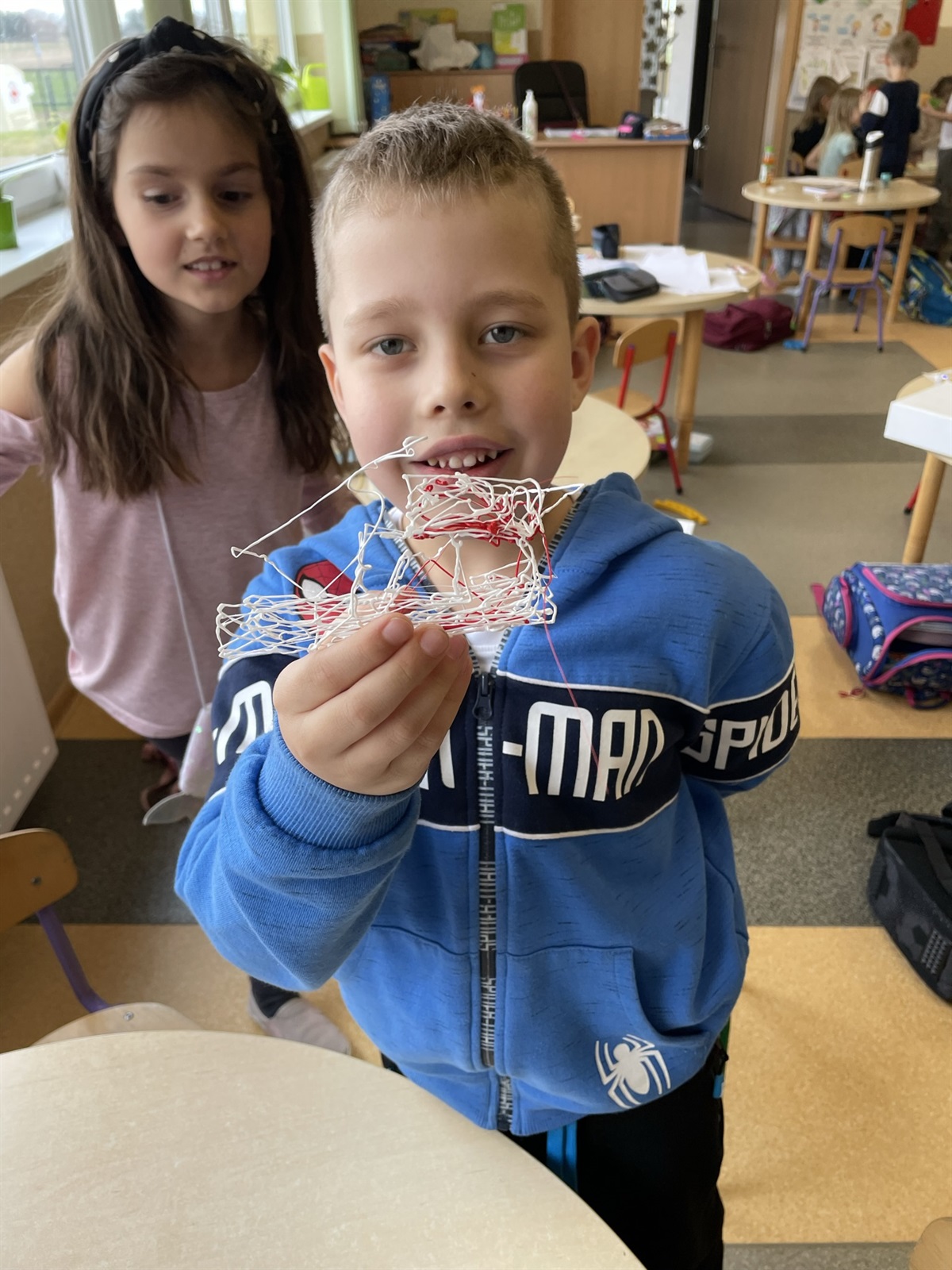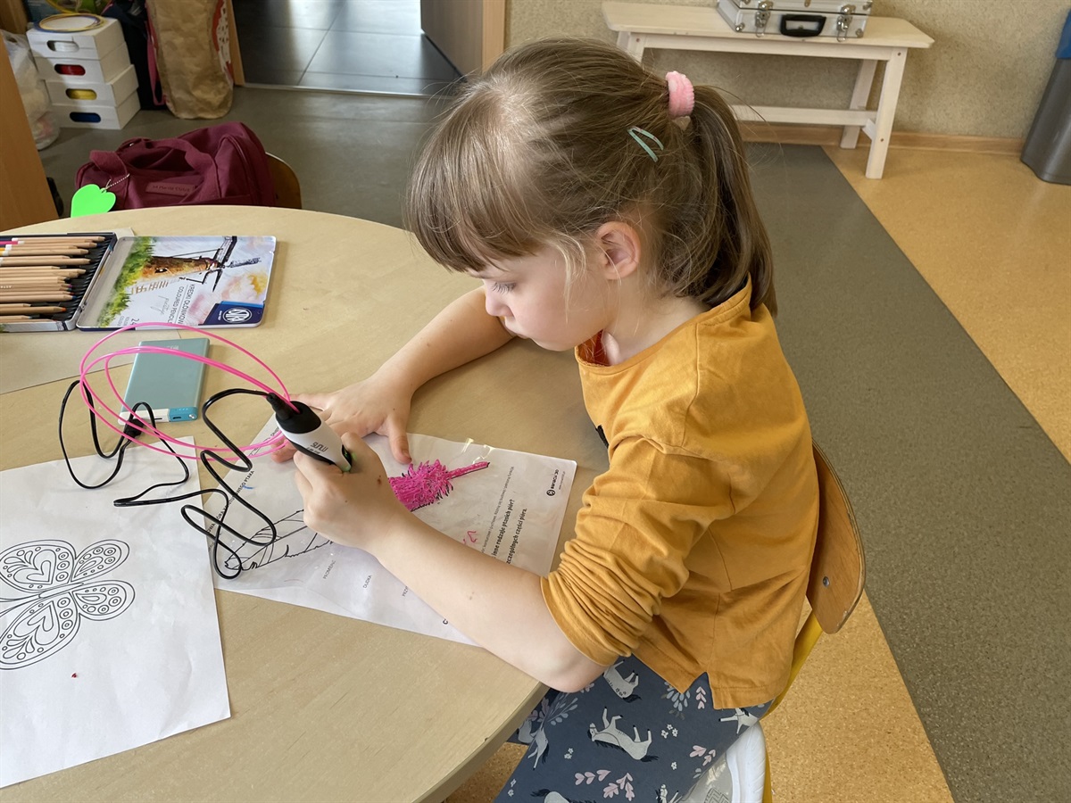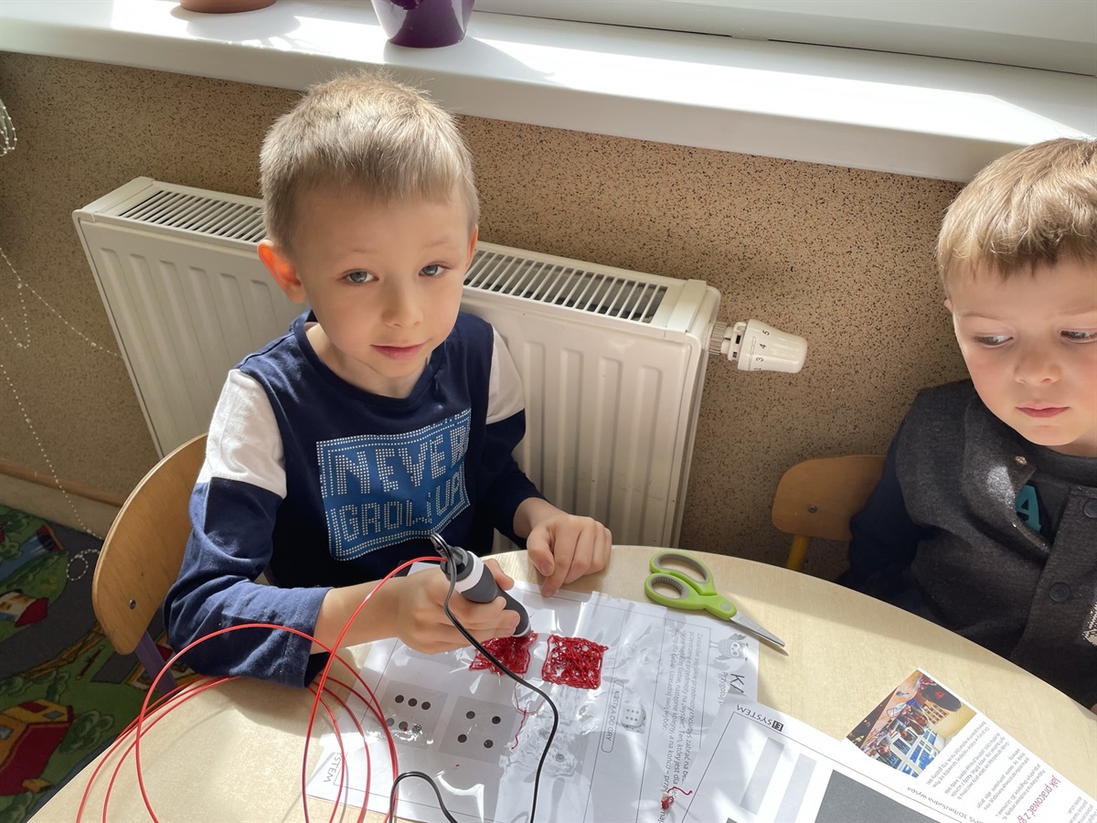 Oprócz tego podczas zajęć tworzymy przestrzenne rysunki przy użyciu długopisów Banach 3D. Stojąca mucha, namiot, rower, okulary, które można po narysowaniu założyć na nos. Technologia po prostu nie ma przed nami żadnych tajemnic. Zapraszamy wszystkie chętne przedszkolaki, które nie boją się technologii i chcą się uczyć na najwyższym poziomie do oddziału przedszkolnego SP Jarosty.