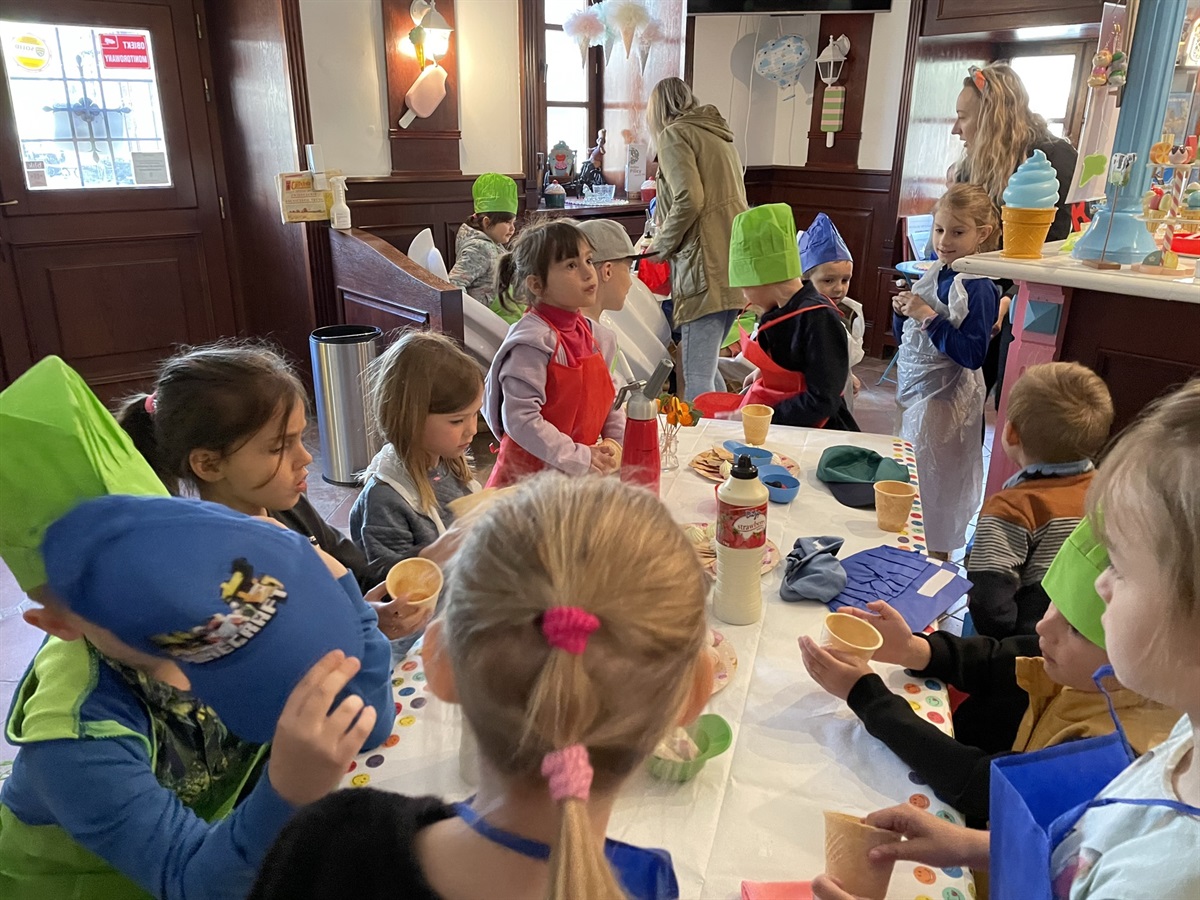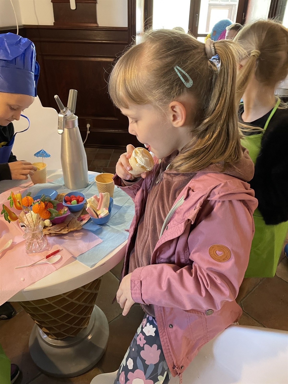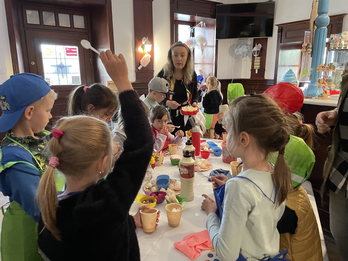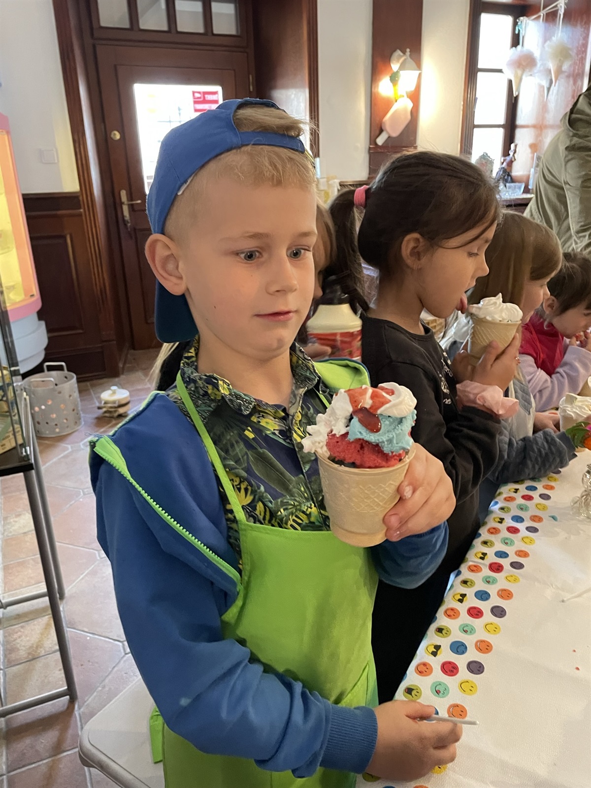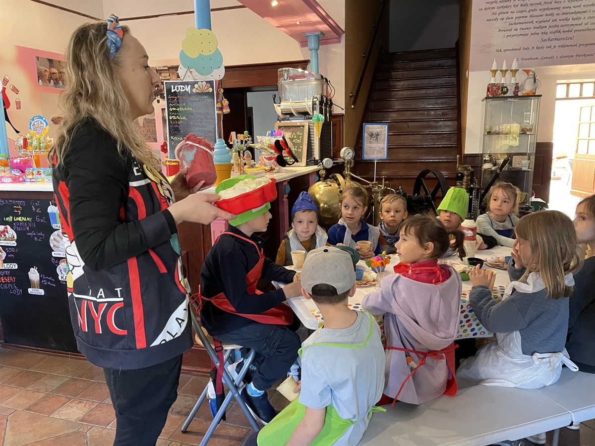 produkcji, jak i sprzedaży lodów, rozpoczęliśmy część warsztatową. Nie zabrakło