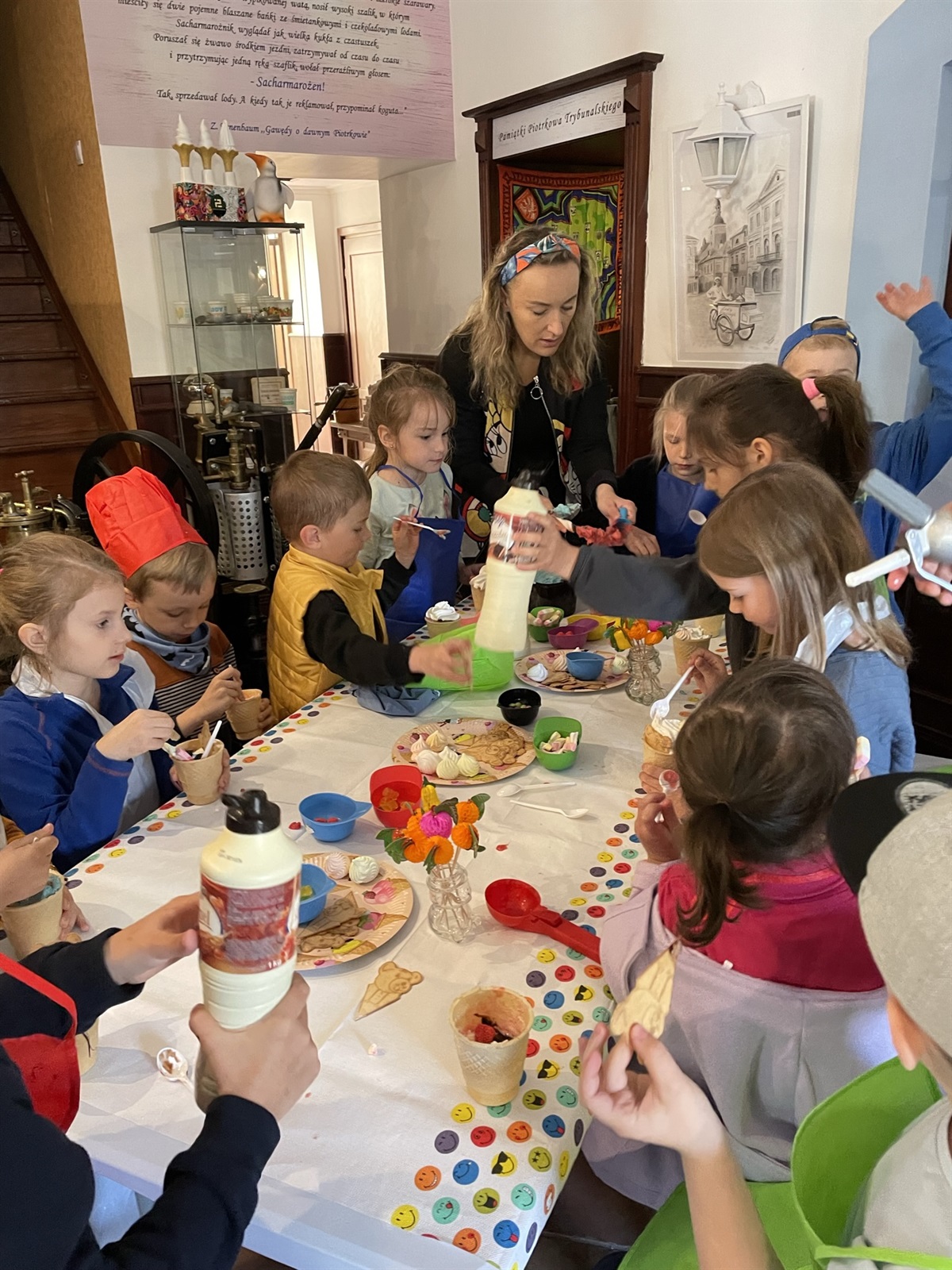 właścicielka muzeum wprowadziła nas w niezwykle kolorowy i słodki smak lodów.