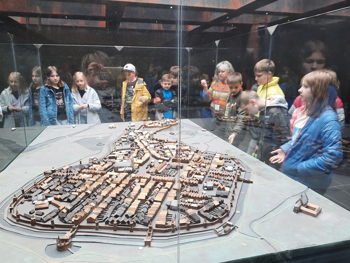 z przewodnikiem udali się na spacer po Starym Mieście. Podziwiali tam piękne, historyczne obiekty: Pałac Arcybiskupów z oknem papieskim, Collegium Novum, Collegium Maius, Kościół Mariacki, Sukiennice, Bramę Floriańską i Barbakan oraz usłyszeli o nich ciekawe historie i legendy.