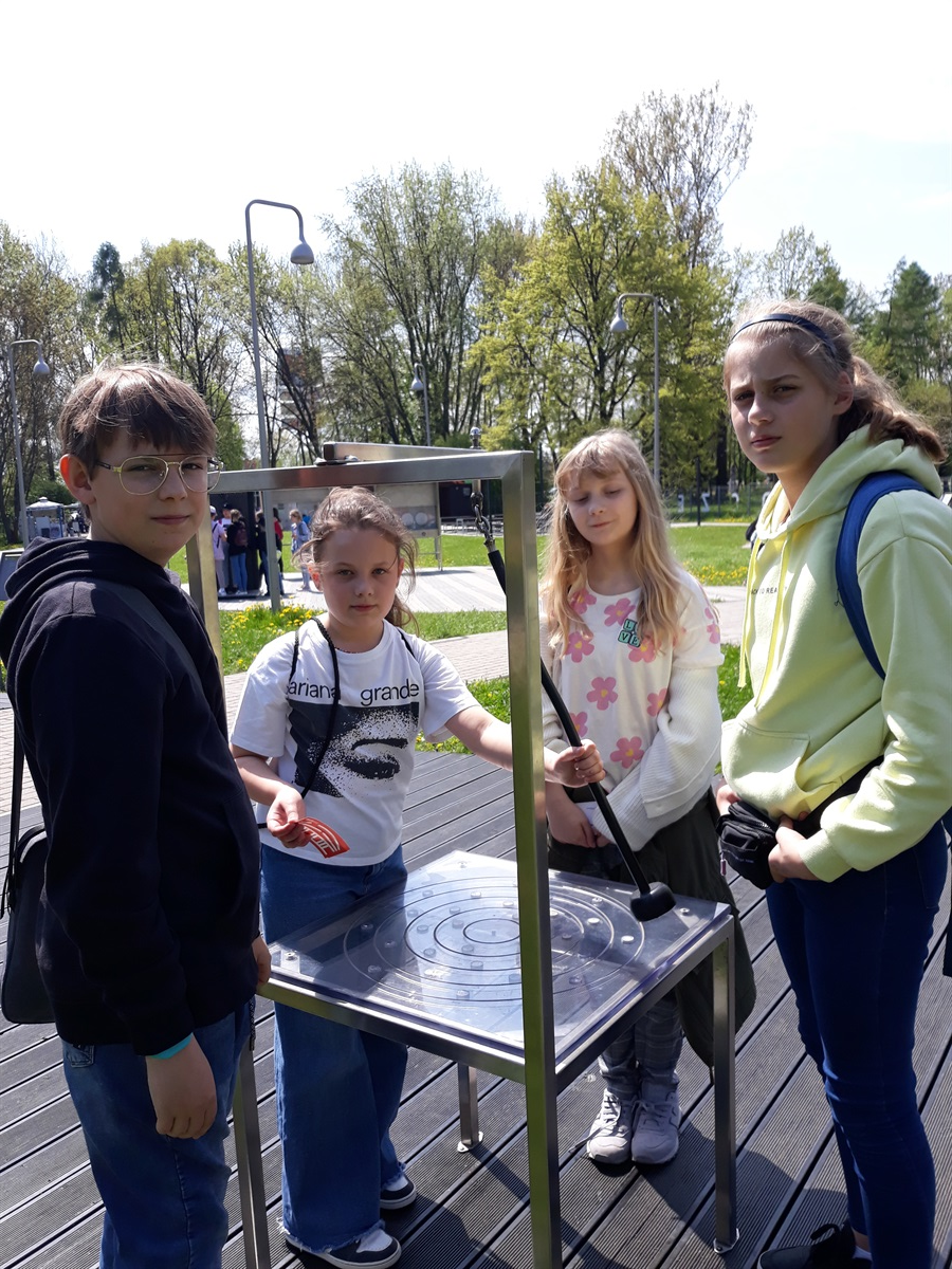 Wycieczkę uczniowie rozpoczęli od zwiedzania Ogrodu Doświadczeń im Stanisława Lema w Krakowie.