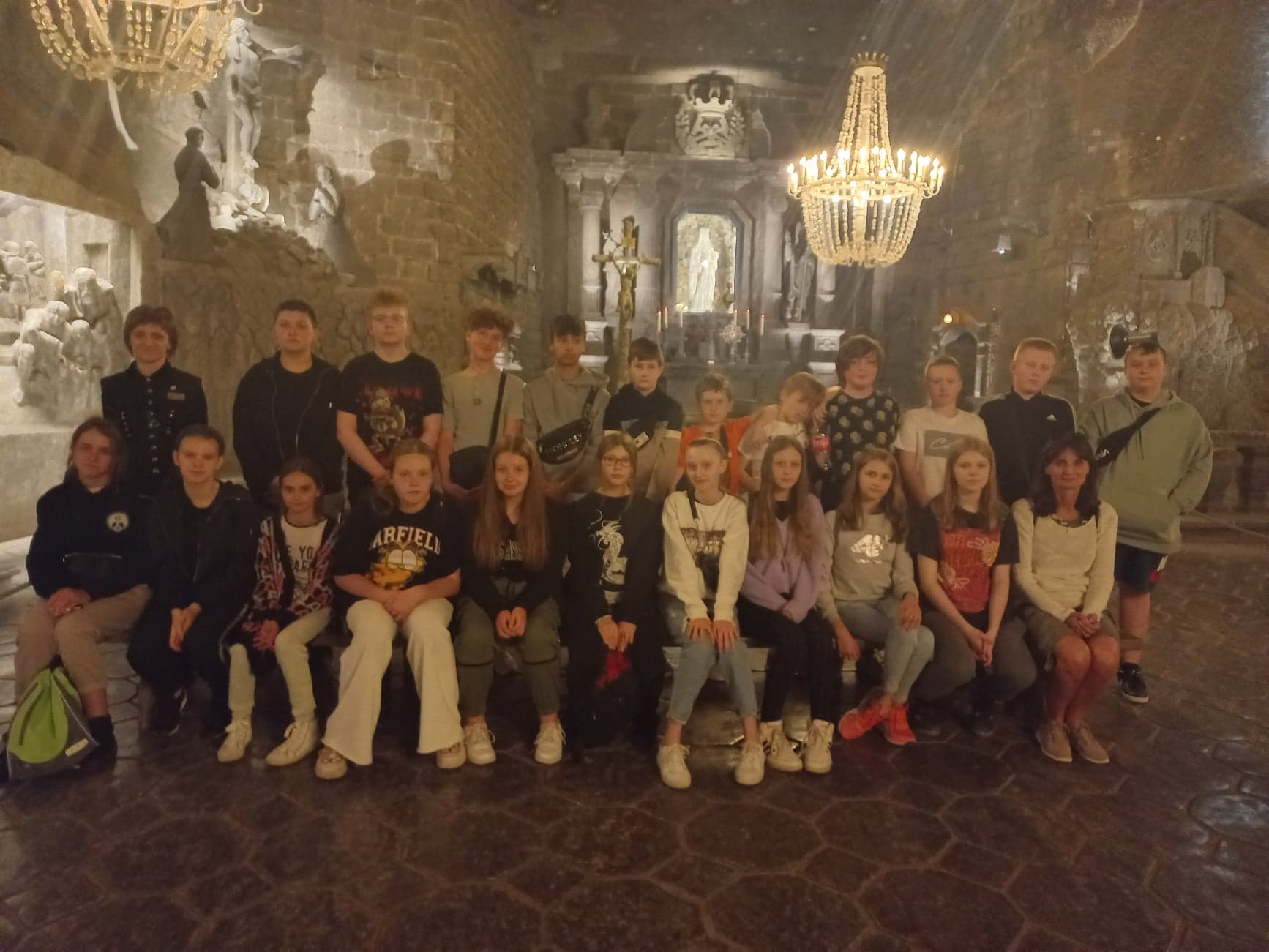 12 i 13 maja uczniowie klasy VI naszej szkoły udali się na wycieczkę do Krakowa i Wieliczki. Zwiedzanie rozpoczęło się w Krakowie od oglądania Rynku Podziemnego. Zapoznaliśmy się z historią średniowiecznego miasta, którą ciekawie opowiedziała pani przewodnik. Następnym punktem wycieczki było zwiedzanie Kopalni Soli w Wieliczce. Idąc podziemnymi korytarzami podziwialiśmy kolejne pomieszczenia, kaplice i rzeźby wykonane z soli.