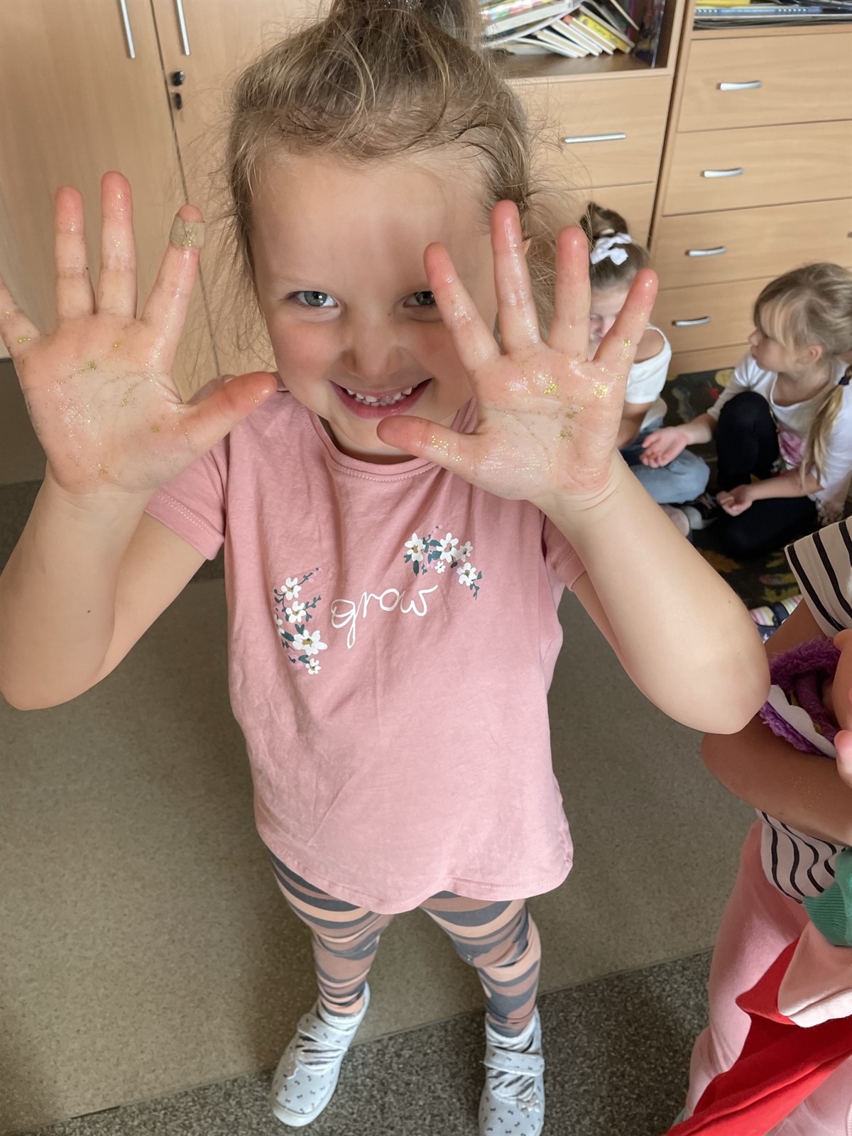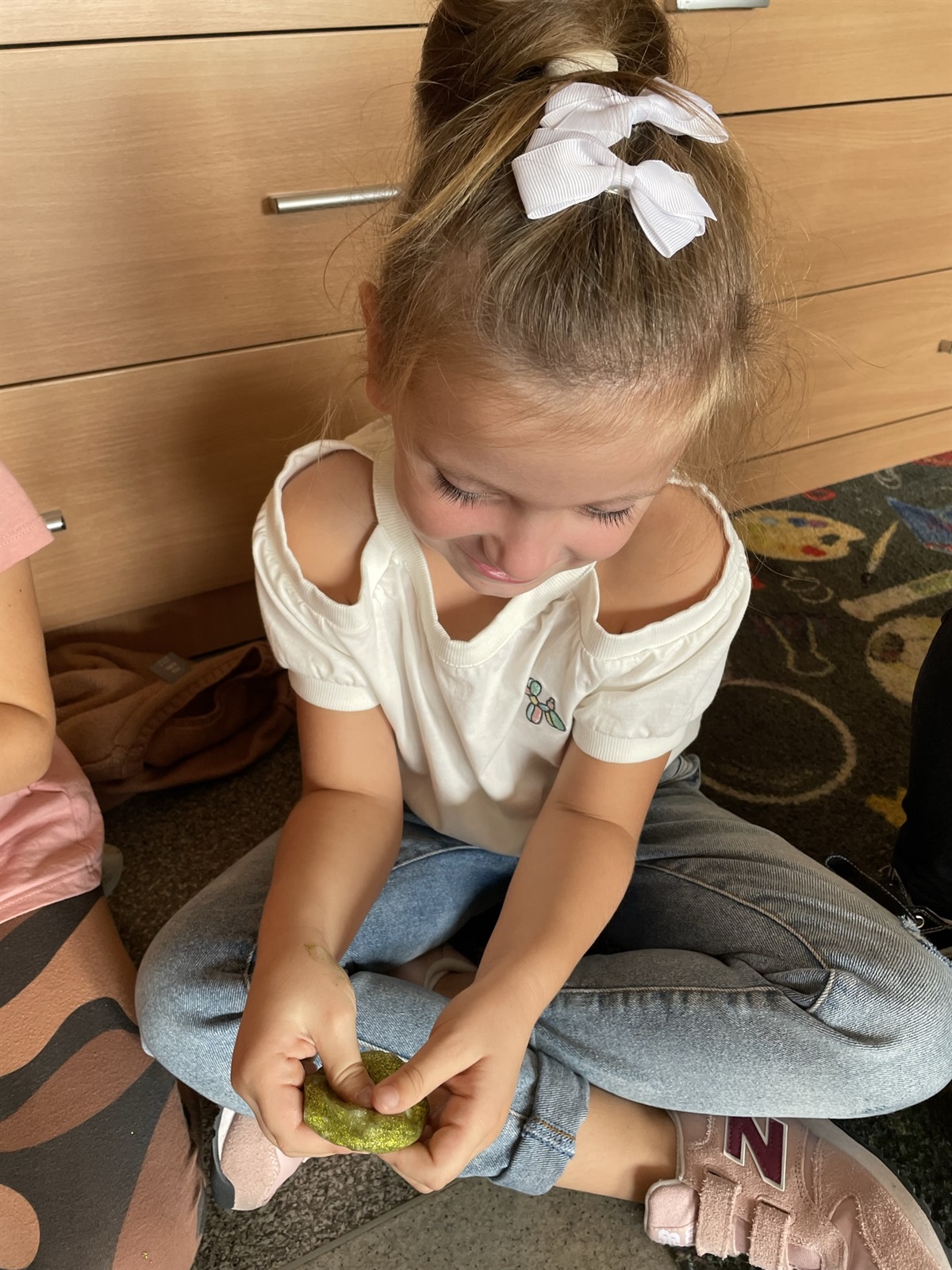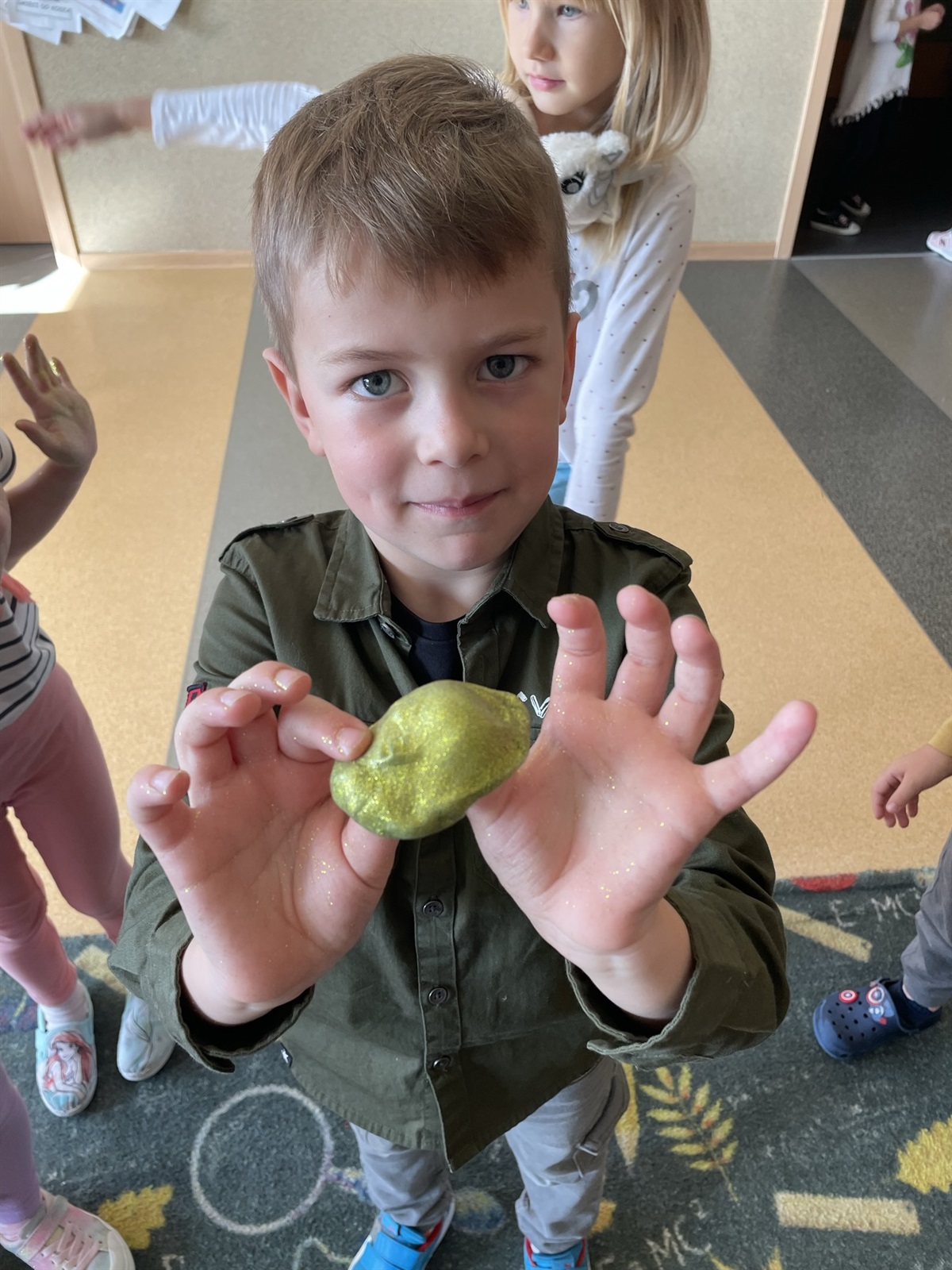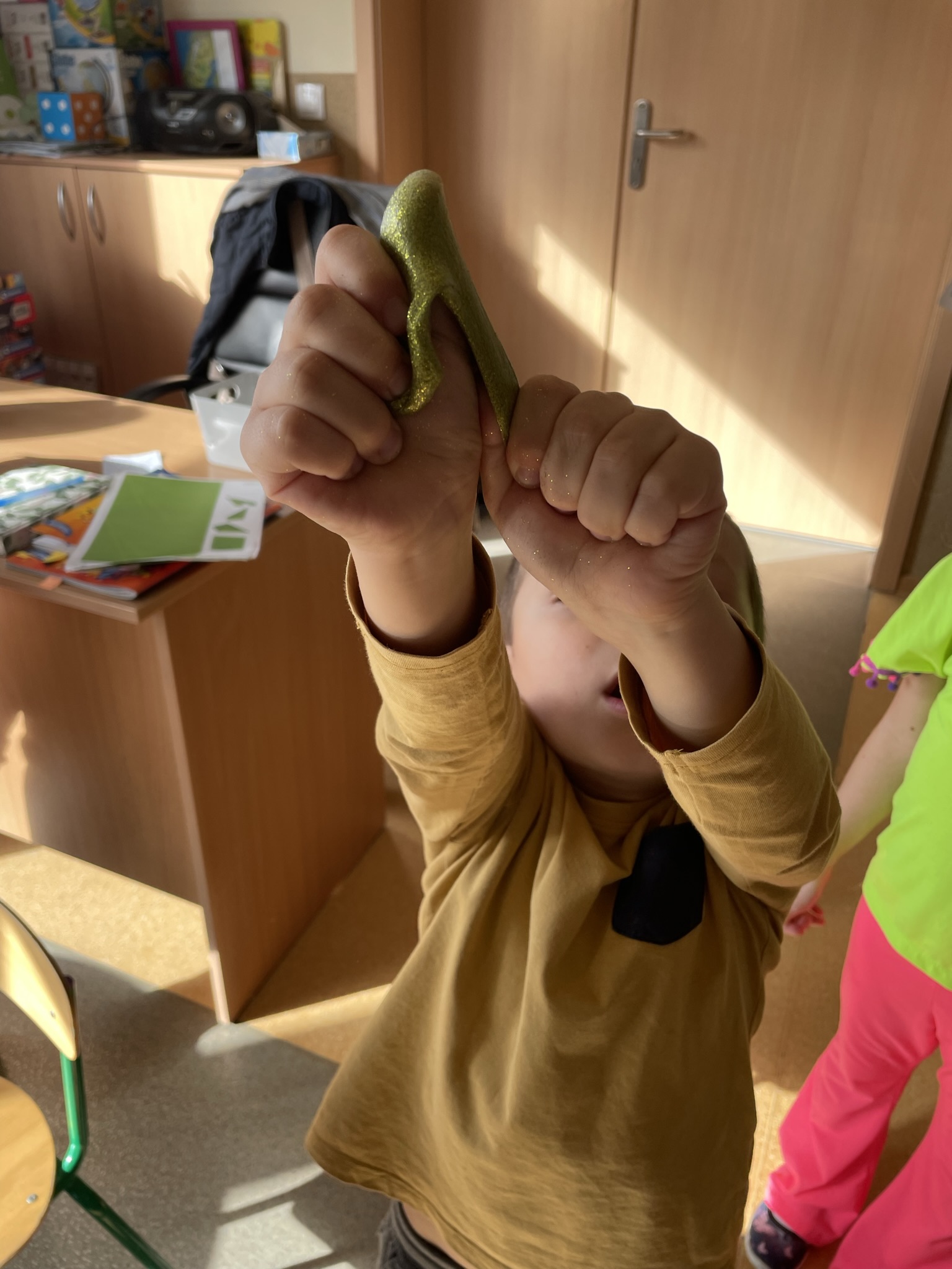 Super ciągliwy, lepki, giętki i można by, tak mnożyć przymiotniki określające rozciągliwość slime. Ale cóż to jest ten zabawny slime? O tym nasi mali przedszkolni badacze mogli dowiedzieć się w ramach eksperymentu podczas, którego stworzyli lepką masę. Klej do mas plastycznych typu slimy, płyn do soczewek, soda oczyszczona, razem pomieszane tworzą nietypową, lepką, sensoryczną ciecz. Do tego brokatowy blask i wszystko tworzy nietuzinkową całość. Dzięki takiej zabawce można się odstresować, wyładować, zrelaksować.