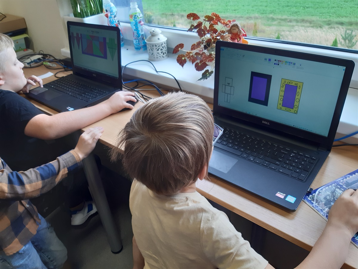 Poza tym, biblioteka to miejsce spotkań – rozmów, wspólnego spędzania czasu, cichego czytania i odrabiania prac domowych. Szczególnie interesujące są dla dzieci gry planszowe, gry na komputerze (strona www.matzoo.pl) oraz rysowanie na tablecie graficznym. Chcąc pokazać umiejętności dzieci w tworzeniu grafik – poprosiłam o wydrukowanie kilku prac i przygotowałam wystawę. To bardzo ciekawe i starannie przygotowane dzieła, w wykonanie których dzieci włożyły wiele wysiłku.