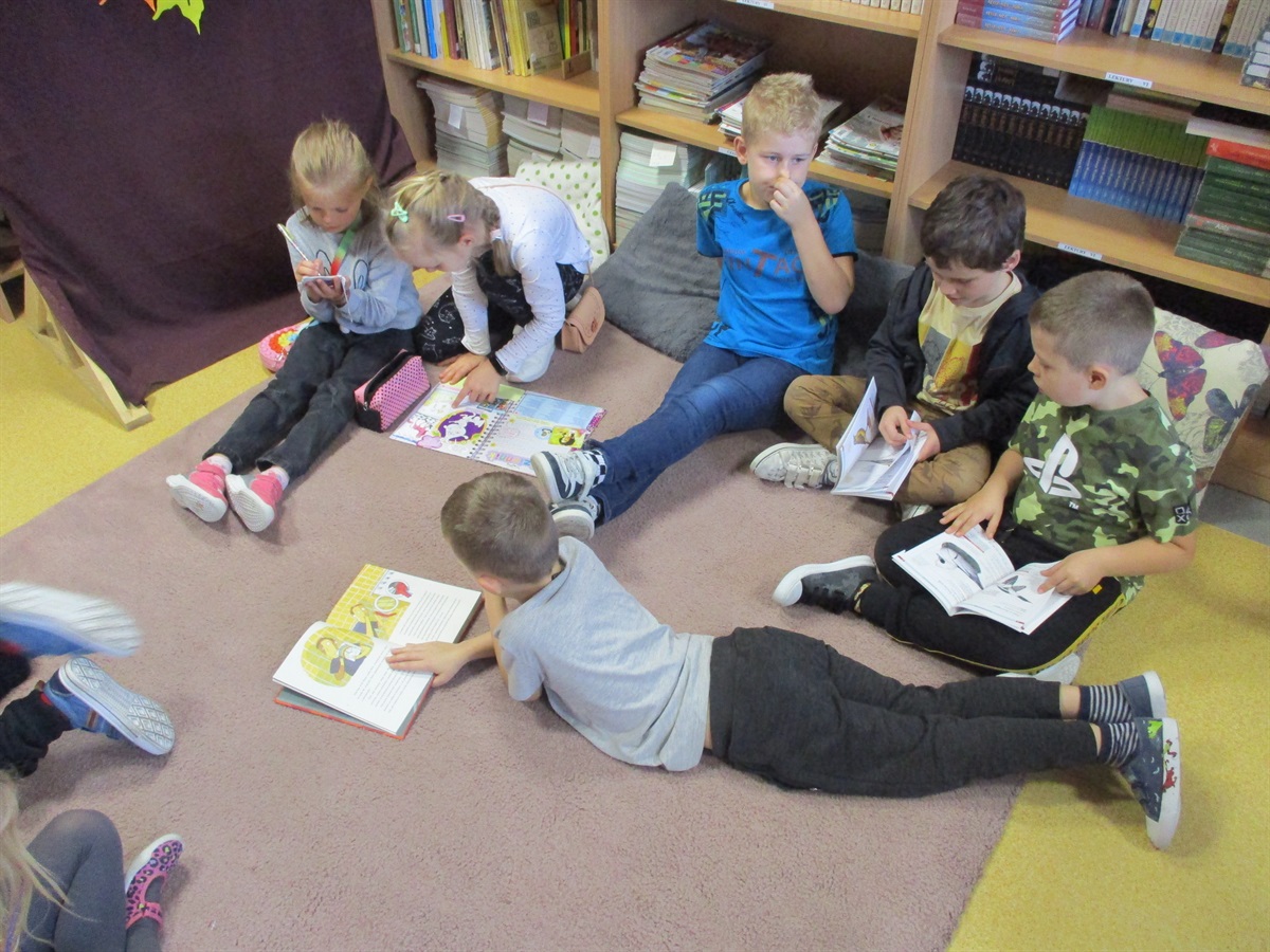 W tym roku było nas trochę mniej niż zwykle, ale przekroczyliśmy liczbę 50 „zaczytanych”. Zgodnie z założeniami akcji, zainteresowani uczniowie przynieśli swoje ulubione książki lub wybierali pozycje z zasobów biblioteki szkolnej. Każdy kto chciał, znalazł coś dla siebie. Dziewczynki z młodszych klas chętnie wybierały pozycje informujące o prawidłowej pielęgnacji domowych zwierząt i czytały przygody ulubionych bohaterów bajek. Chłopcy przeglądali gazetki motoryzacyjne, czytali komiksy o Kaczorze Donaldzie i kolorowali zakładki do książek. Dzięki akcji okazało się, że dwóch uczniów pasjonuje się ornitologią – wszystkie przerwy oglądali atlasy ptaków i wymieniali się zdobytymi informacjami.
