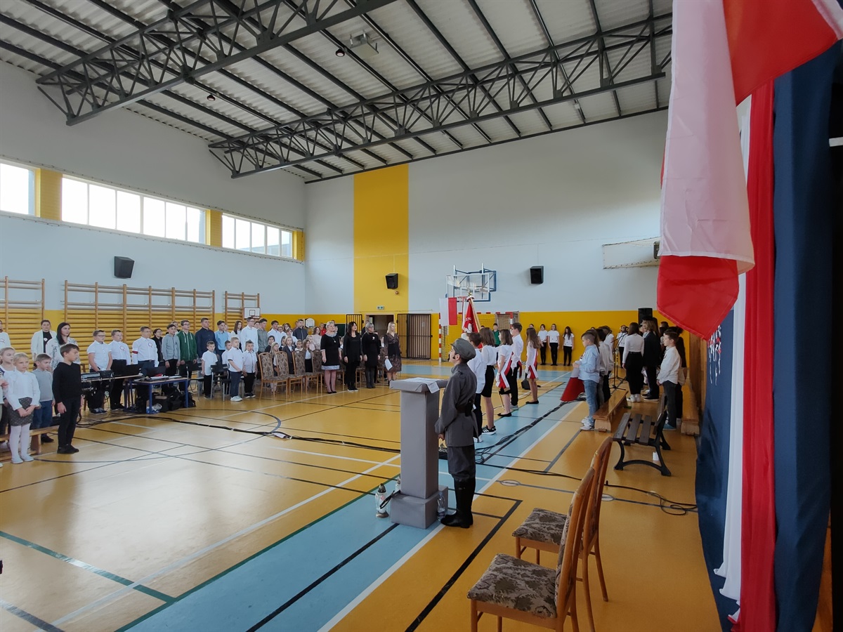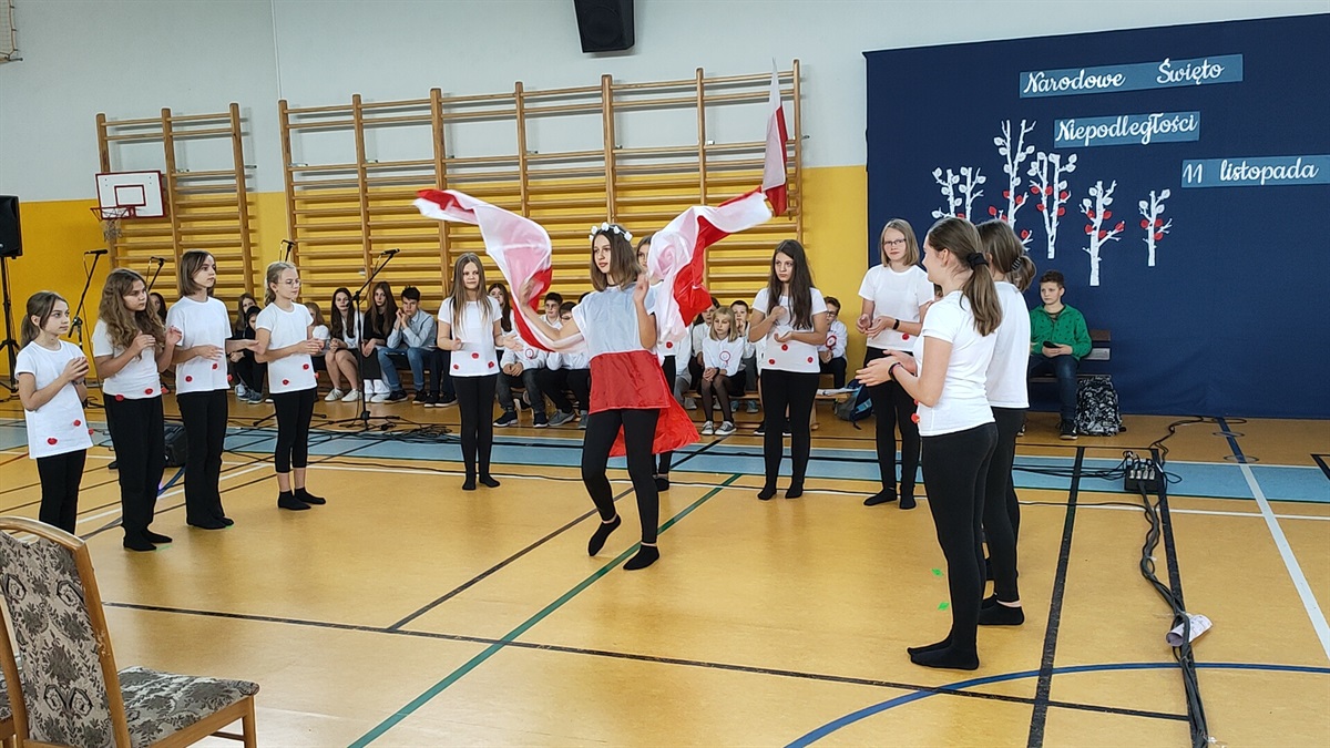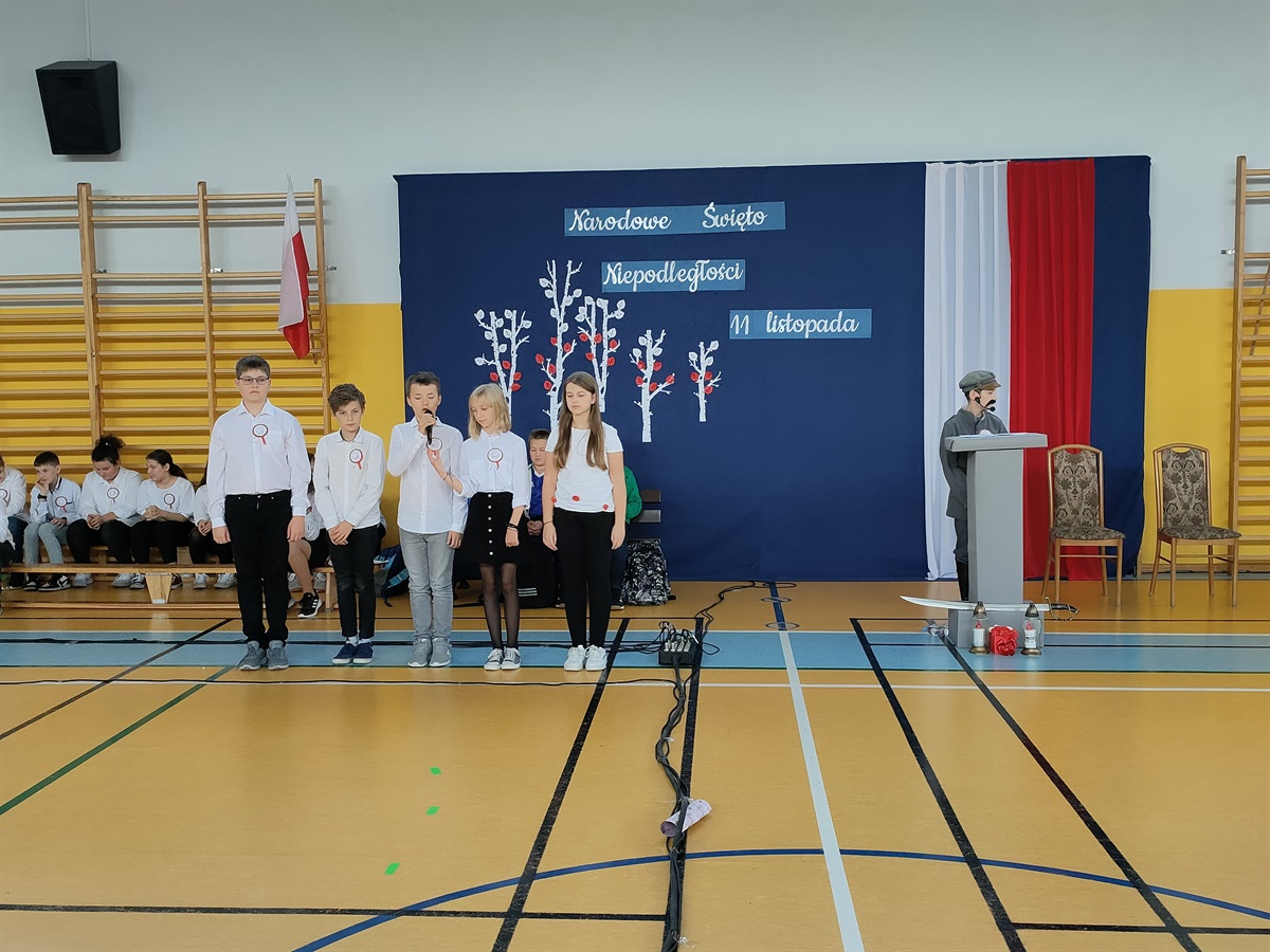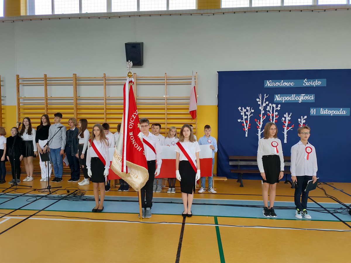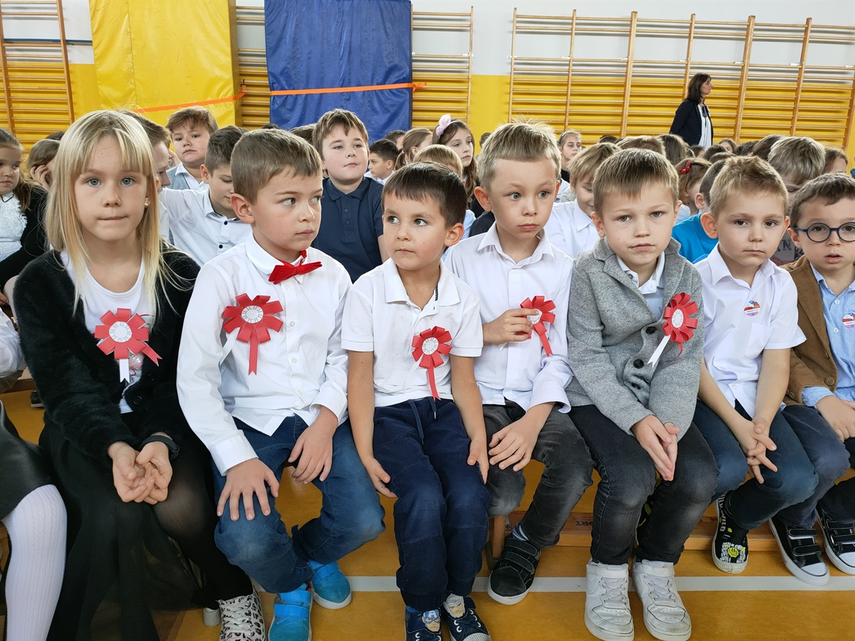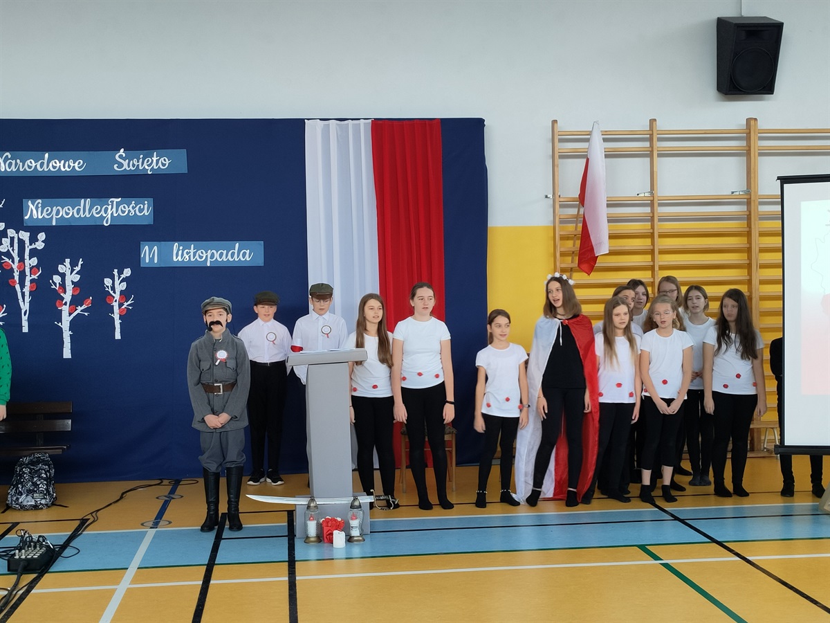 W środę, 09.11.2022 r., odbyły  się w naszej szkole obchody 104 rocznicy odzyskania przez Polskę niepodległości. Narodowe Święto Niepodległości to dla Polaków jedno z najważniejszych świąt państwowych. Po 123 latach zaborów nasz kraj odzyskał suwerenność. W wyniku upadku potęg zaborczych i własnych działań Polska po wielu dziesięcioleciach powróciła na mapy Europy. Stało się to głównie dzięki wytrwałości i ofiarności aktywnej części polskiego społeczeństwa, które w okresie niewoli przekazywało młodym Polakom przywiązanie do języka i kultury narodowej. O godzinie 10.40 odbyła się akademia przygotowana przez klasy V i VI. Uczniowie w piękny sposób oddali cześć bohaterom walczącym za naszą wolność. W ramach akcji "Szkoła do hymnu" odśpiewaliśmy hymn państwowy. Uroczystość przygotowały: p. Aneta Lipa, p. Milena Barańska, p. Monika Robert, p. Monika Baryła