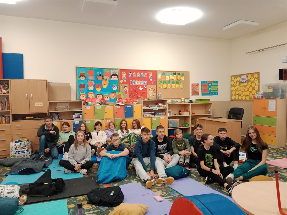 W dniu 21 listopada 2025 r. w naszej szkole uczniowie klasy VI brali udział w innowacji pedagogicznej pn. „Noc z kulturą”. Celem spotkania była nauka języka angielskiego  w atmosferze, w której uczeń czuje się swobodnie. Uczniowie wykonywali prace plastyczne, które później opisywali, tańczyli w rytm wybranych piosenek anglojęzycznych i je śpiewali. Dla wszystkich uczestników rodzice kupili pizzę.