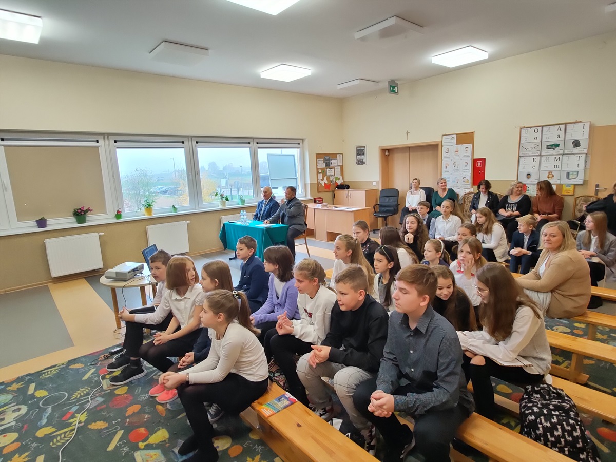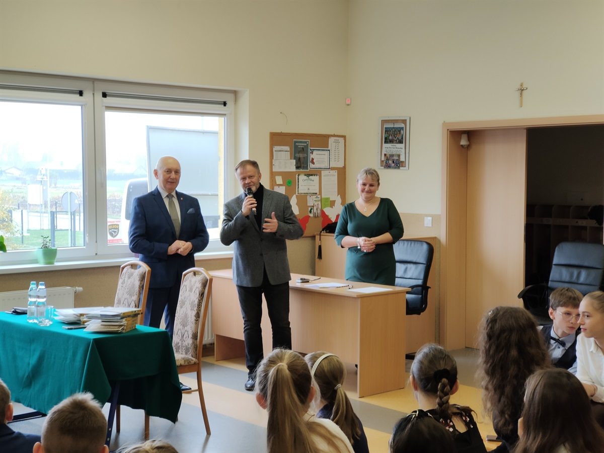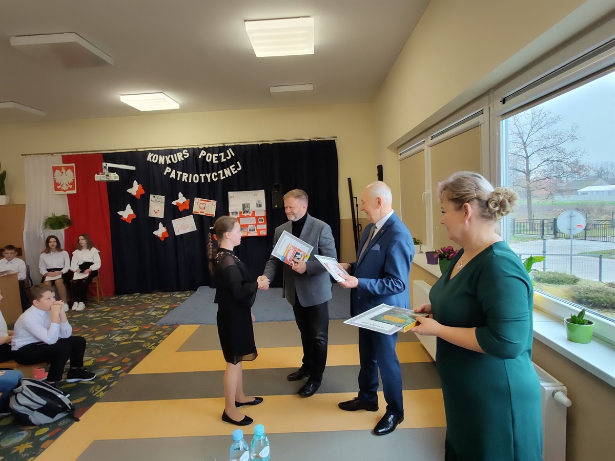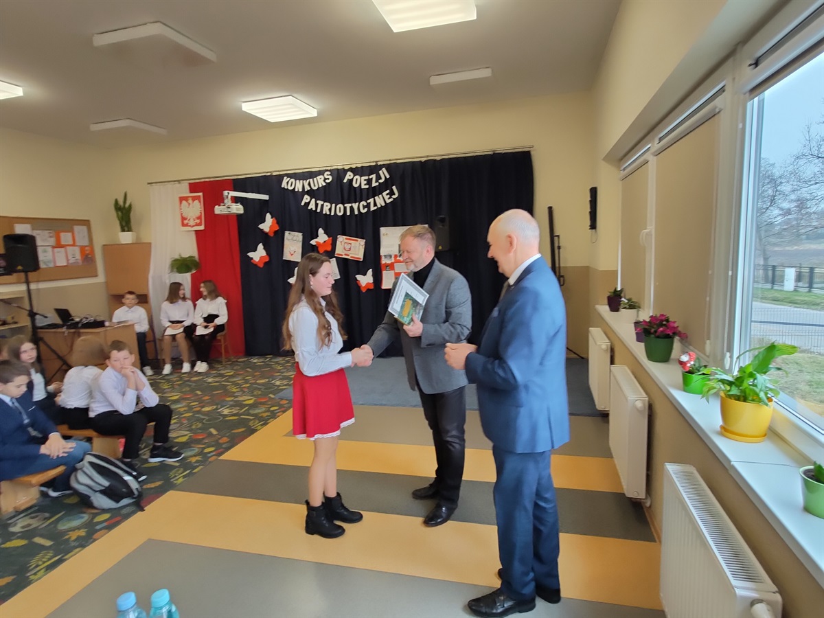 (SP Moszczenica), Wiktorię Ogrodnik (SP Brzoza). Pozostali uczestnicy otrzymali nagrody pocieszenia w postaci folderów z  postaciami wybitnych Polaków. Nagrody książkowe ufundował pan Marceli Piekarek - Wójt Gminy Moszczenica.