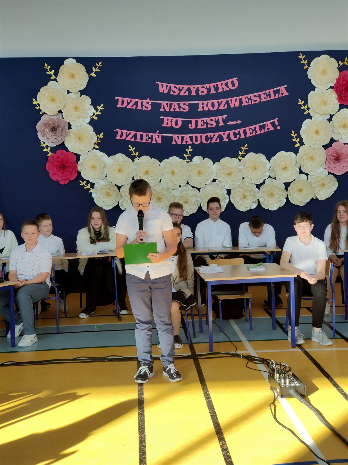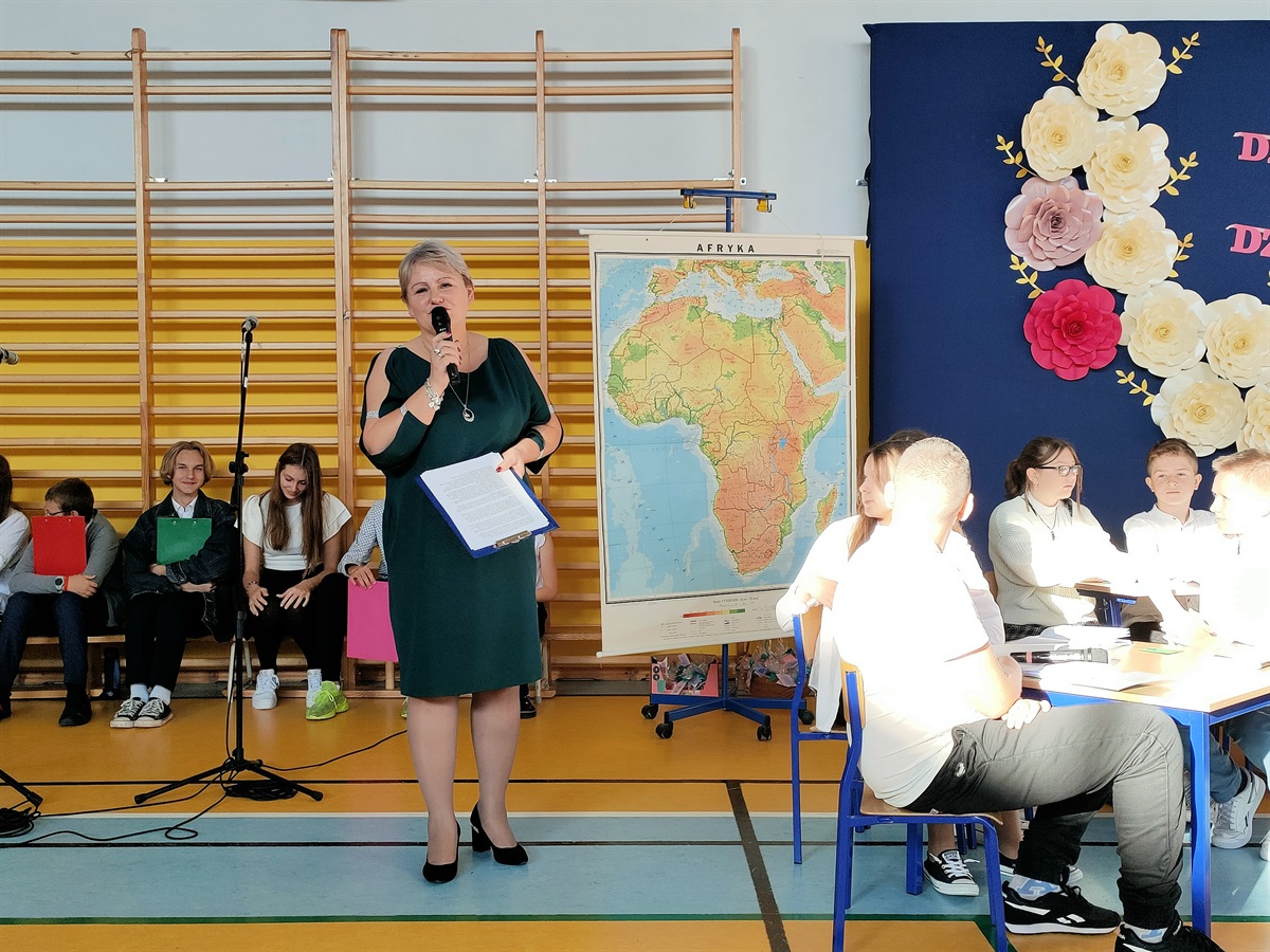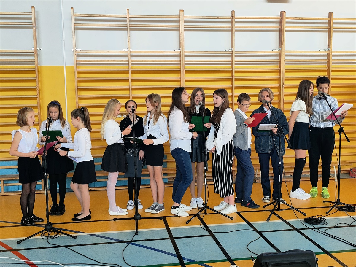 13 października 2022 r. w naszej szkole odbyła się uroczysta akademia z okazji Dnia Edukacji Narodowej. Uczniowie klasy 7 przy współudziale uczniów należących do koła wokalnego pod okiem p. Karoliny Ludwiczak, p. Izabeli Dybały oraz p. Anetty Banaszczyk przygotowali program artystyczny, w którym w humorystycznych scenkach i piosenkach ukazali szkolną rzeczywistość.
