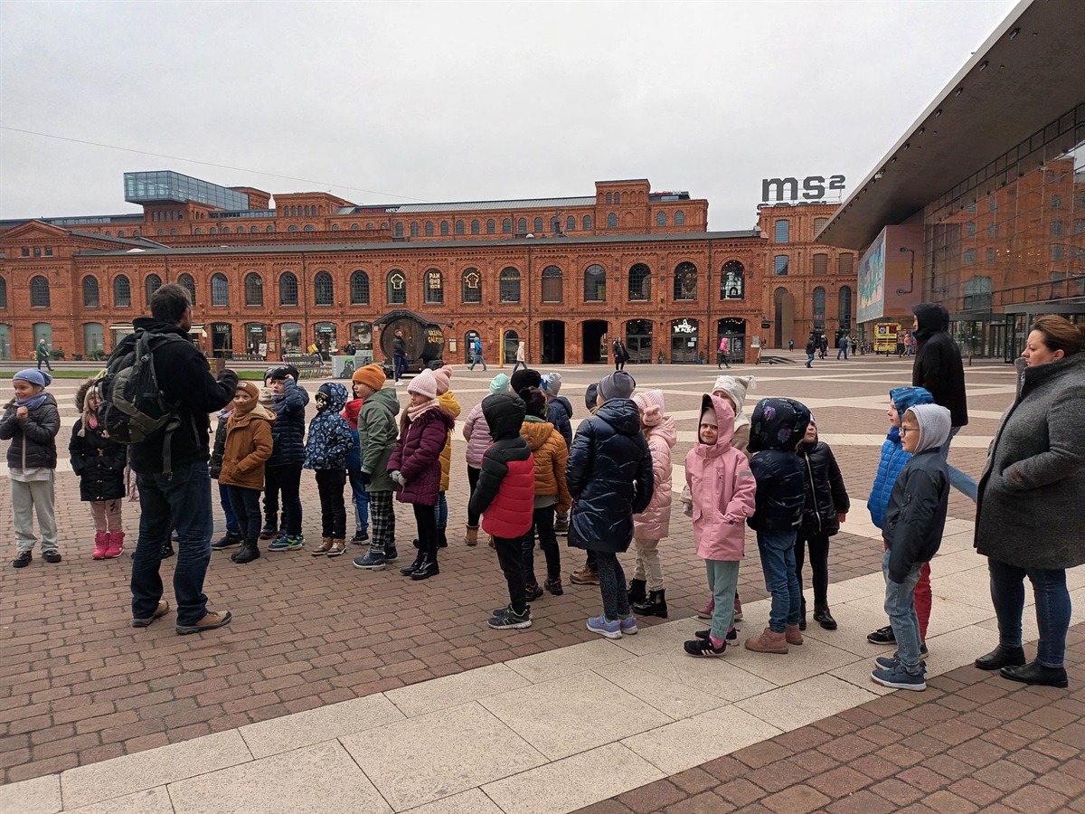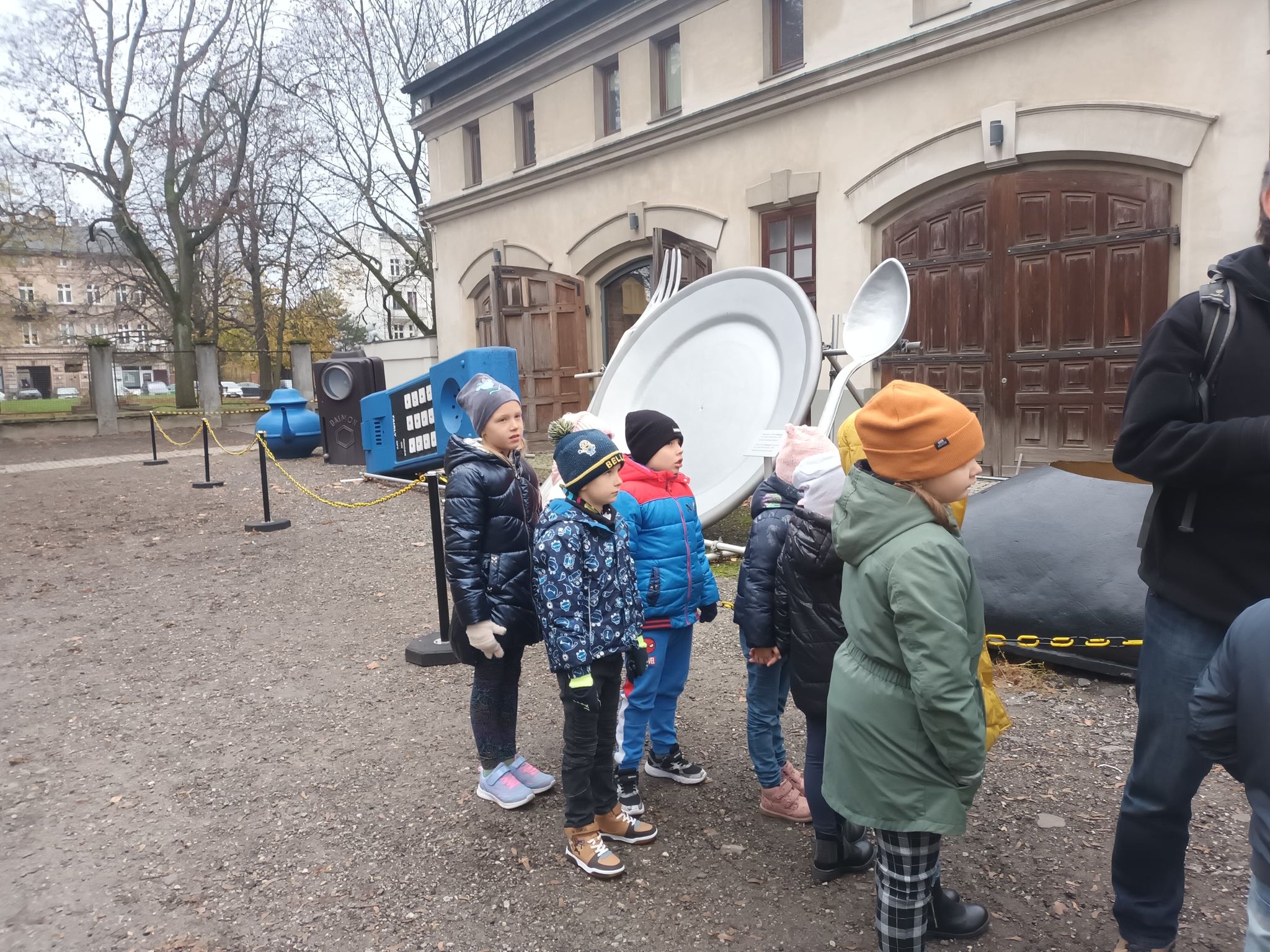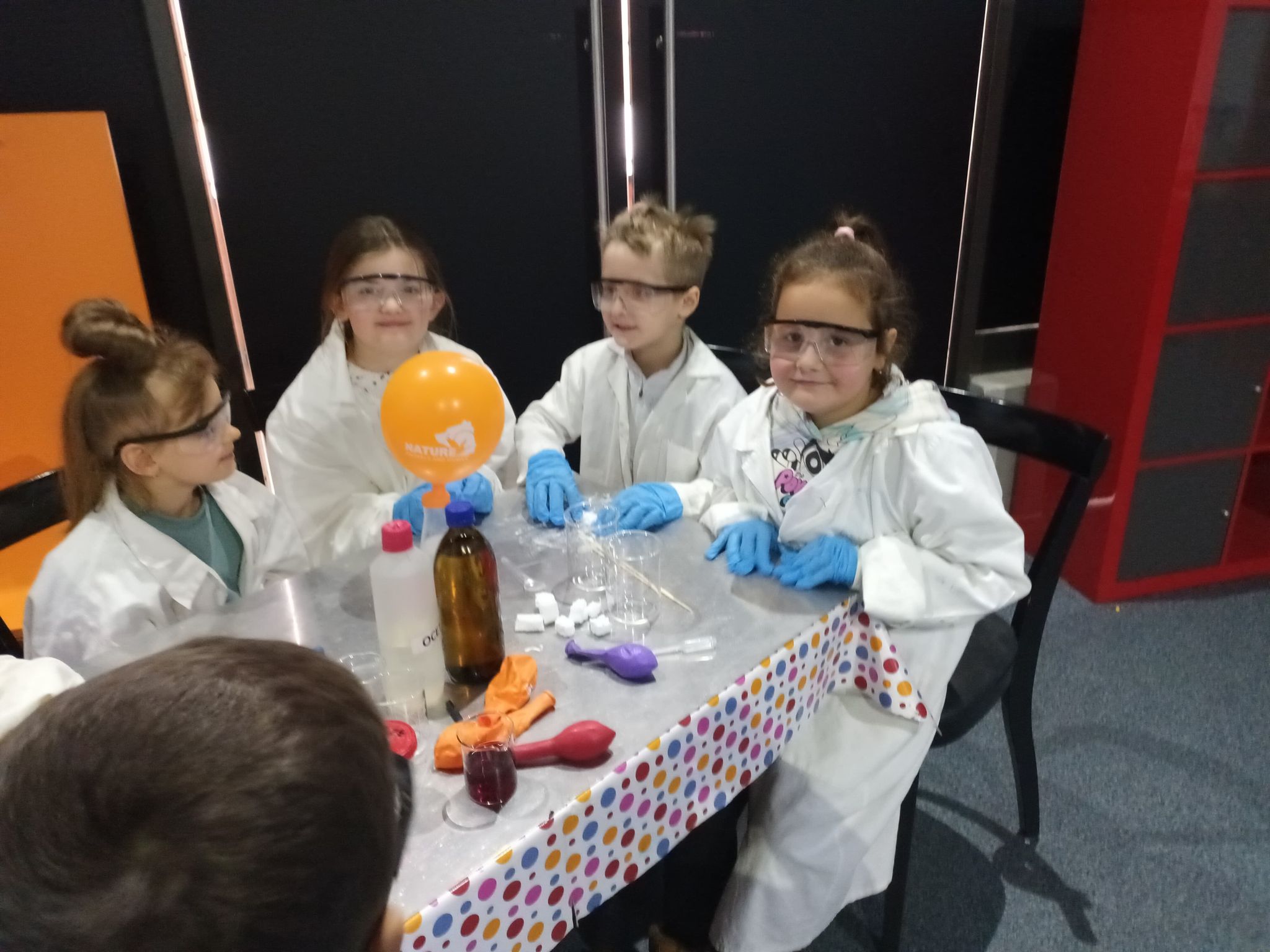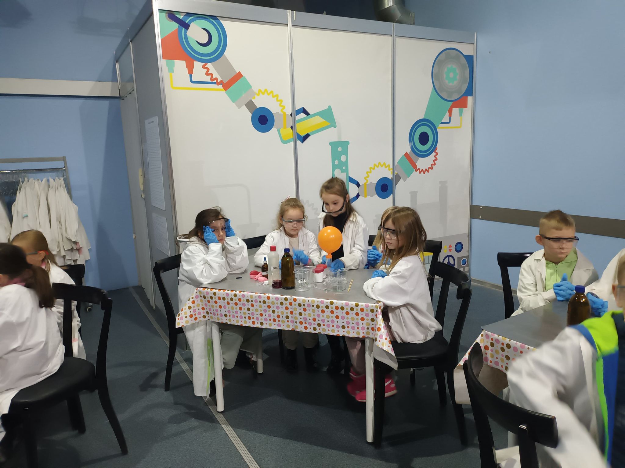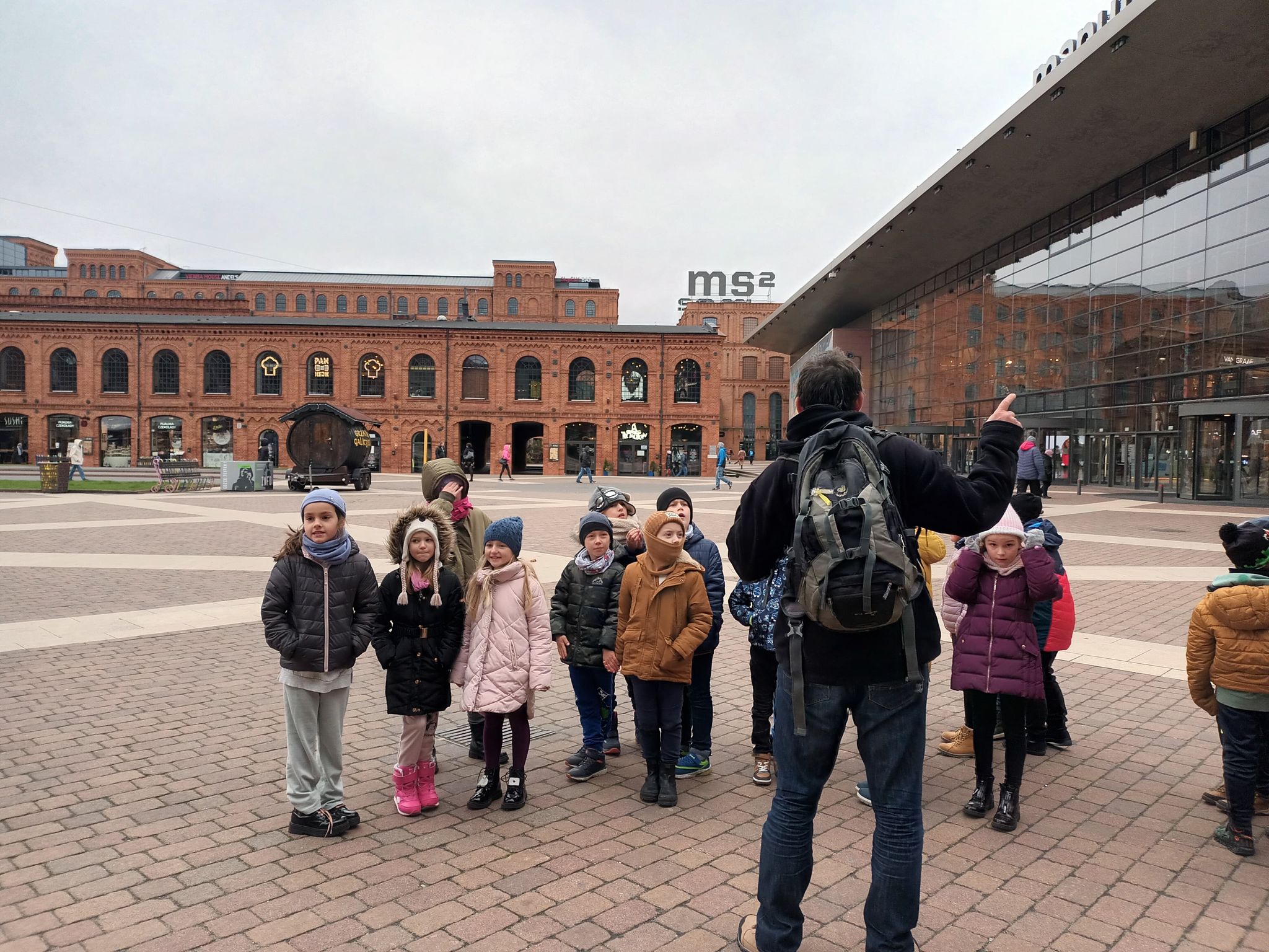 Zwiedzanie miasta rozpoczęło się od najstarszego parku, liczącego 180 lat. Obecnie w tym miejscu gości wystawa plenerowa- Ogród Świateł z postaciami z baśni „Alicja w Krainie Czarów”, można było obejrzeć także najmniejszy pomnik w mieście Wróbelka Ćwirka, który znajduje się również w tym parku. Łódź to miasto słynące między innymi z filmów animowanych, dlatego są tu pomniki postaci takich jak: Plastuś, Miś Uszatek czy koty: Filemon i Bonifacy. Uczestnicy usłyszeli od przewodnika wiele ciekawostek na temat warsztatów tkackich, fabryk przędzalniczych oraz ich słynnych właścicieli np. Izraela Poznańskiego czy Karola Scheiblera. Zobaczyli jak wyglądają i jaką funkcje pełnią obecnie budynki pofabryczne. Obejrzeli najnowocześniejszy dworzec tramwajowy w Polsce, nazwany także stajnią dla jednorożców, dlatego obok niego postawiono pomnik jednorożca. Po zwiedzaniu miasta uczestnicy eskapady udali się na warsztaty eksperymentalne. Doświadczali wiedzy w praktyczny sposób pod nadzorem doświadczonych animatorów. Po posileniu się uczniowie odwiedzili jeszcze „Ulicę Żywiołów” w EC1, gdzie mieli czas na zabawę i zdobywanie nowych wiadomości z zakresu fizyki, przyrody i astronomii. Do szkoły wrócili bogatsi o wiedzę oraz miłe i niezapomniane wrażenia.