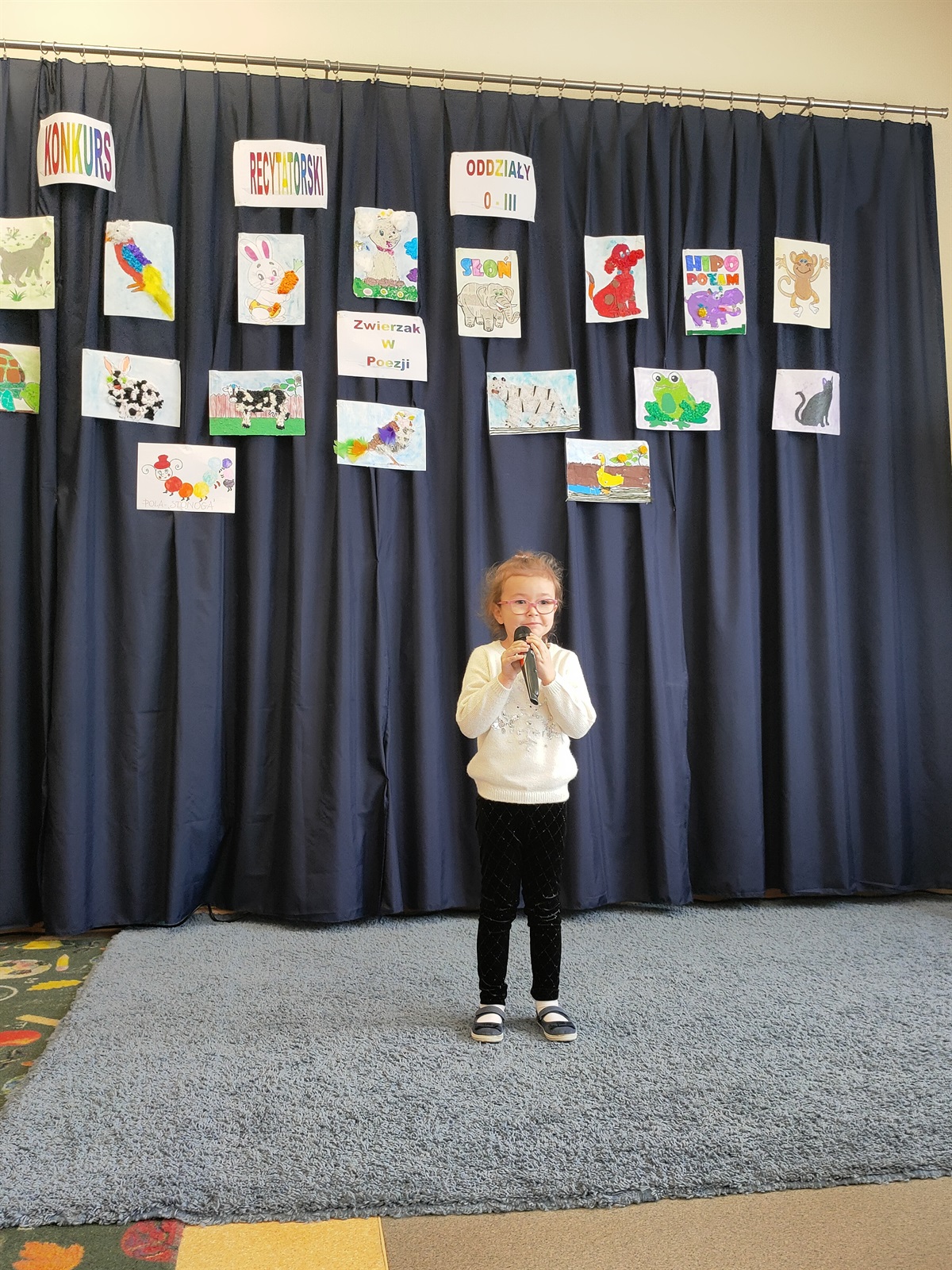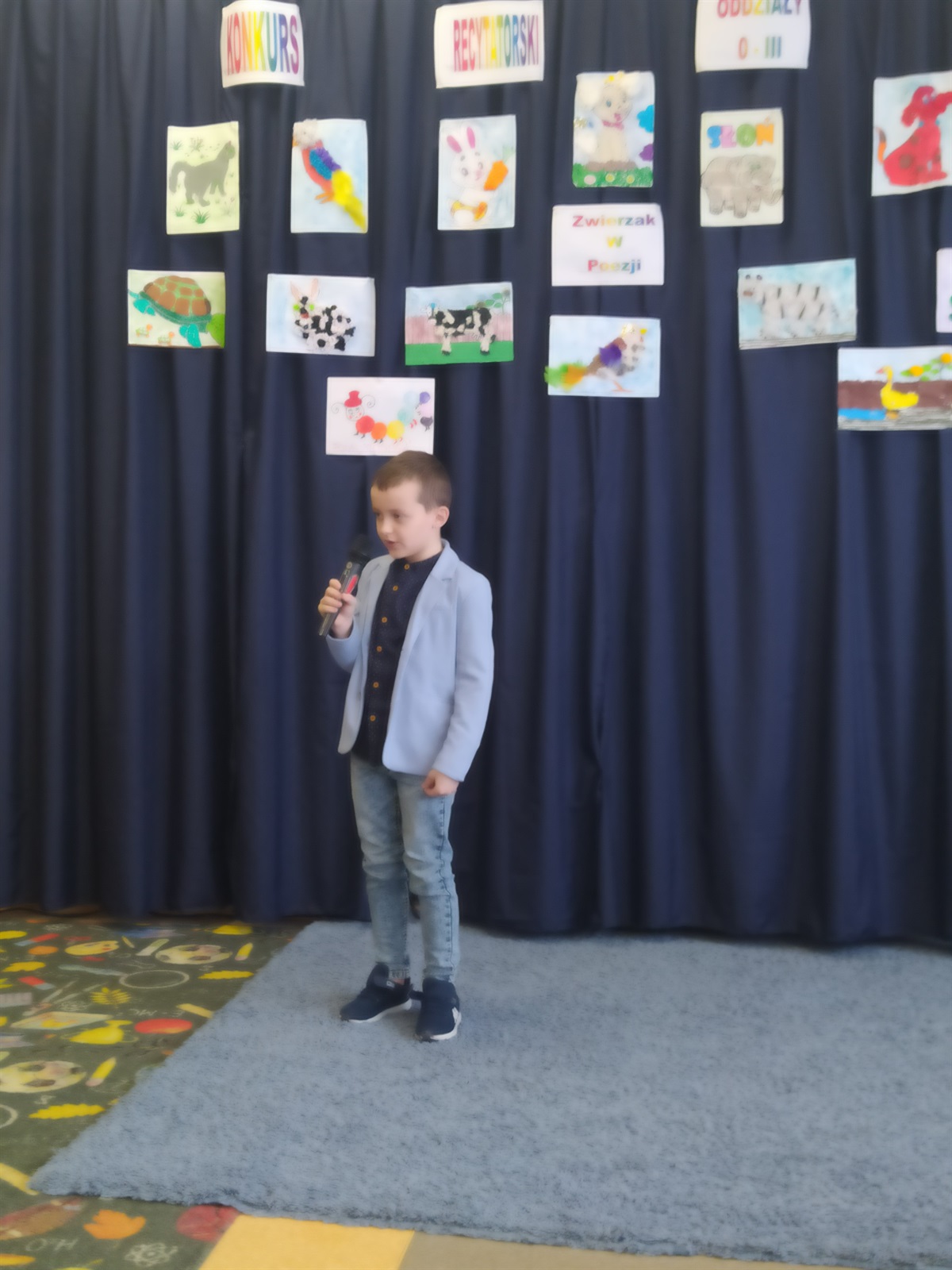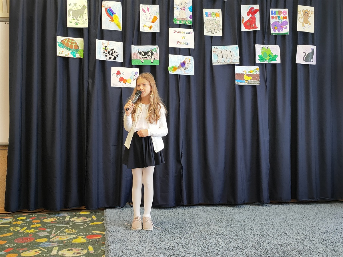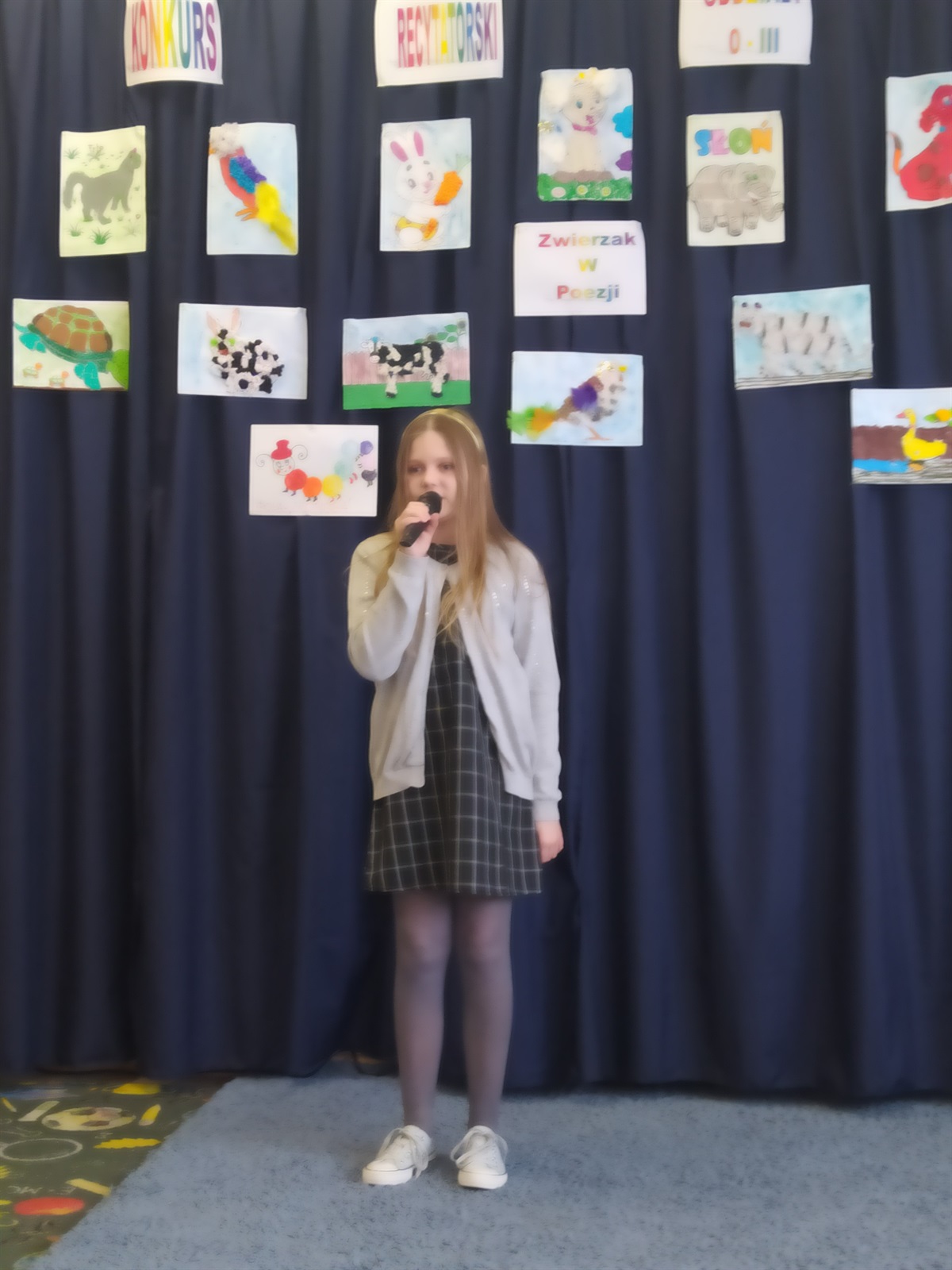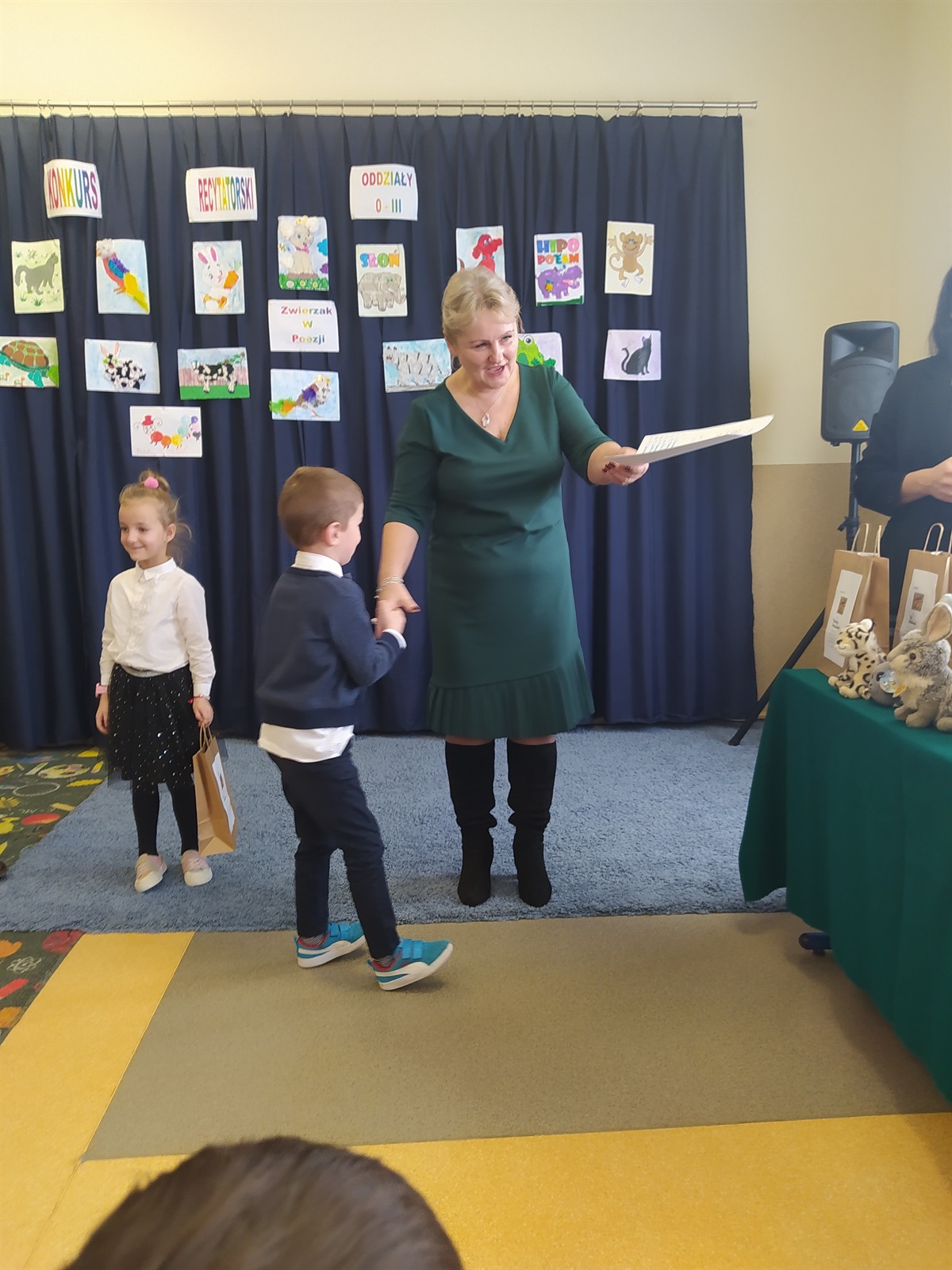 W dniu 25.11.2022 r. w naszej szkole odbył się konkurs recytatorski pt. "Zwierzak w poezji" dla uczniów z oddziałów I - III i oddziału przedszkolnego. Wzięło w nim udział 23 uczniów. Jury reprezentowały panie: dyrektor szkoły - Bożena Nowak - Justyna, Monika Baryła i Karolina Ludwiczak, która przygotowała także oprawę muzyczną. Po wystąpieniu wszystkich uczestników panie udały się na naradę i wybrały zwycięzców konkursu. I tak nagrody otrzymali uczniowie: Iga Zielińska, Natalia Mordaka, Jan Witkowski