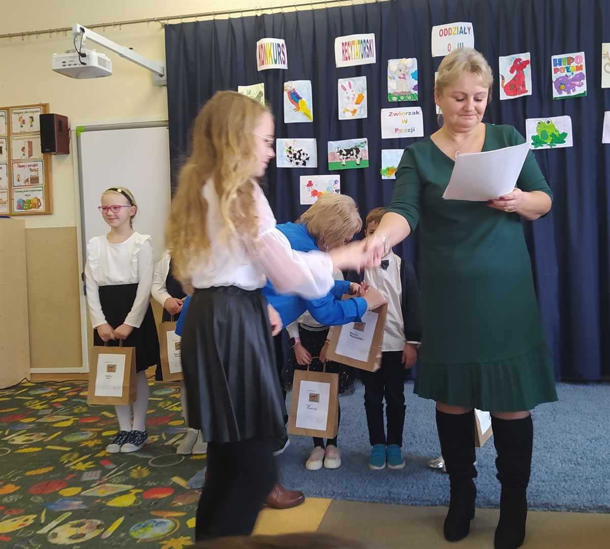 Zwycięzcy i wyróżnieni otrzymali upominki zakupione z funduszy Rady Rodziców. Uczniowie wygłaszali wiersze zgodnie z zasadami pięknej recytacji, natomiast wszyscy, którzy występowali, uczyli się zachowywać podczas wystąpienia publicznego, przy którym nie brakowało im odwagi.